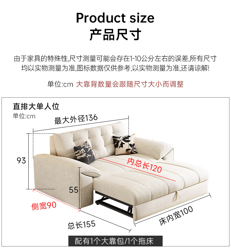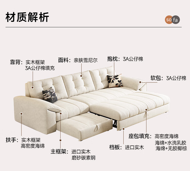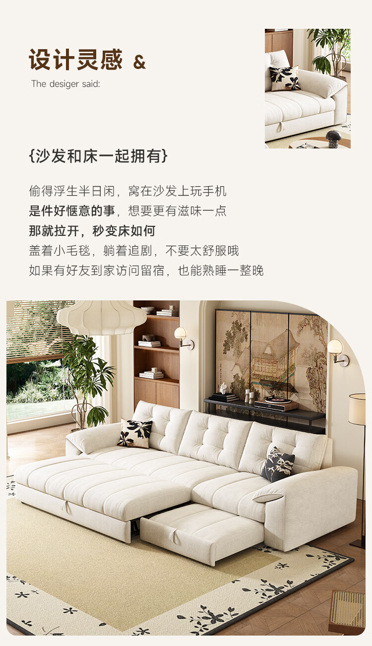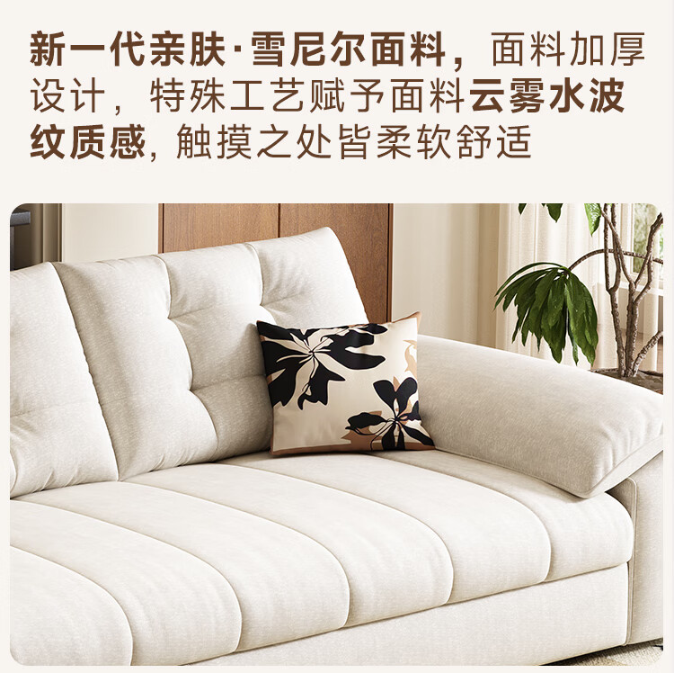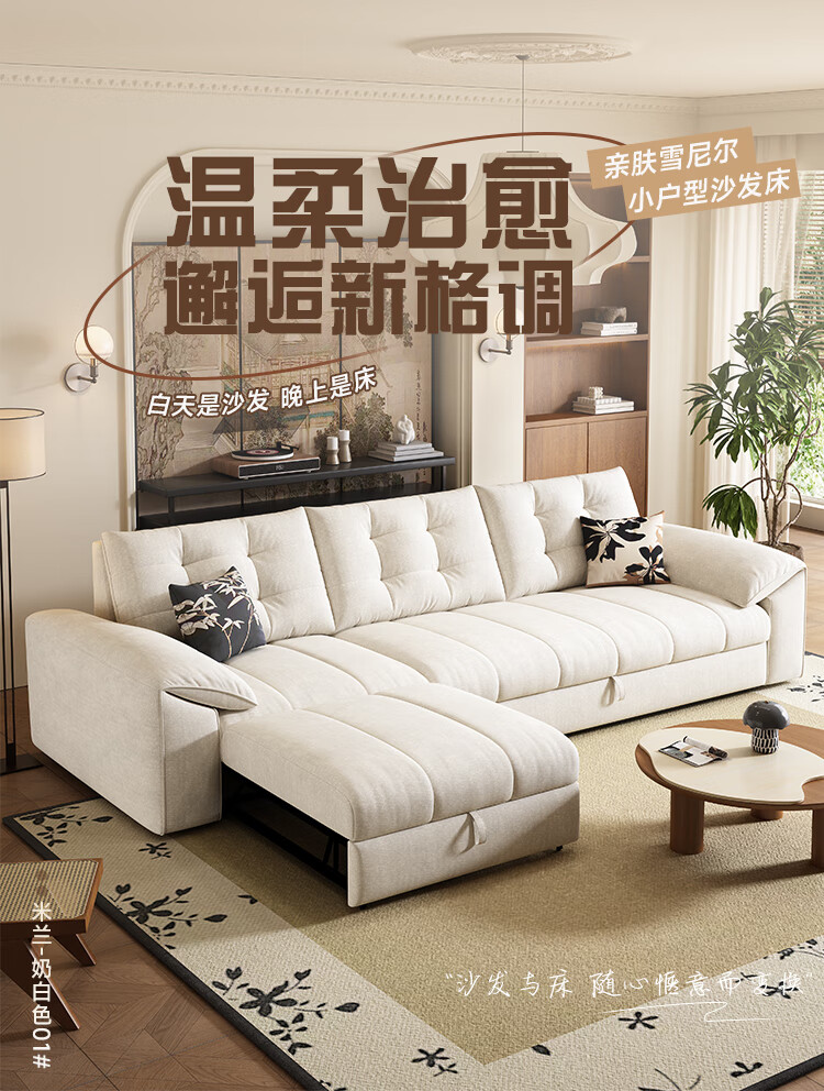 松南奶油风新款客厅布艺贵妃沙发家用广东佛山雪尼尔直排可折叠沙发床 总长1.36m直排:大单位 高弹海绵款(加厚雪尼尔)