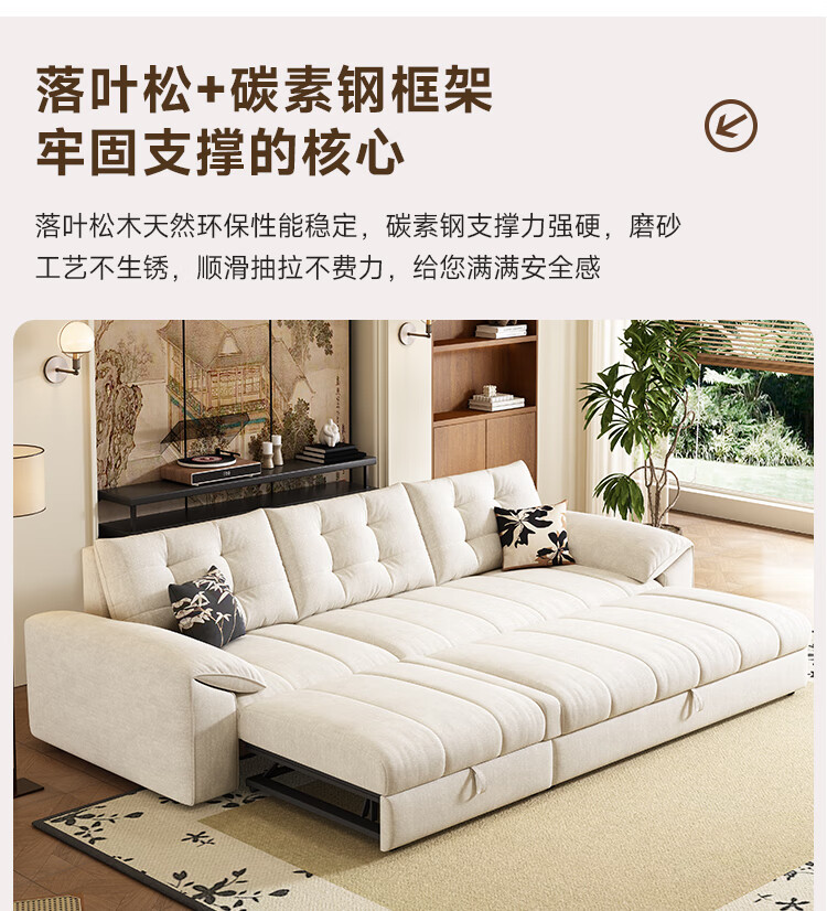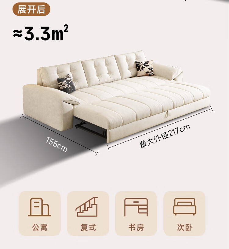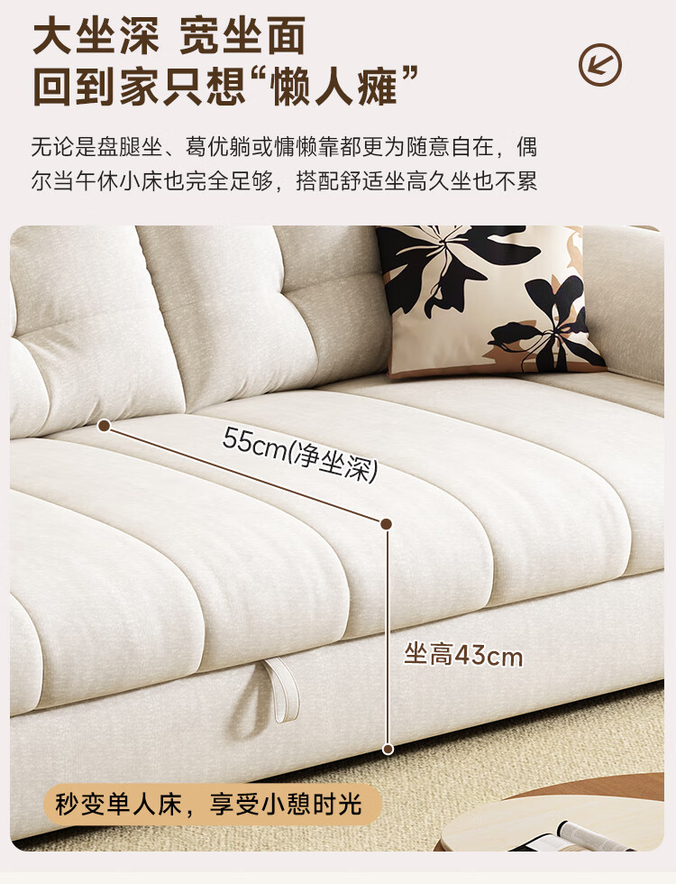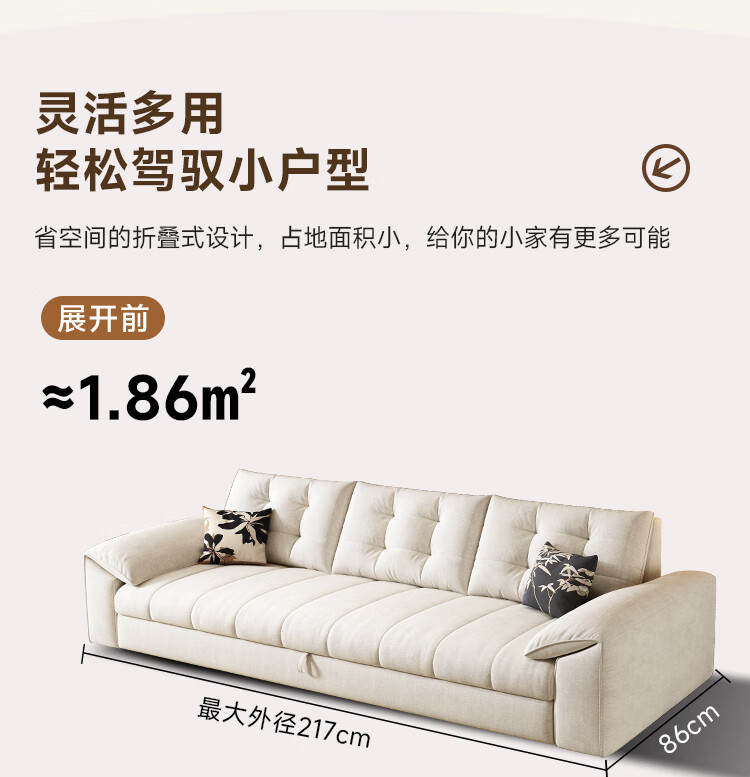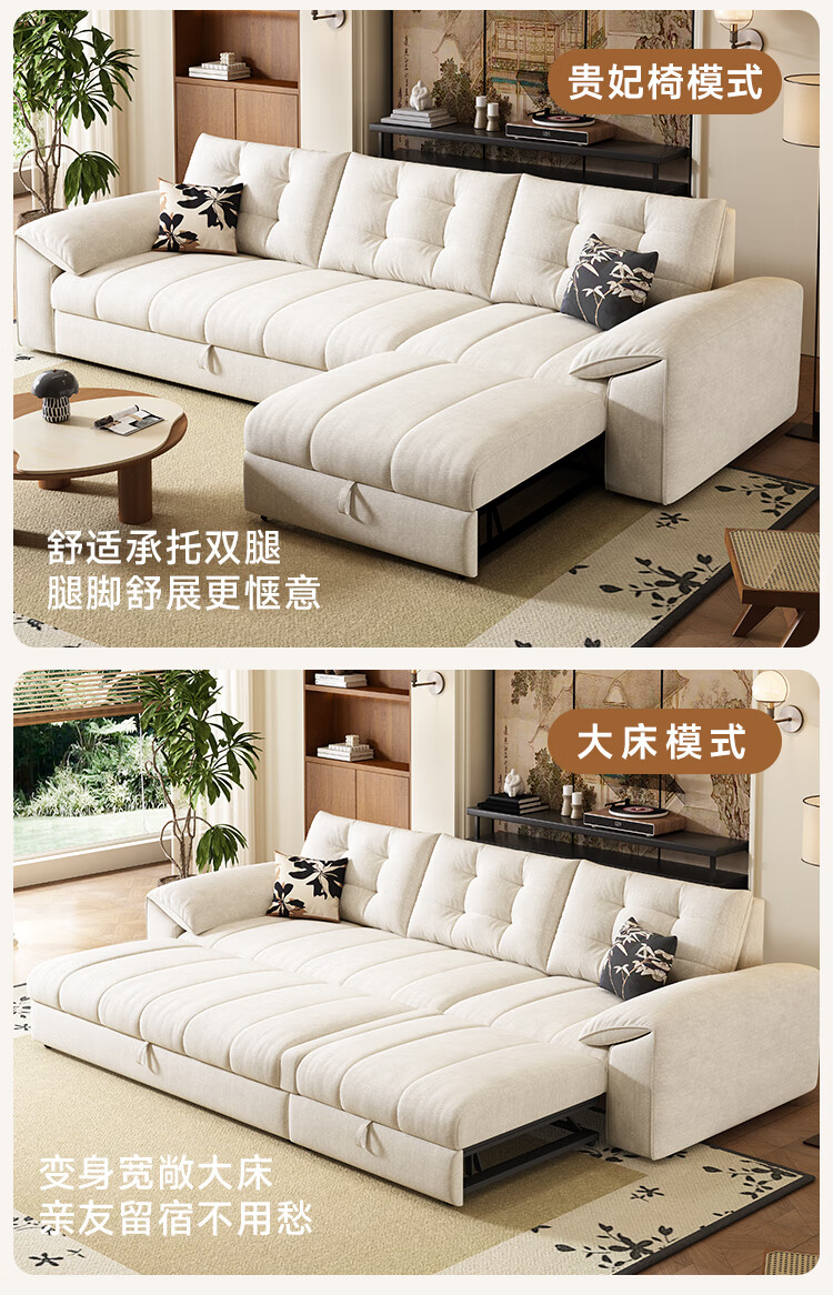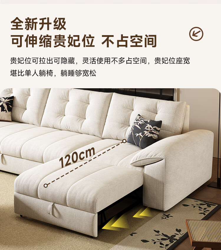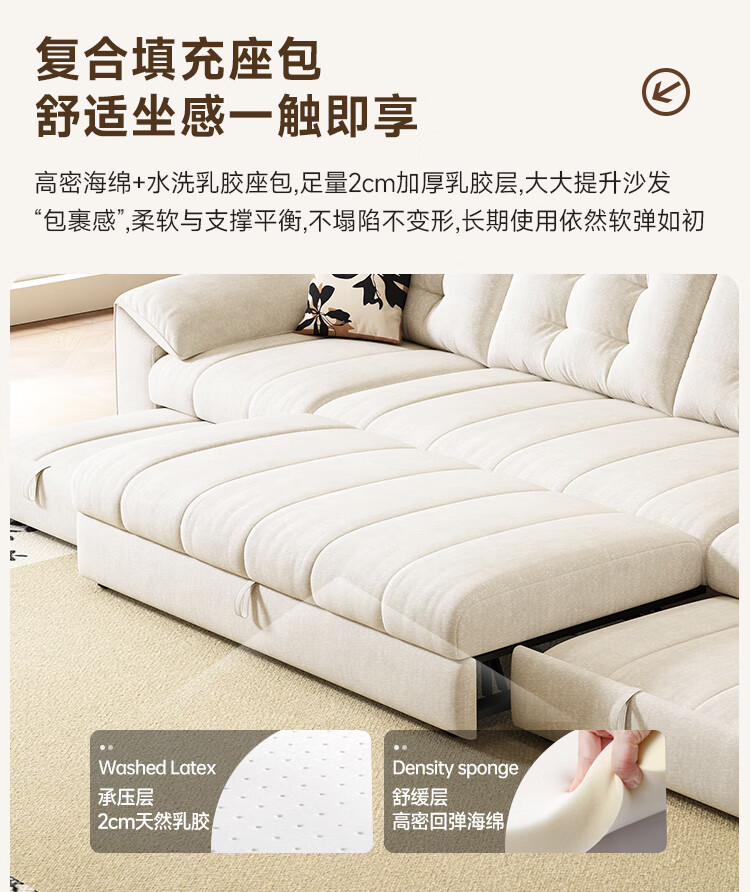 泽贤阁2025新款现代简约多功能折叠沙发一体两用客厅小户型懒人沙发 【新款猫抓皮+实木脚】米黄 【抑菌乳胶款】2*1.2米(2腰枕2扶手)