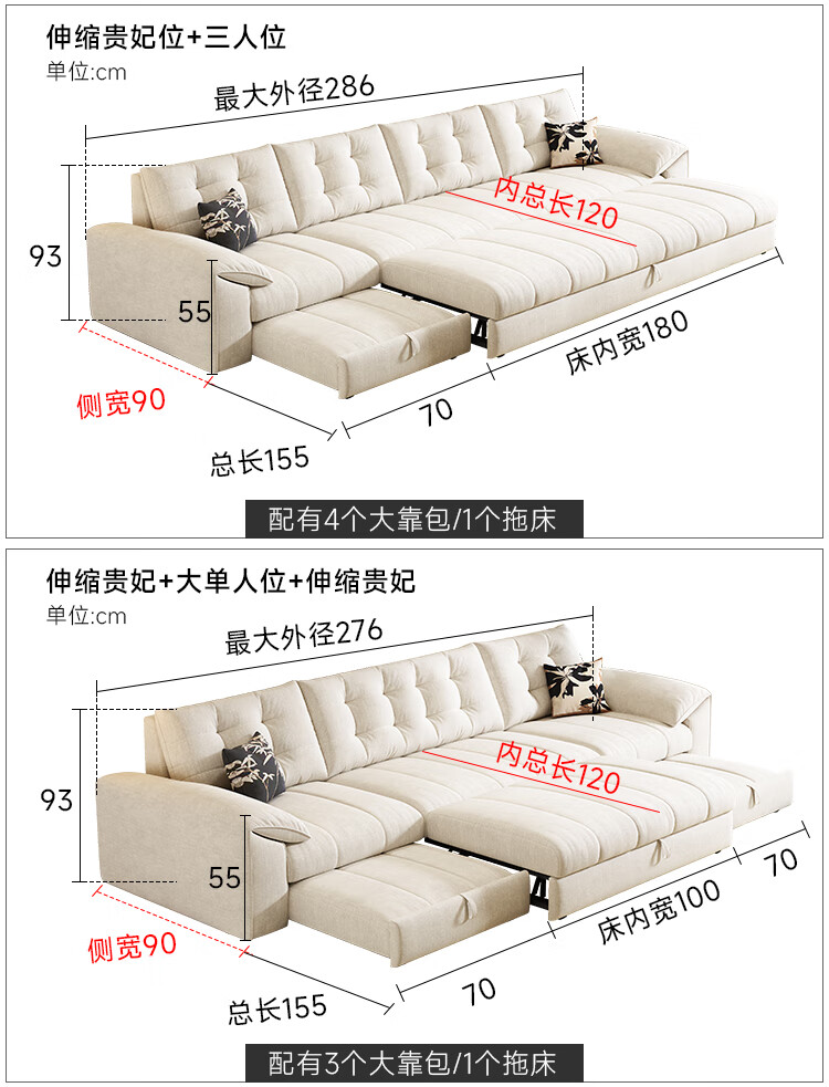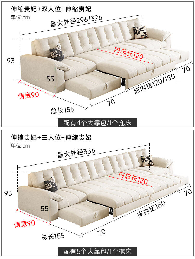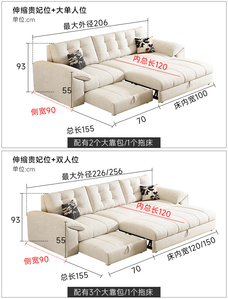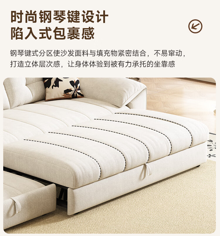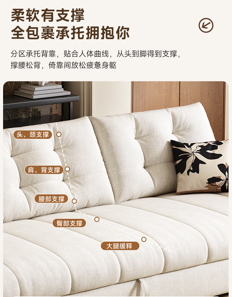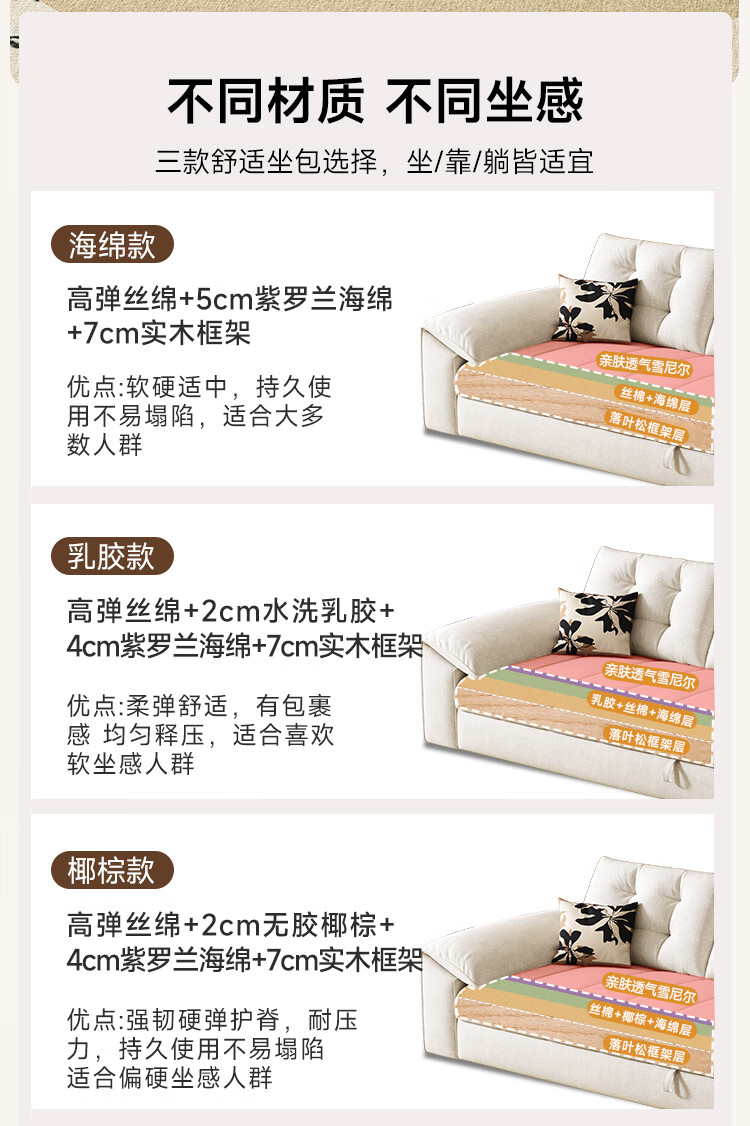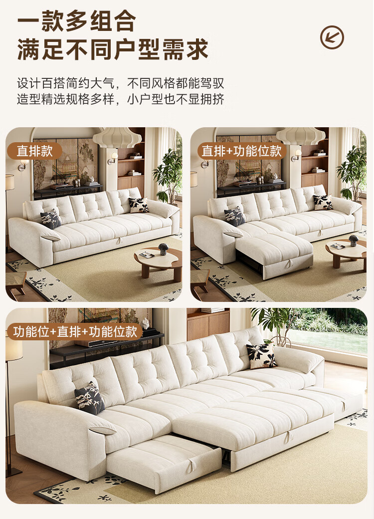 泽贤阁2025新款现代简约多功能折叠沙发一体两用客厅小户型懒人沙发 【新款猫抓皮+实木脚】米黄 【抑菌乳胶款】2*1.2米(2腰枕2扶手)
