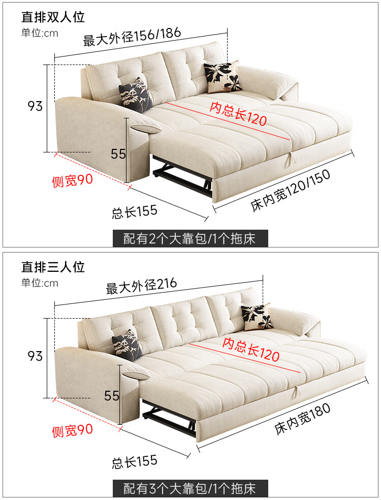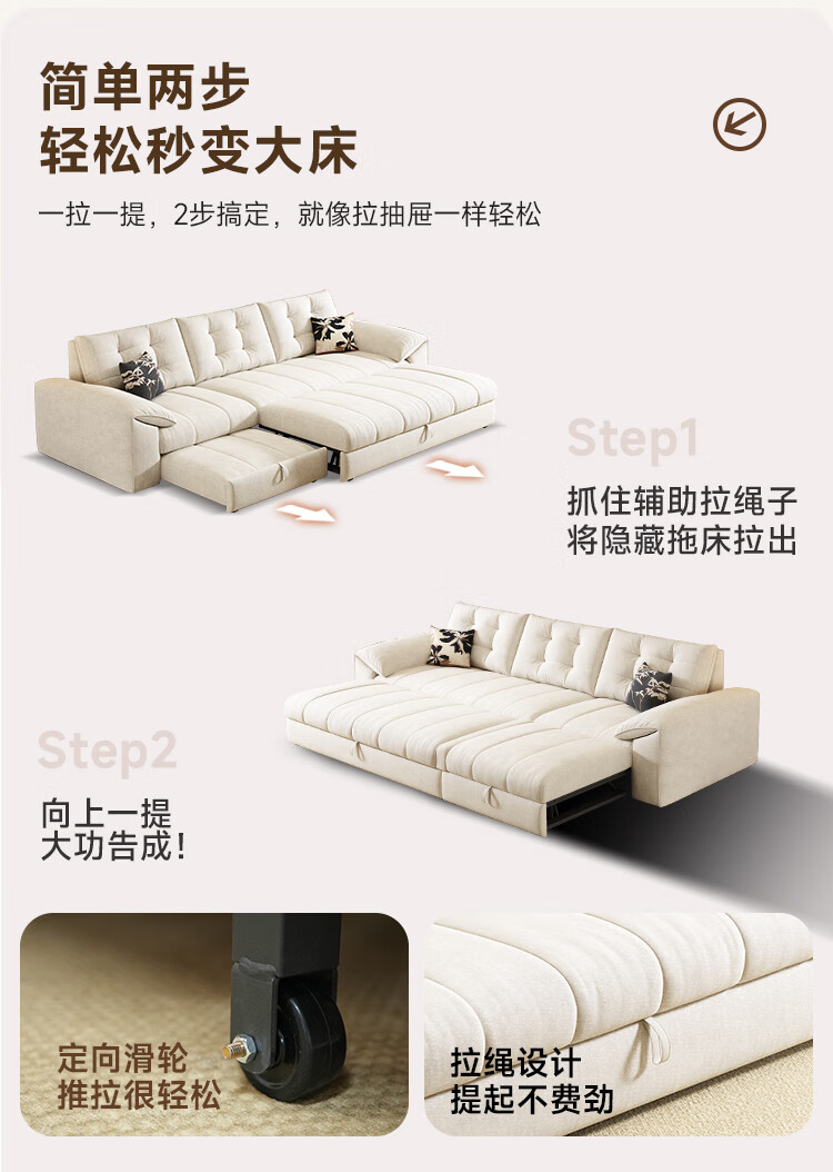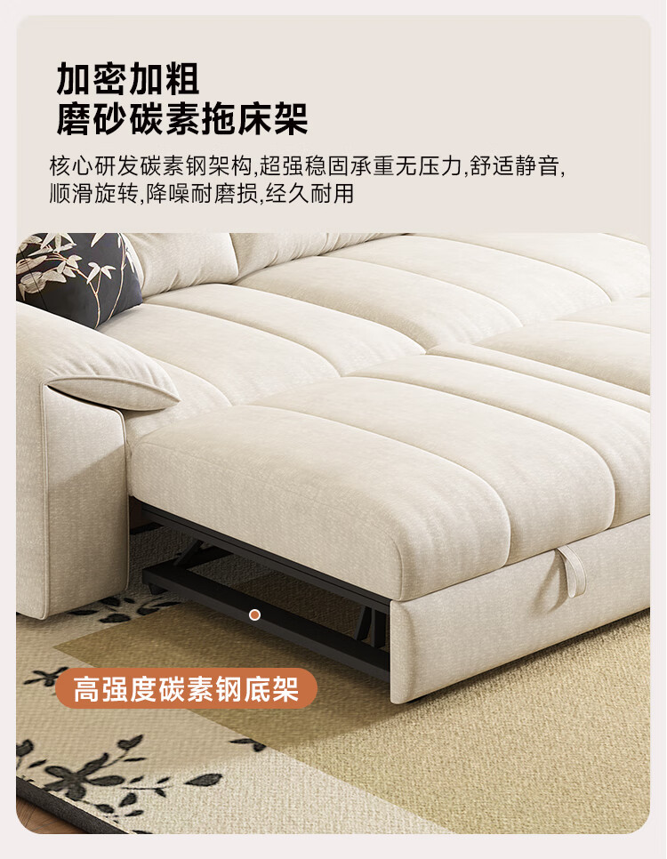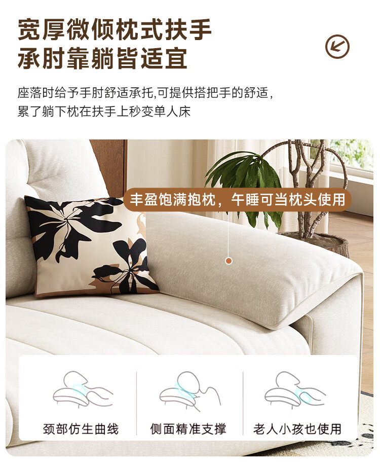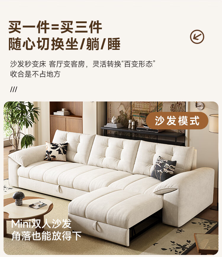 清茵阁2025新款现代简约多功能沙发床两用可折叠沙发床客厅小户型沙发床 【新款猫爪皮+实木脚】米黄 【抑菌乳胶款】升级款2*1.2米(2腰枕2扶手)
