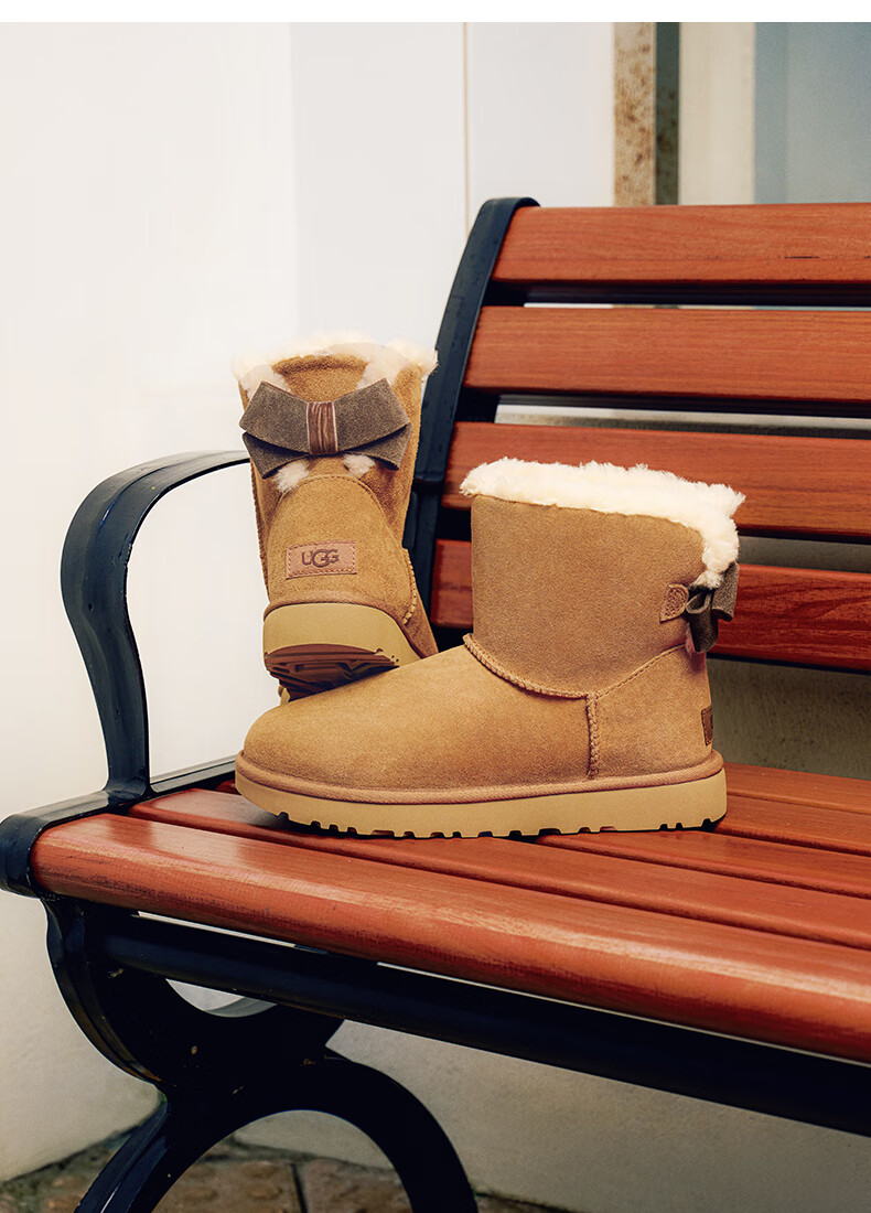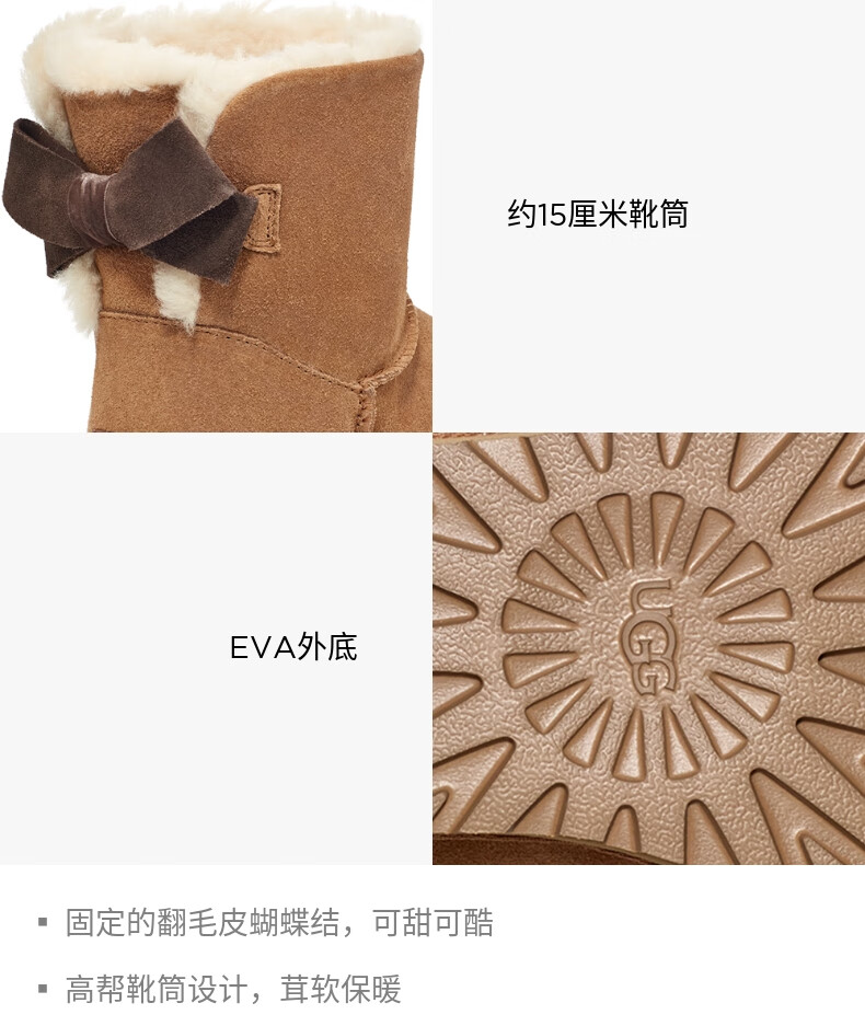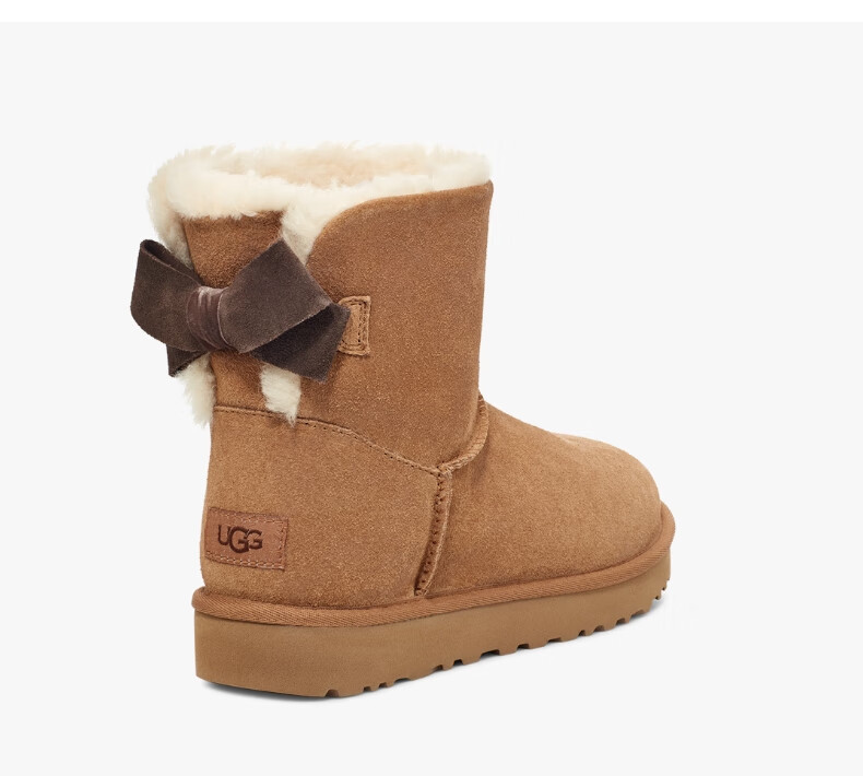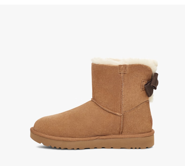 UGG秋季女士休闲舒适纯色保暖平底圆头蝴蝶结款短靴雪地靴1153514 CHE | 栗色 38
