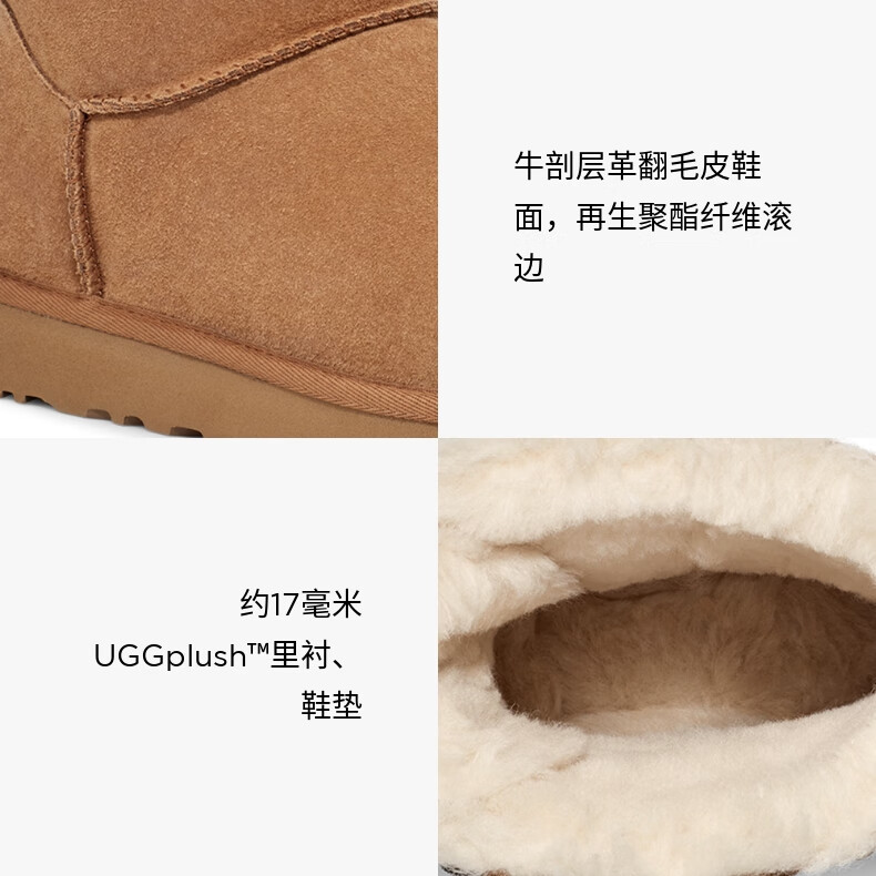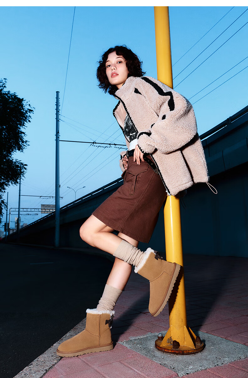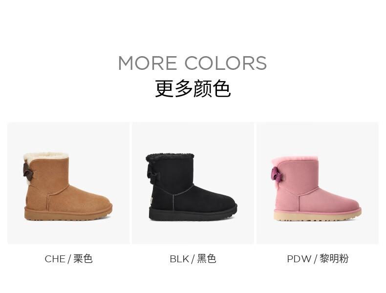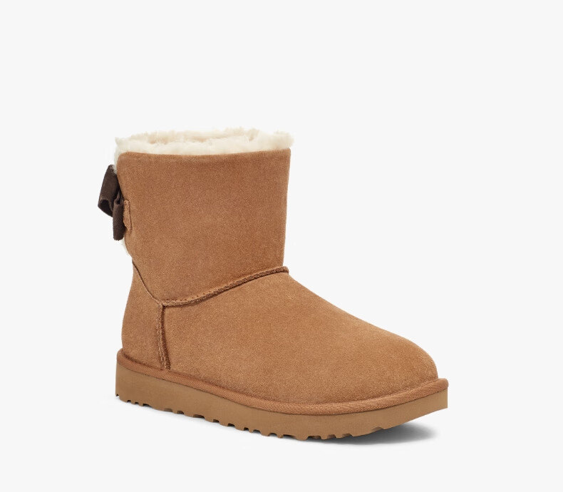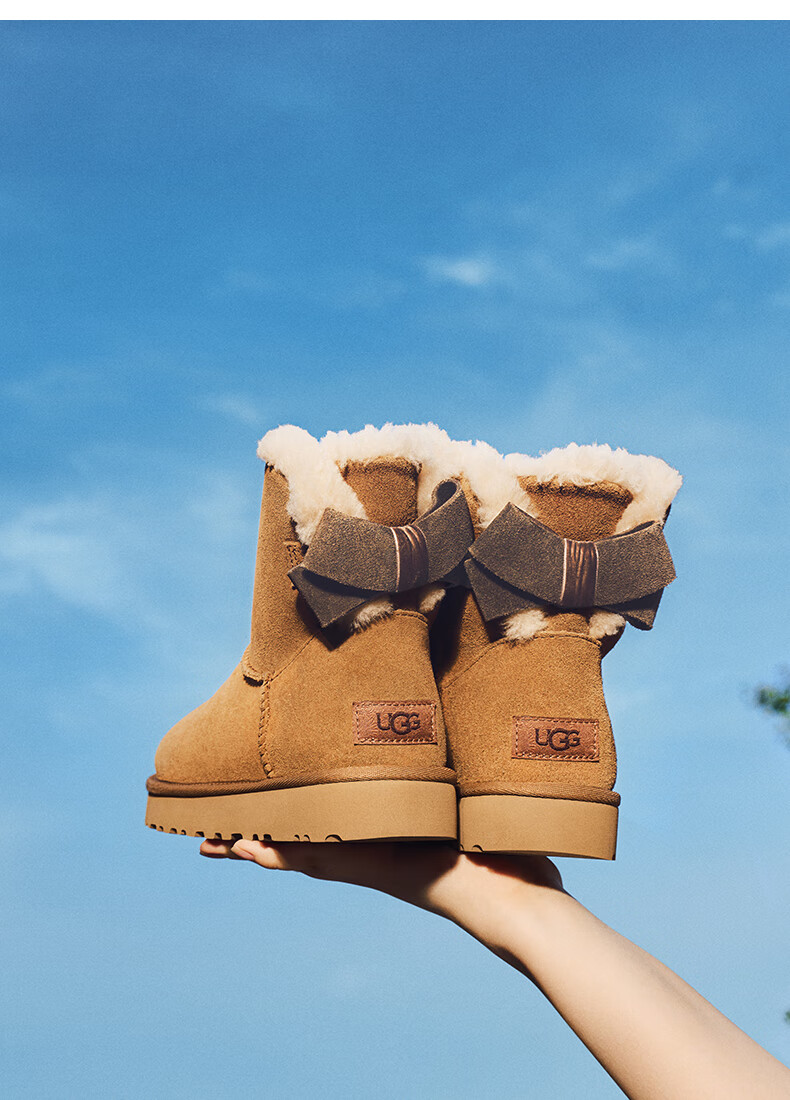 UGG秋季女士休闲舒适纯色保暖平底圆头蝴蝶结款短靴雪地靴1153514 CHE | 栗色 38