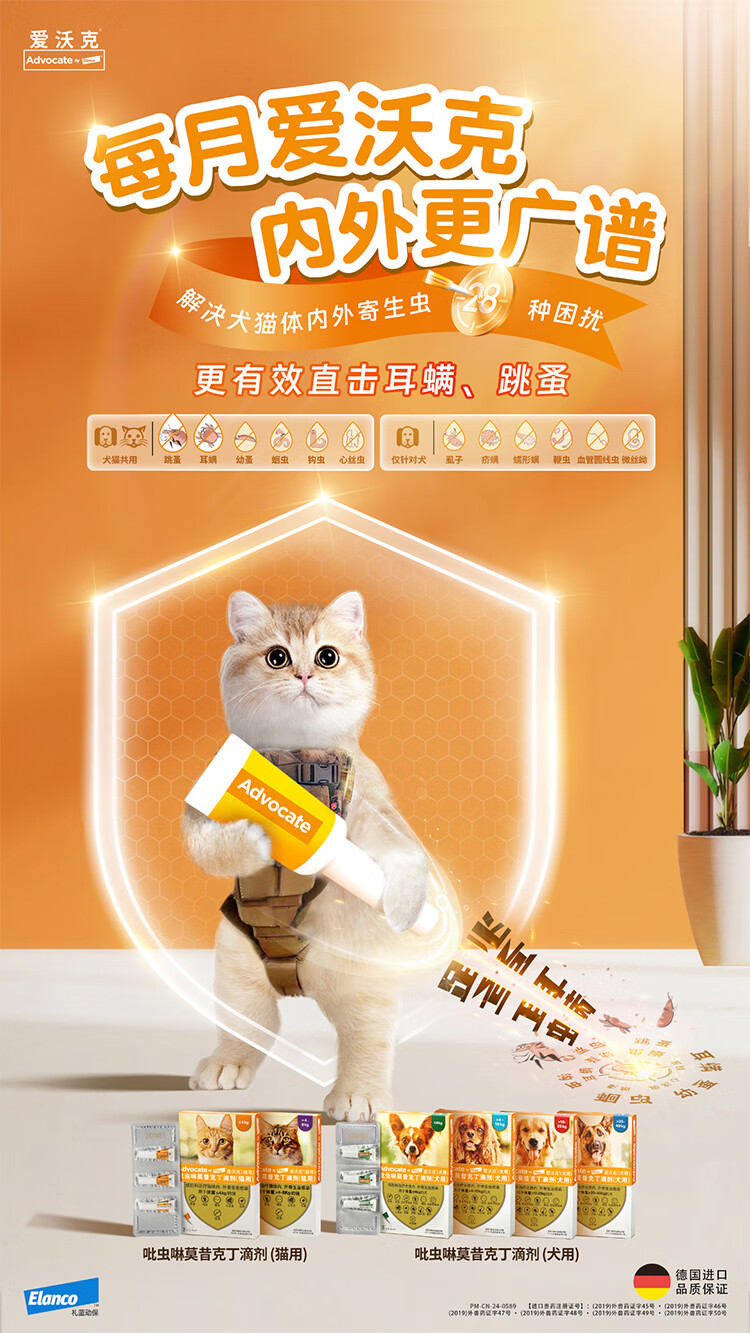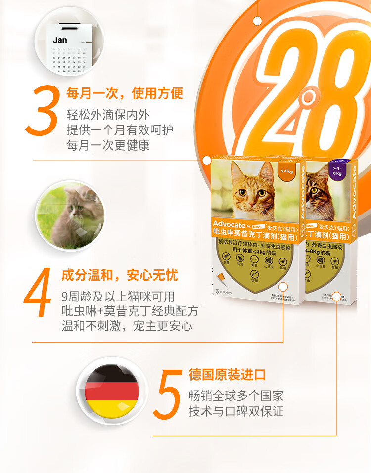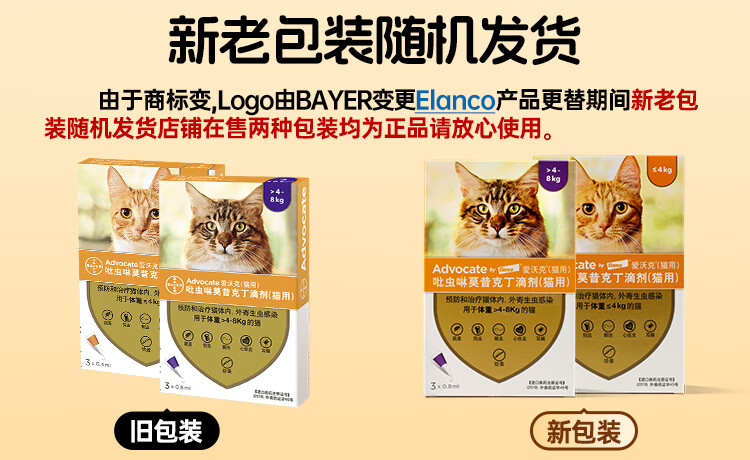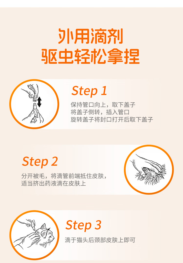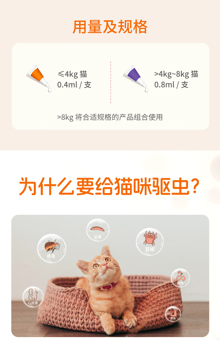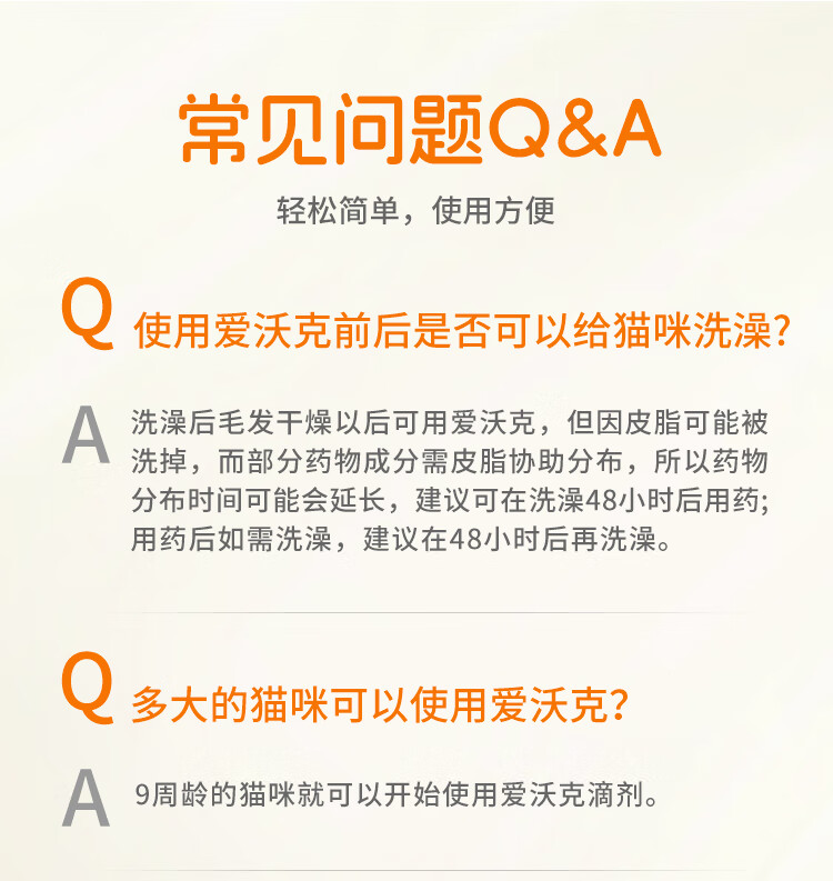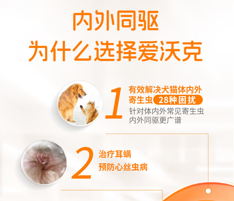 爱沃克宠物驱虫药猫咪体内外同驱虫4~8kg成猫用0.8ml*3支