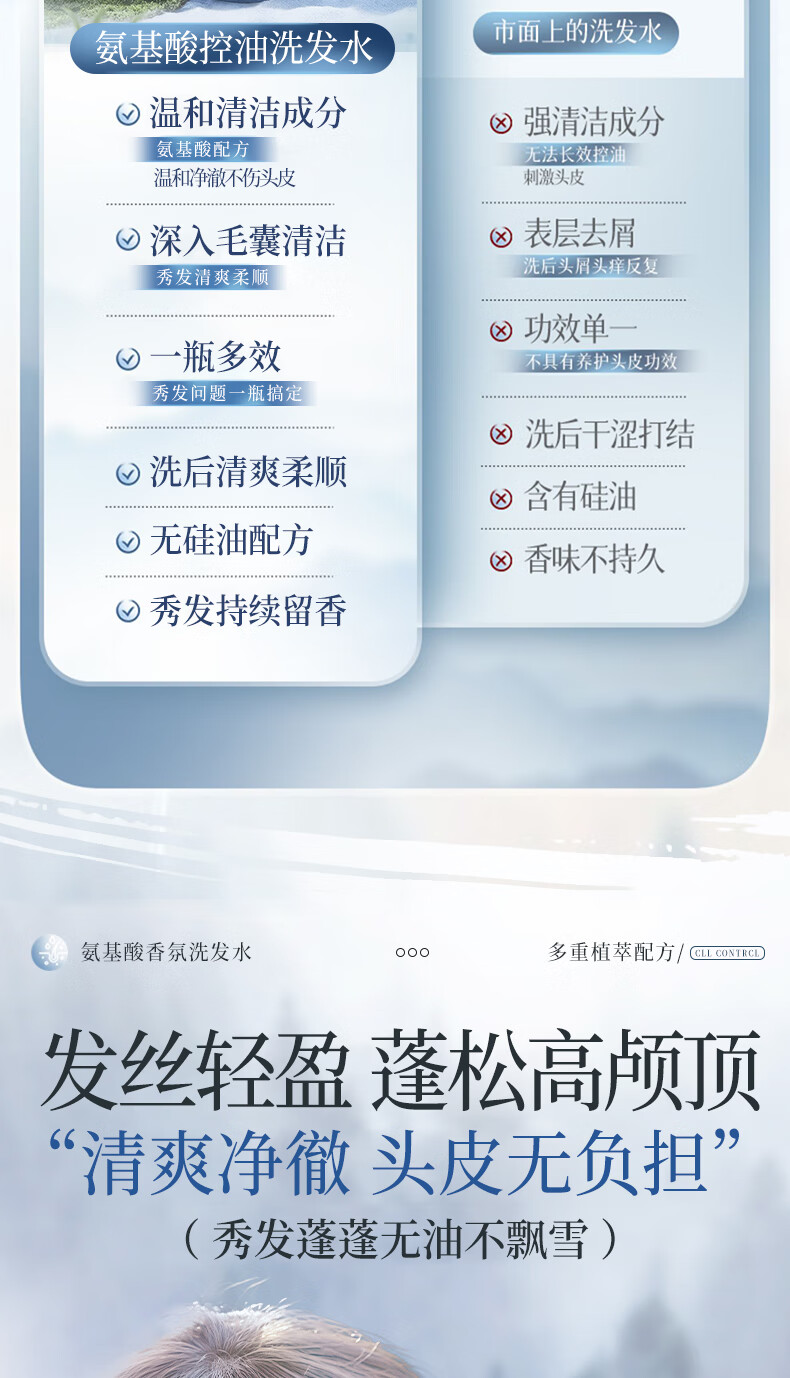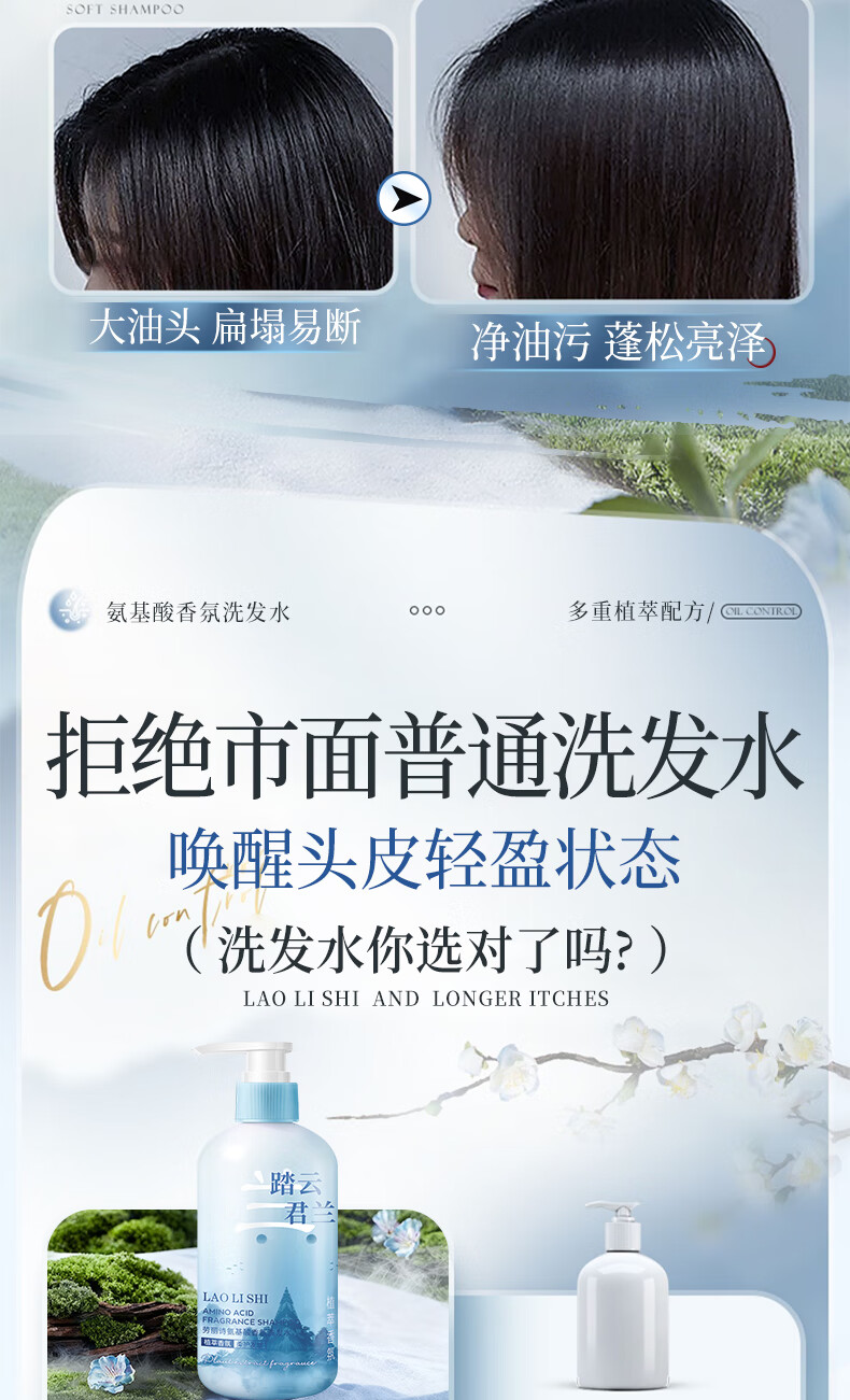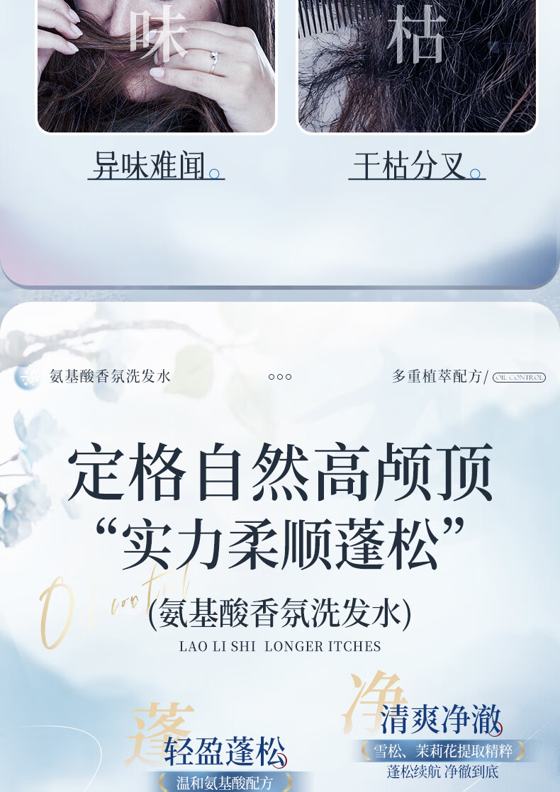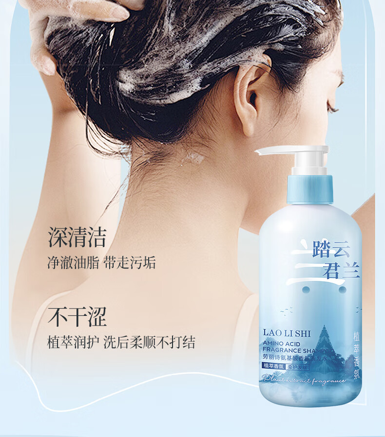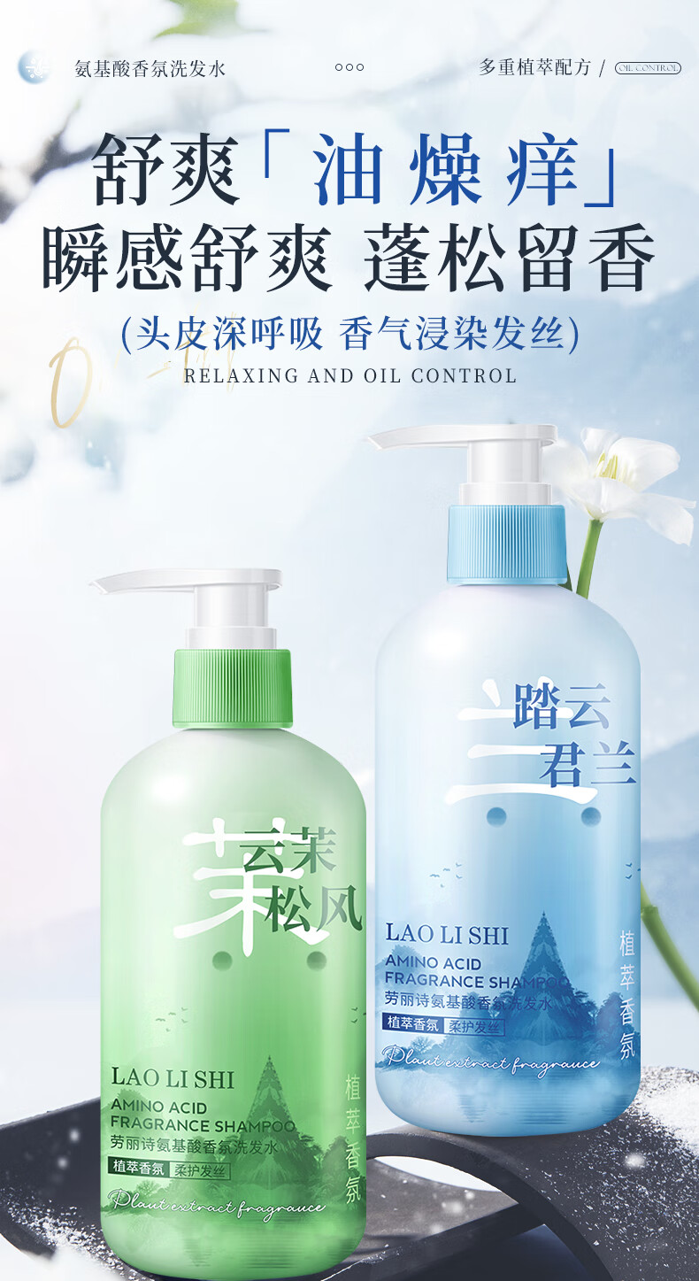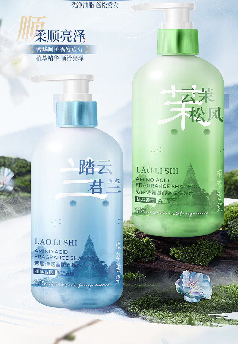劳丽诗氨基酸洗发水植萃净爽头油头痒柔顺蓬松留香护发洗头膏露男女洗护 柔顺亮泽-氨基酸洗发水 300ml*2瓶