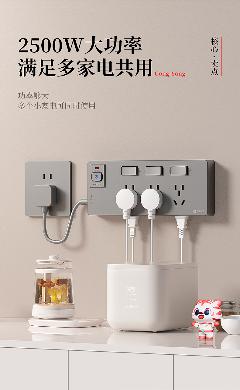 国际电工86型无线拓展插座转换器一转多一转六电源插头超薄多功能扩展家用 星空灰1转4 86型【分控】