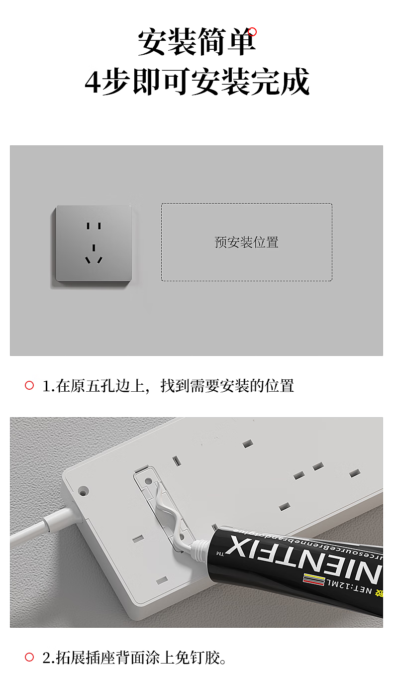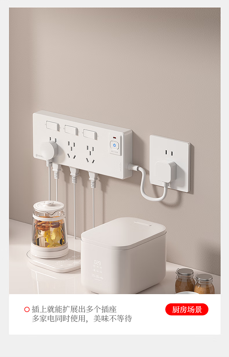 国际电工(FDD)拓展扩展插座家用厨房多功能原位替换86型无线转换器插排独立开关 白色二开32孔-左右扩展【带指示灯】