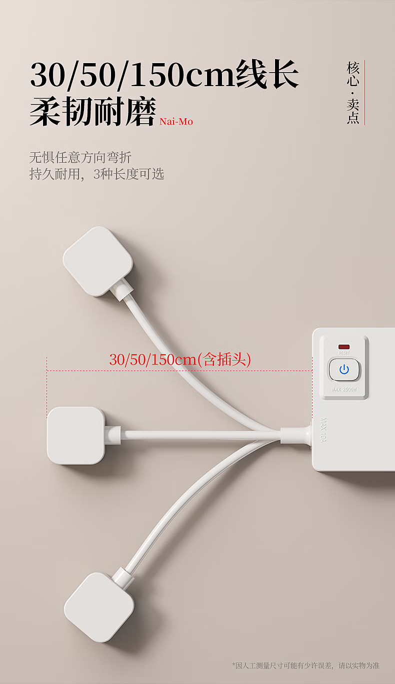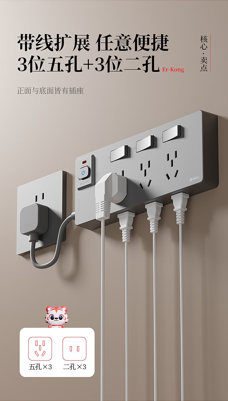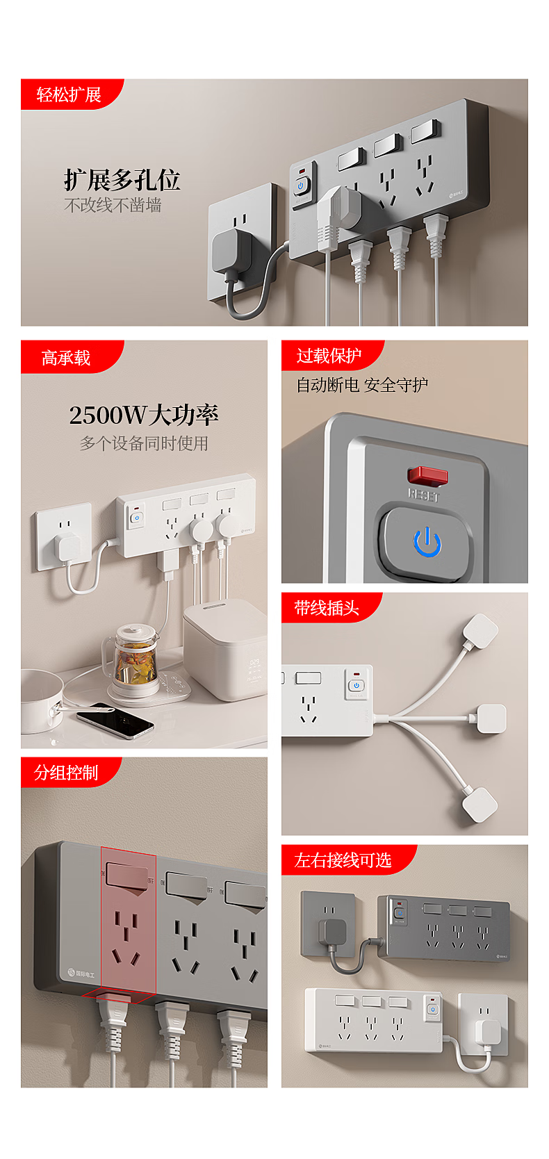 国际电工家用带线扩展插座拓展插排多功能转换器插头防过载保护插线板排插 白色-左扩展 短线30厘米-三位三开21孔