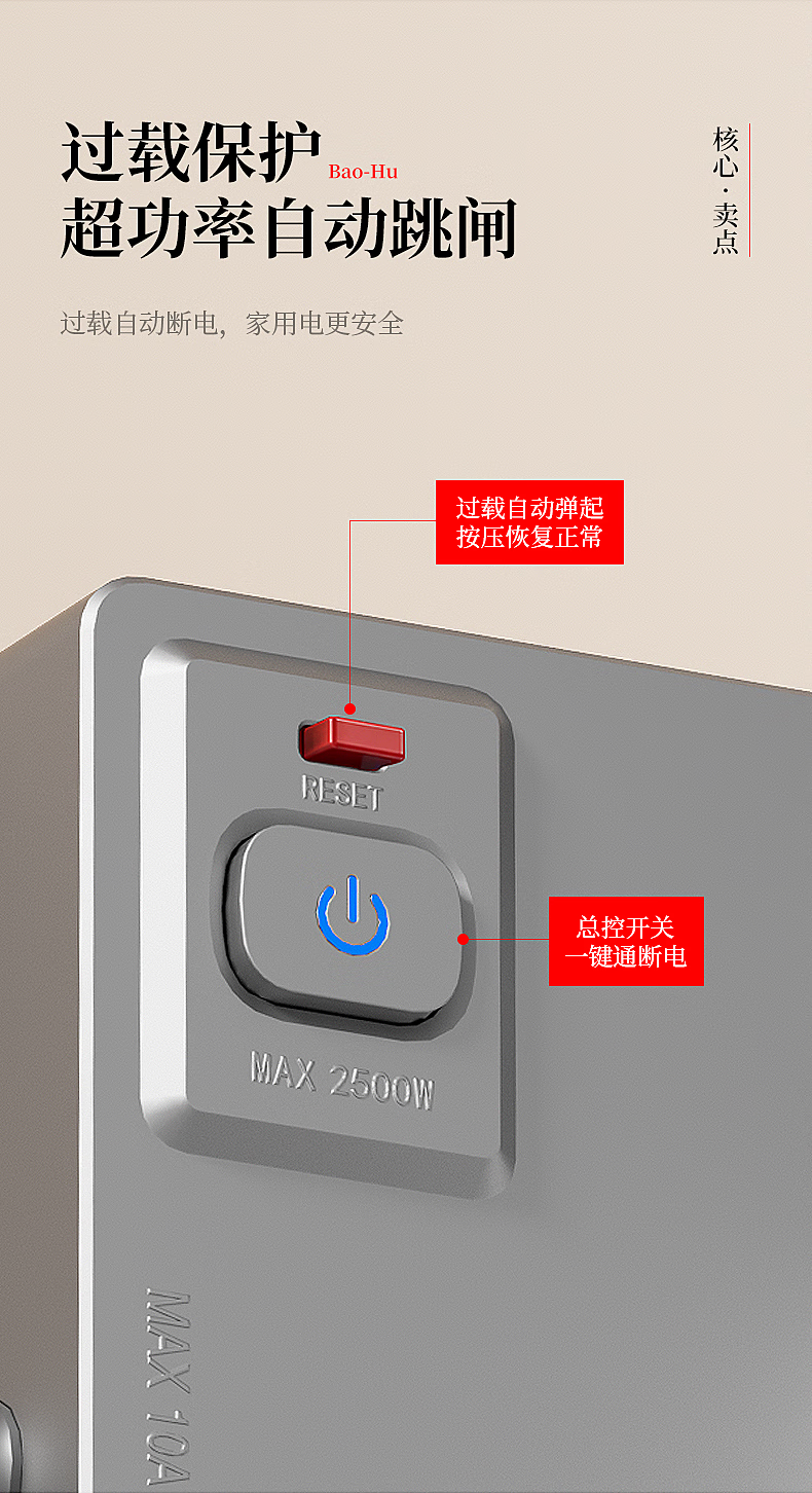 国际电工明装开关插座明线盒二开十孔三位十五孔四联插排5孔双控开关插座 三开十五孔【独立控制】