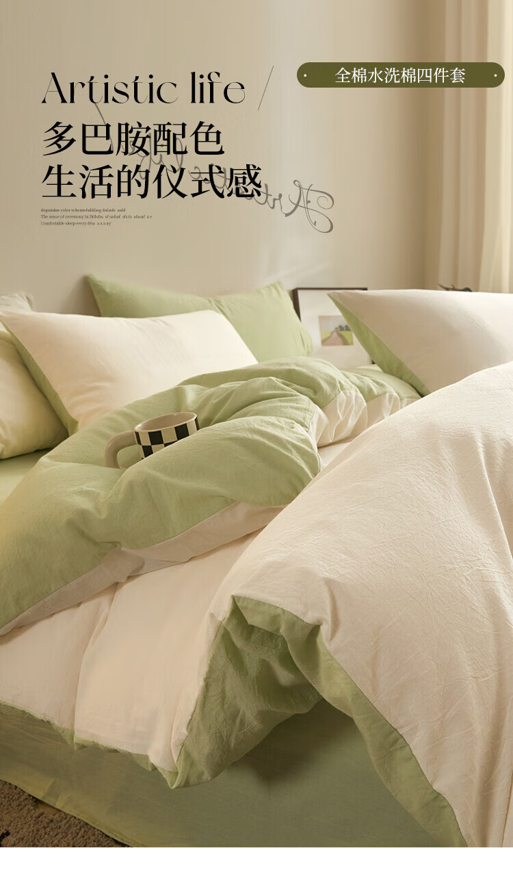 猫人(MiiOW)简约全棉床上四件套纯棉2025新款宿舍床单被罩三件套床品四季通用 湖蓝【100%精梳全棉面料 适合裸睡】 床笠款 1.8m床四件套-适合200x230cm被子