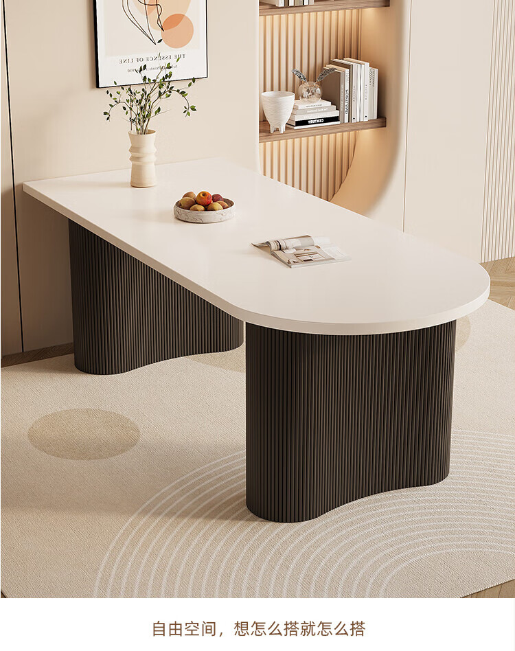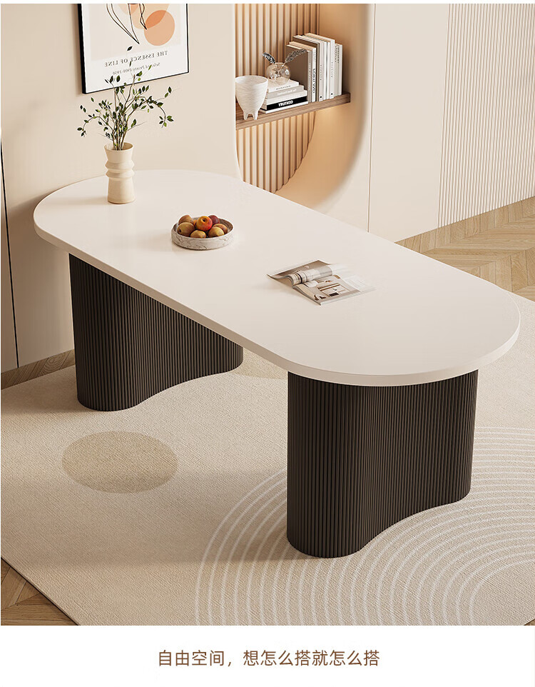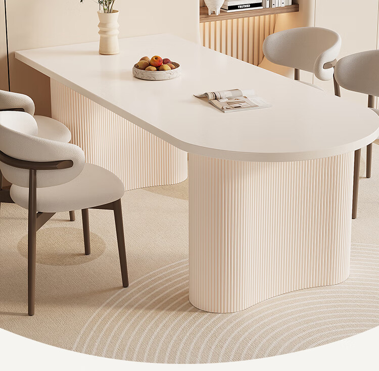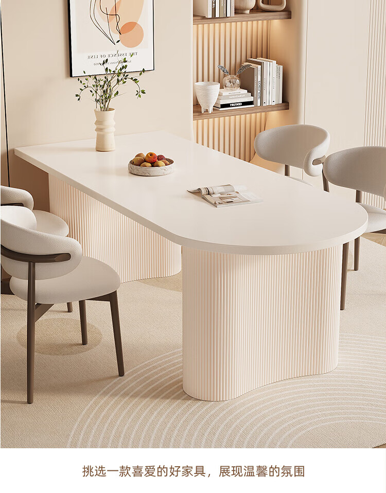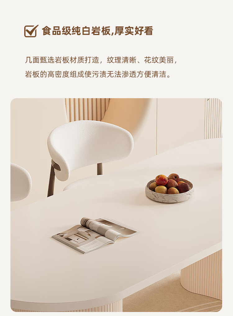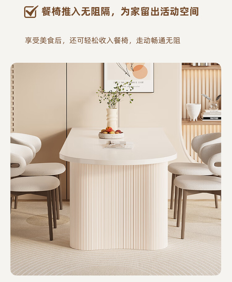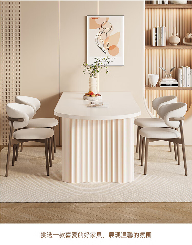 素树家居岩板餐桌家用小户型现代简约弧形岛台一体饭桌子奶油风餐桌椅组合 半圆纯白岩板单桌 120x60x75cm