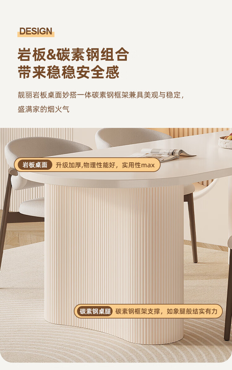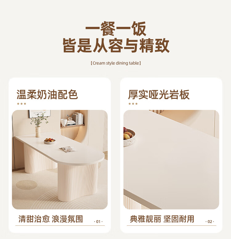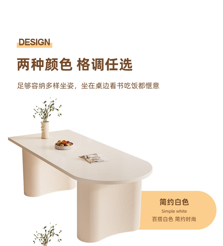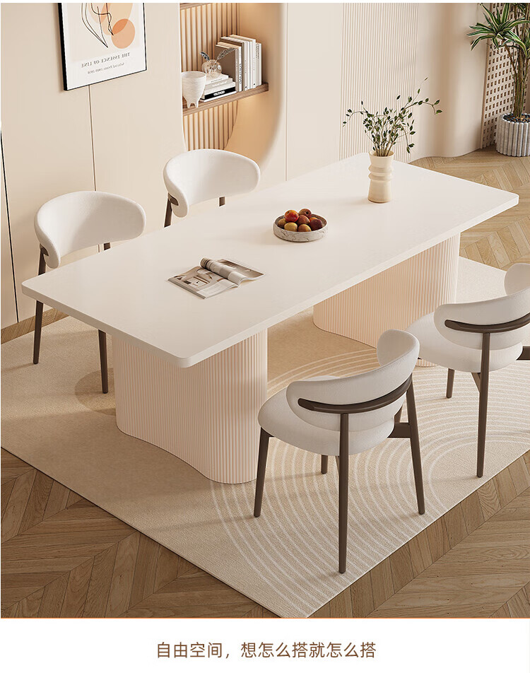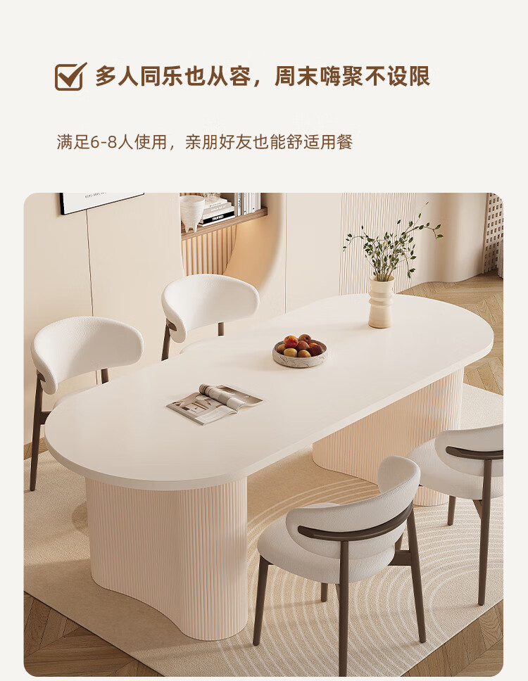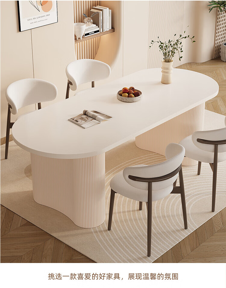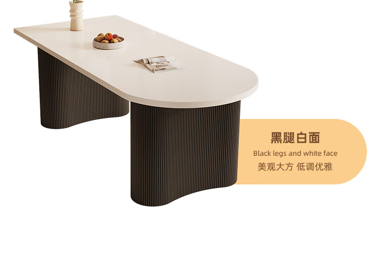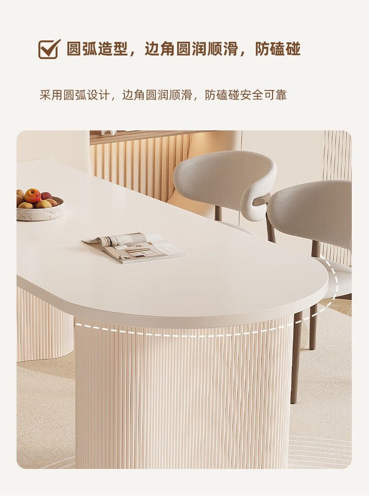 素树家居岩板餐桌家用小户型现代简约弧形岛台一体饭桌子奶油风餐桌椅组合 半圆纯白岩板单桌 120x60x75cm