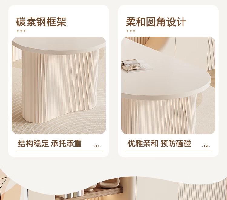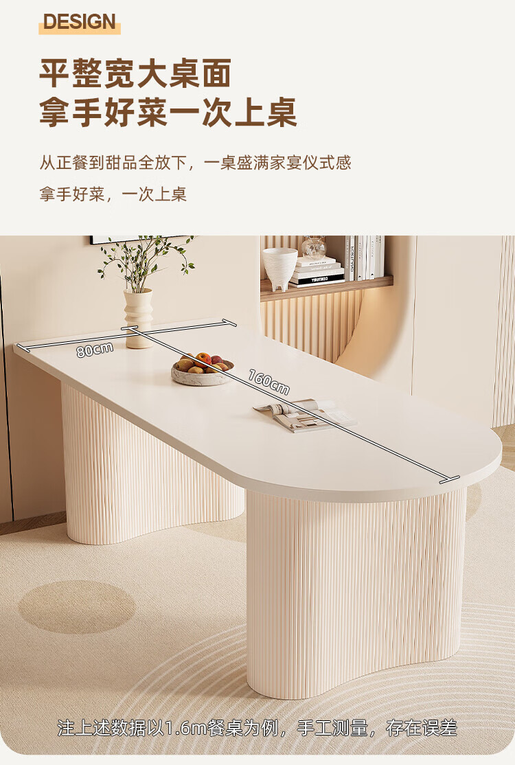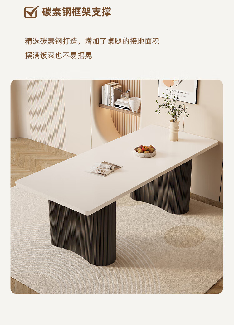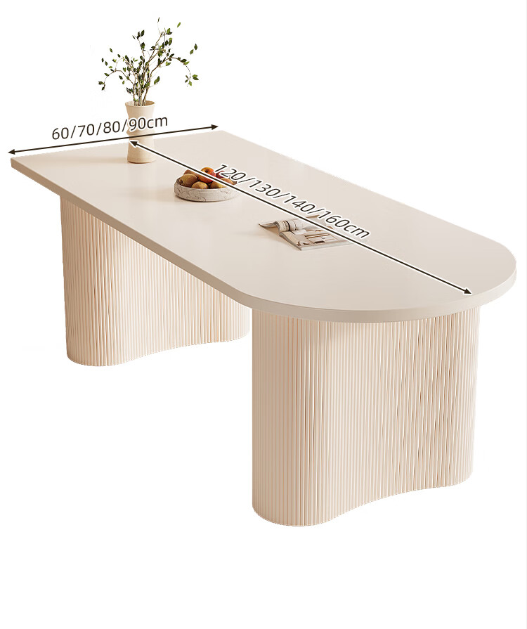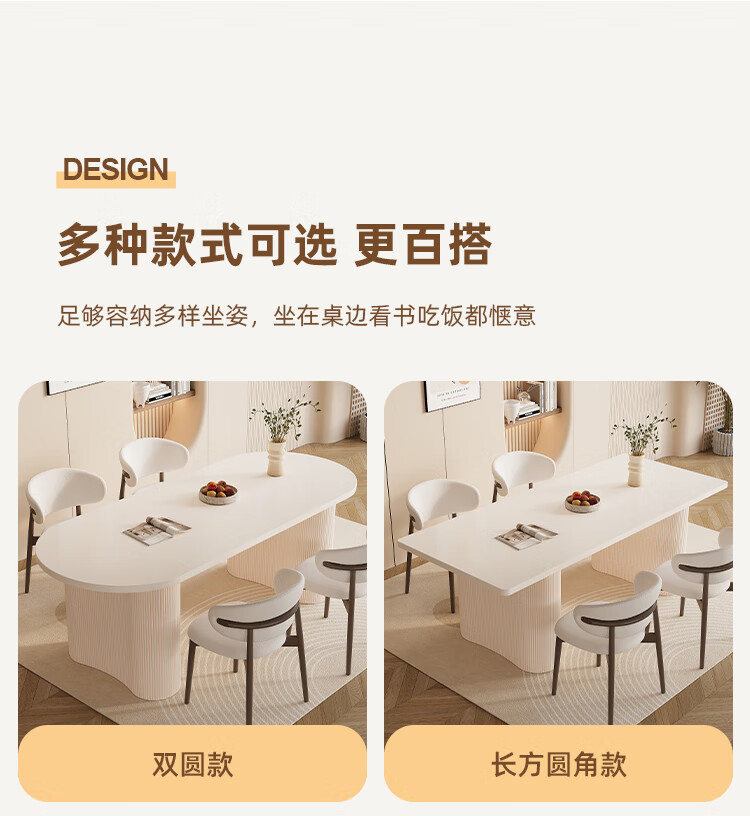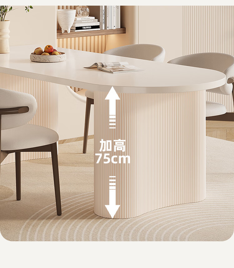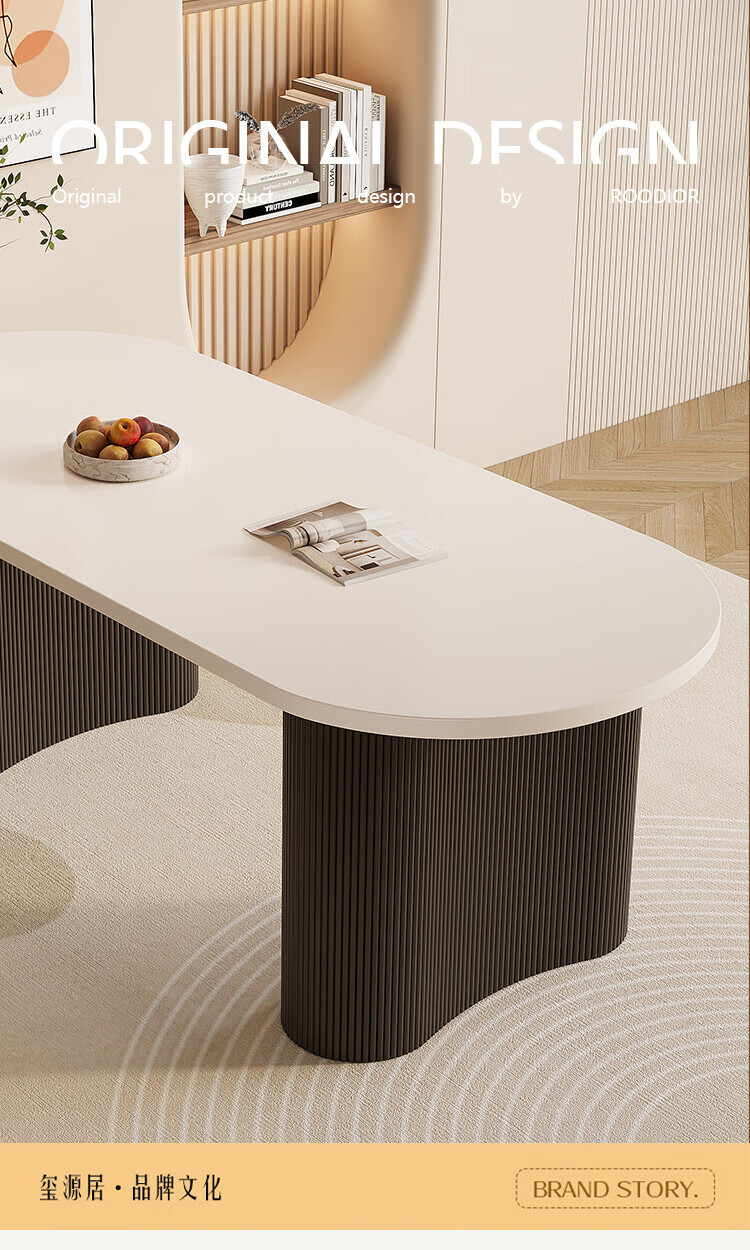 素树家居岩板餐桌家用小户型现代简约弧形岛台一体饭桌子奶油风餐桌椅组合 半圆纯白岩板单桌 120x60x75cm