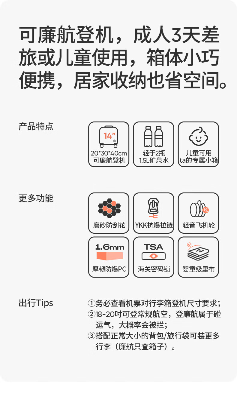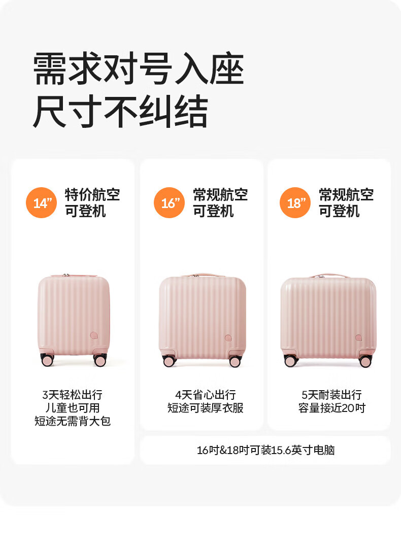 阿季行李箱小型登机箱女14英寸飞机轻便春秋航空登机箱儿童拉杆旅行箱