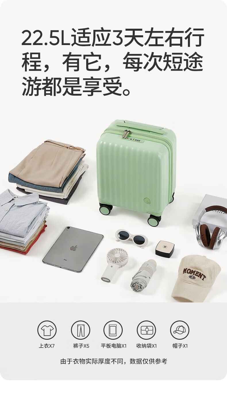 米家小米行李箱20英寸拉杆箱可登机箱万向轮旅行箱男女小型密码箱绿色