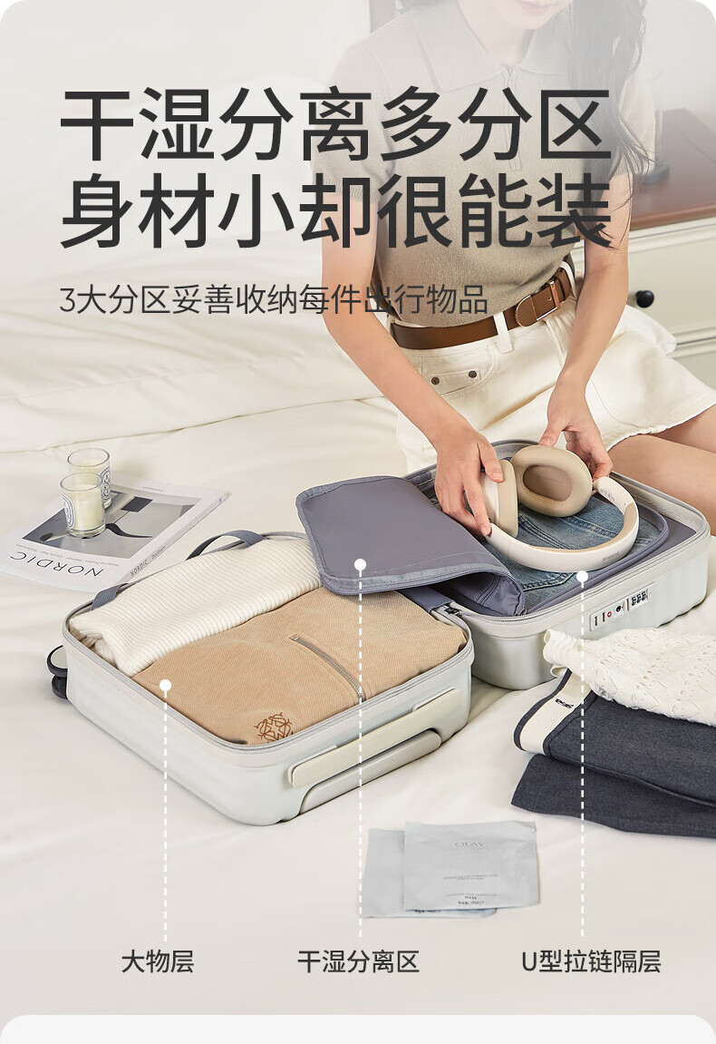 1号会员店OM逸行铝框旅行箱20英寸可登机行李箱行旅箱免托运拉杆箱雾月银
