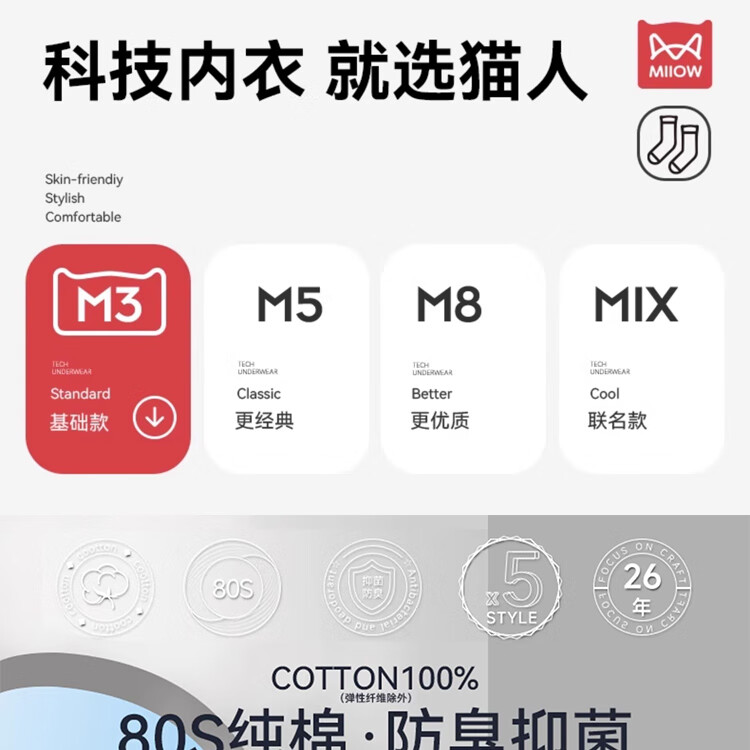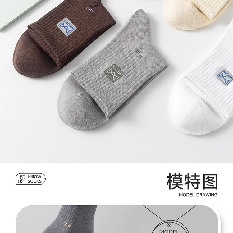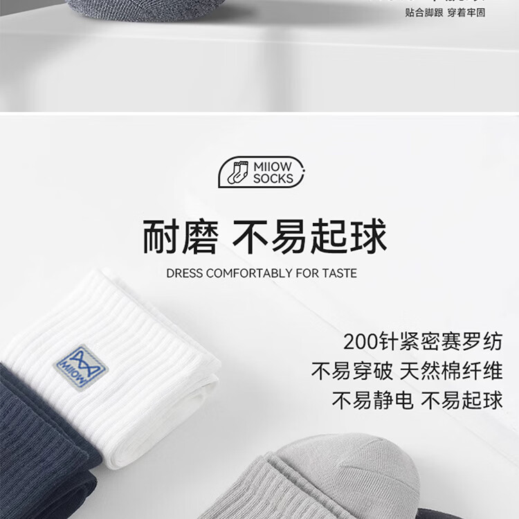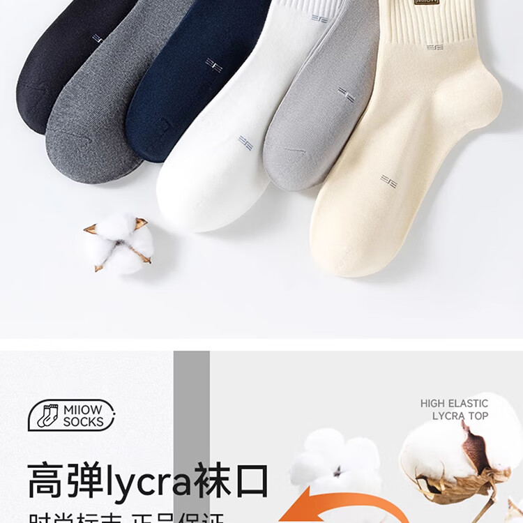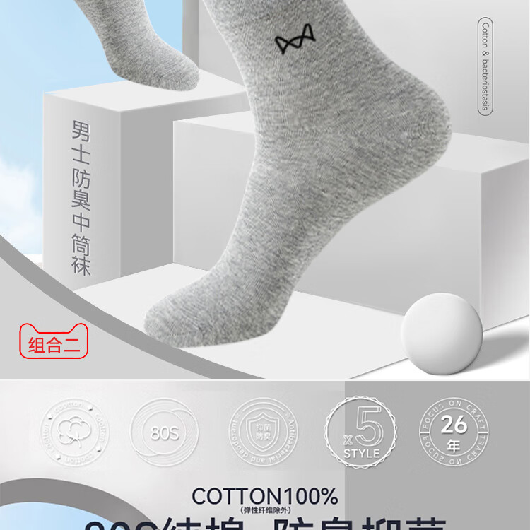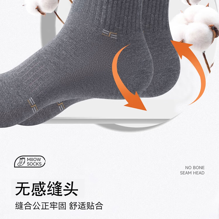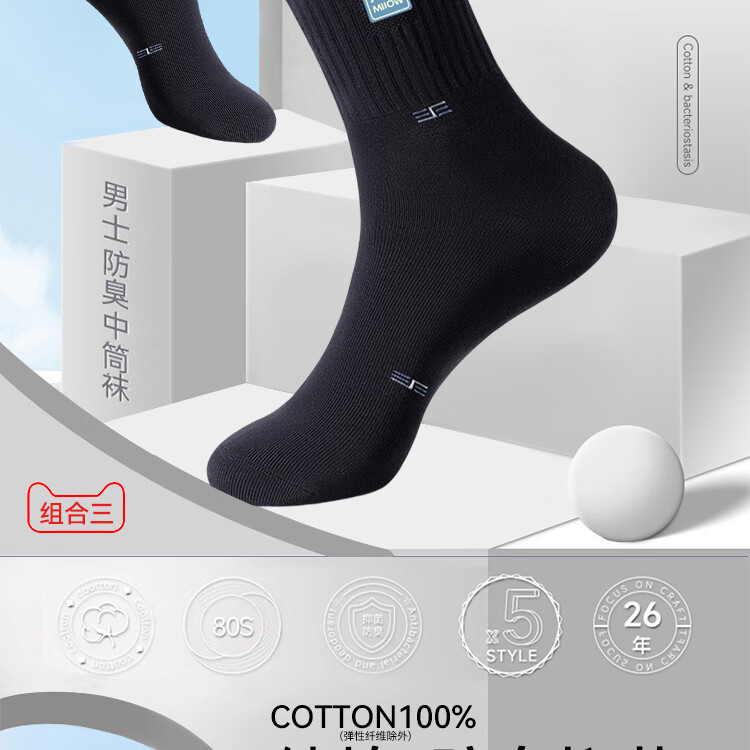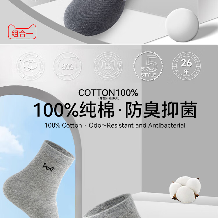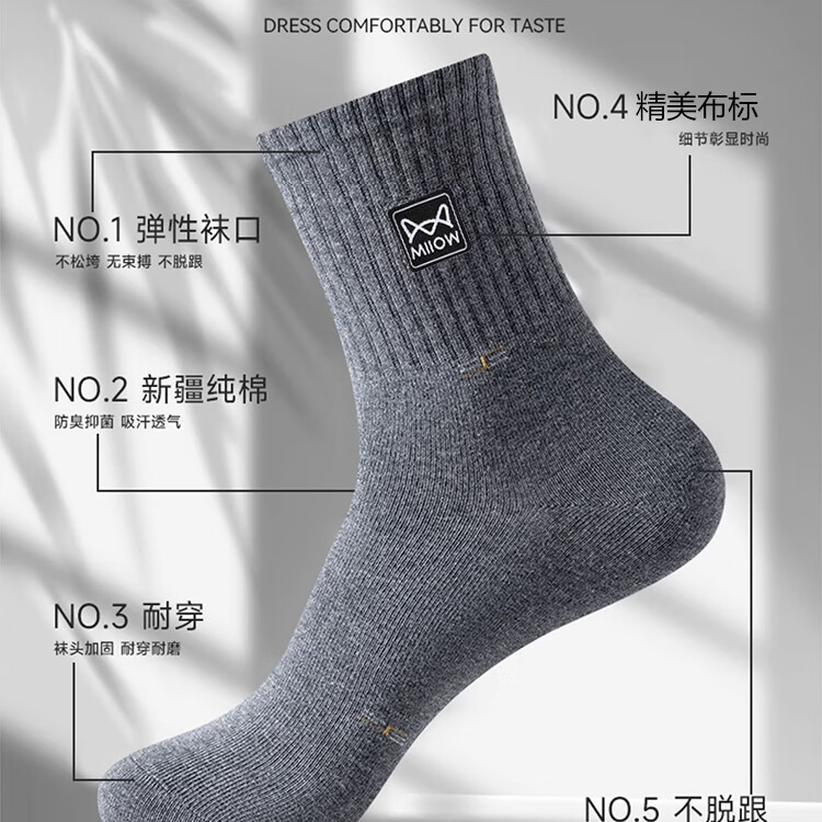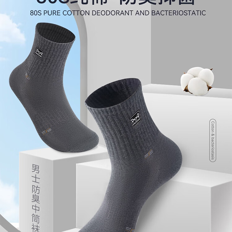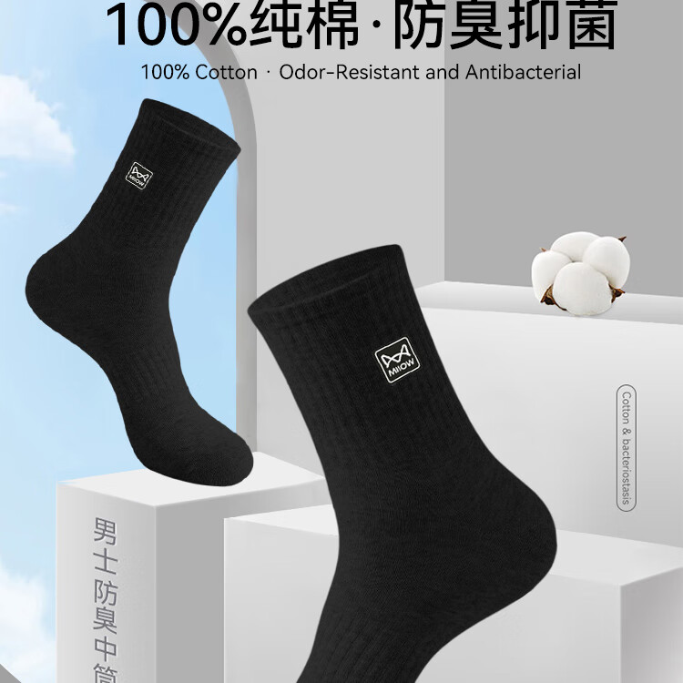 猫人男士袜子男100%纯棉防臭吸汗10A级抗菌秋冬长袜休闲商务中筒袜6双