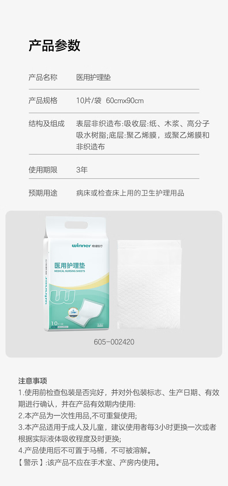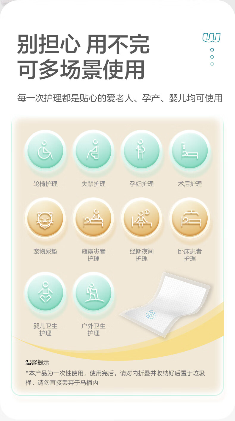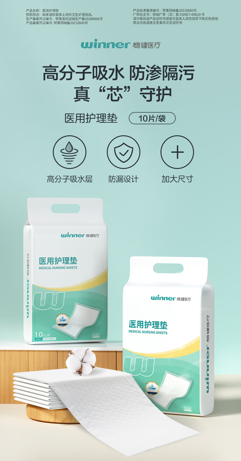 稳健医用成人护理垫一次性防渗隔尿老人婴儿产妇产褥垫60*90cm10片/袋