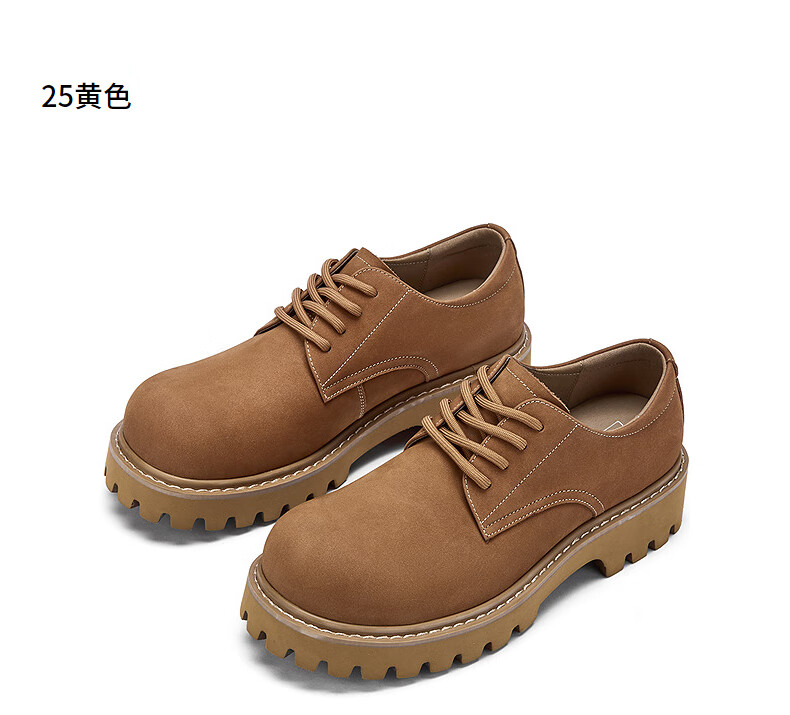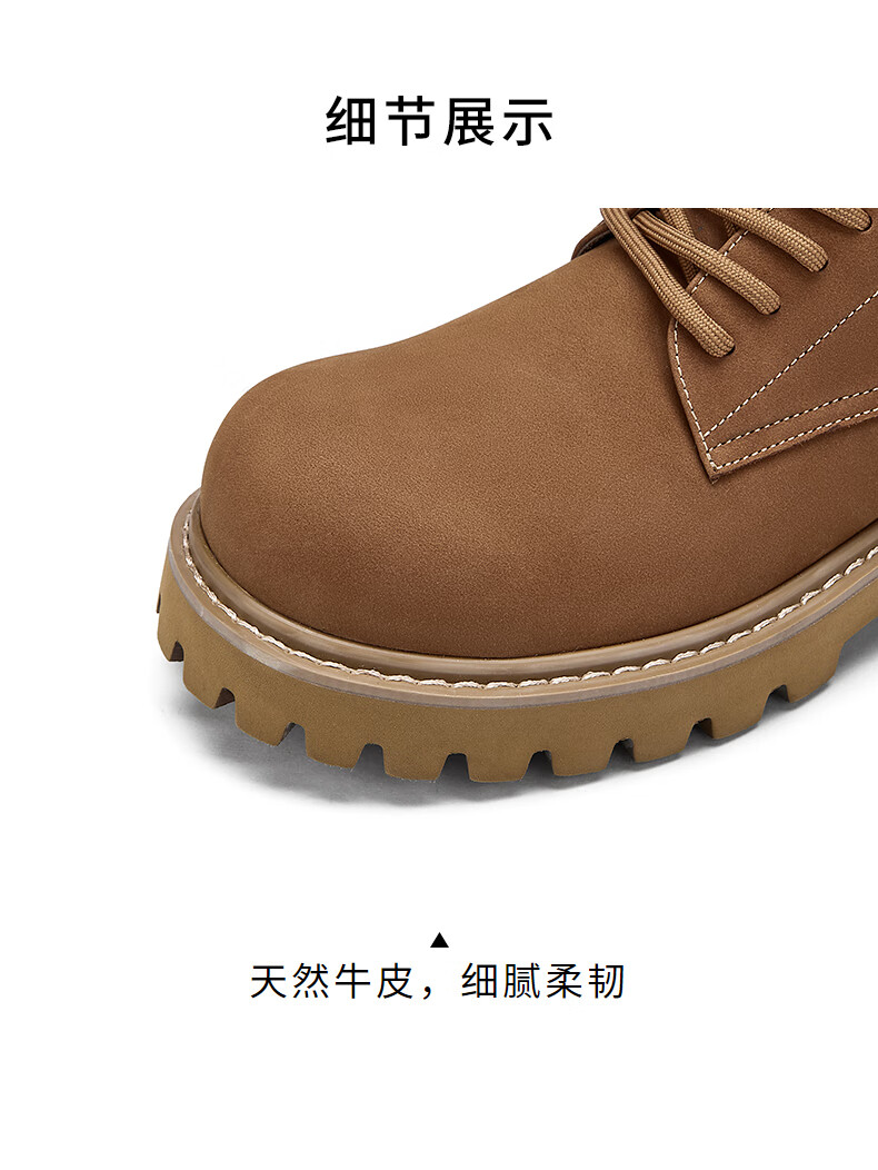 热风【商场同款】男鞋复古工装鞋2025年秋季新款男士百搭户外休闲皮鞋 25黄色 牛头层皮革 41