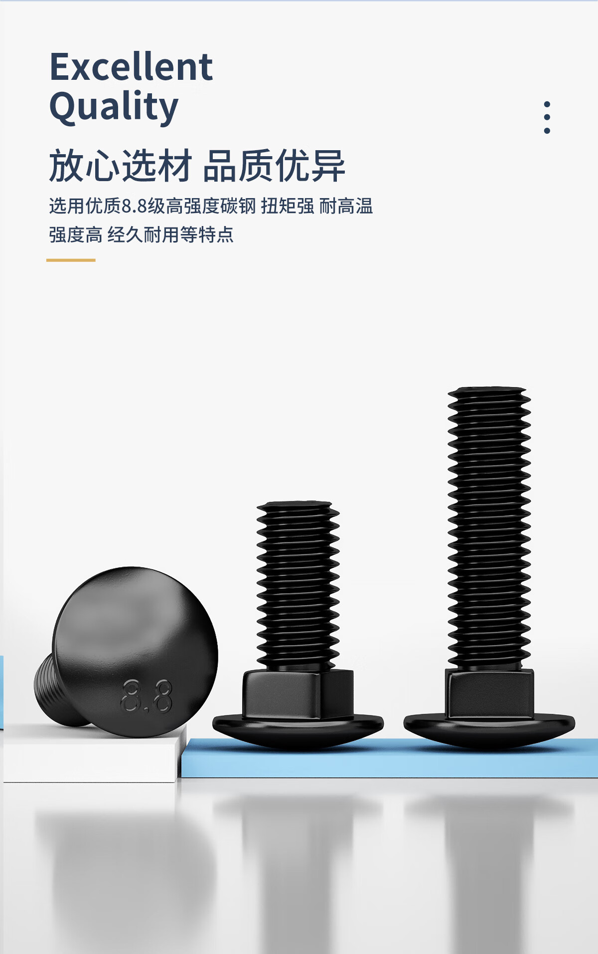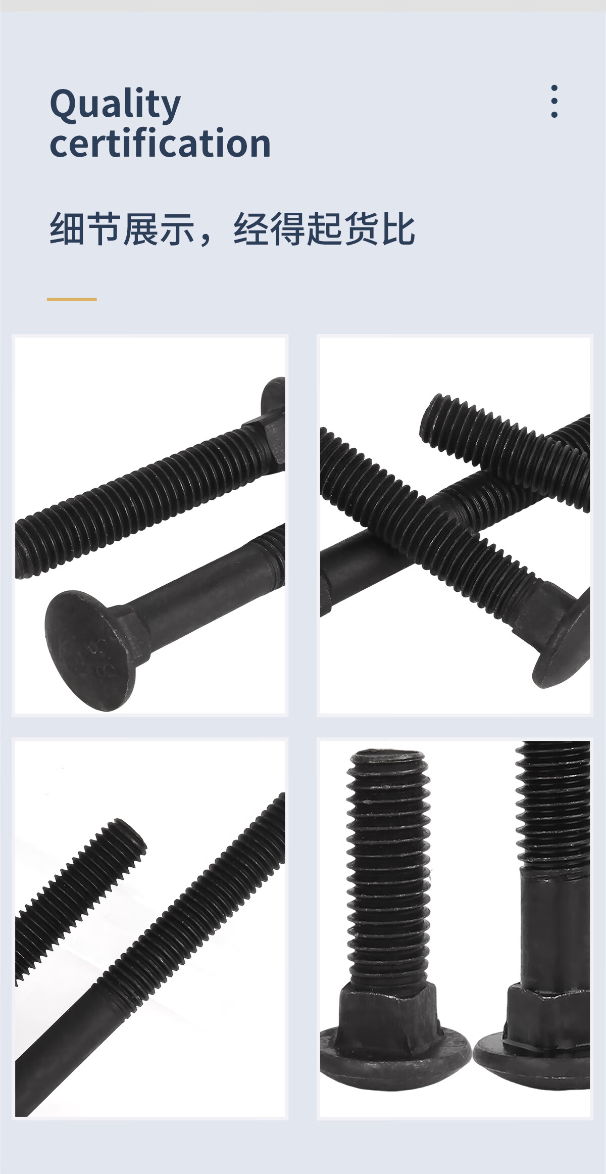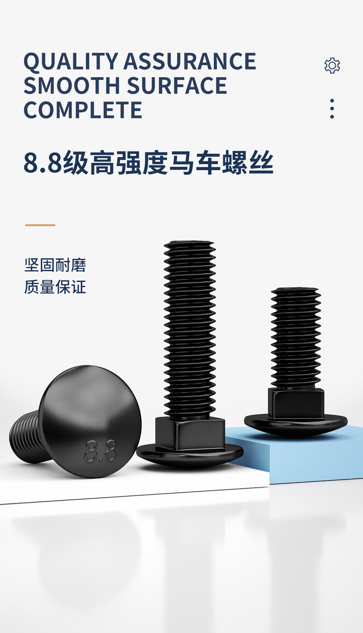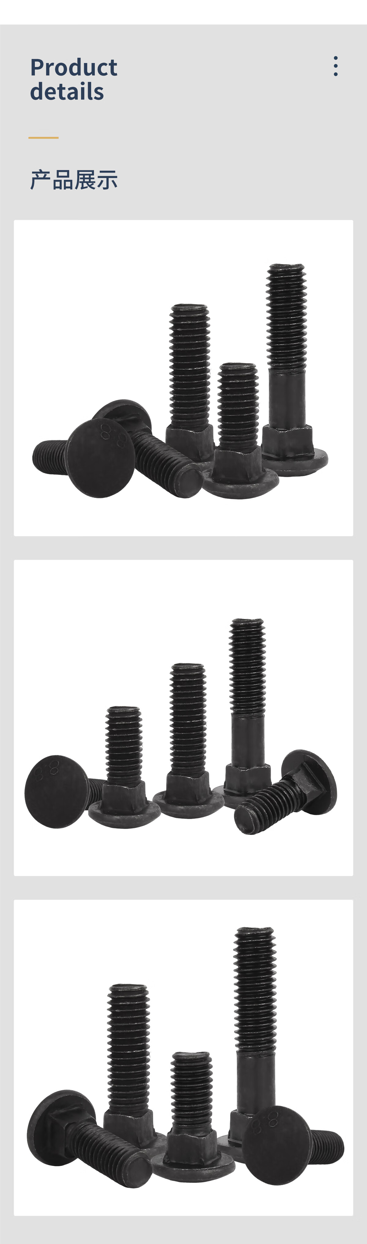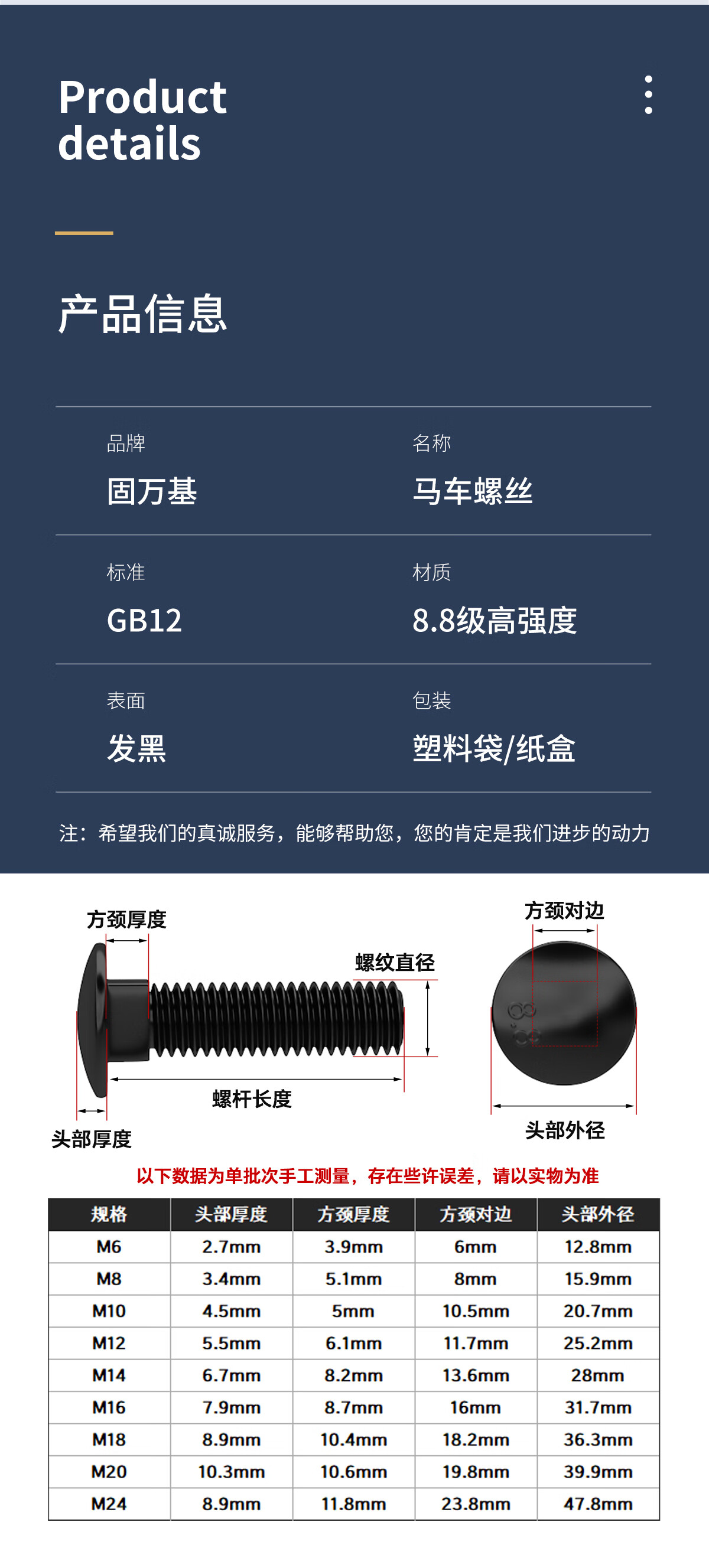 固万基8.8级马车螺丝高强度半圆头方颈螺栓货架桥架螺丝M6M8M10M12M16 M6x20全牙(50只)
