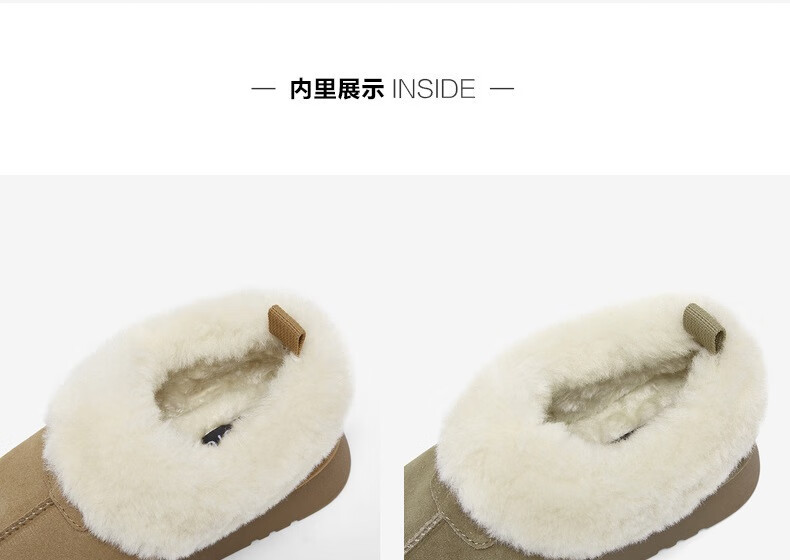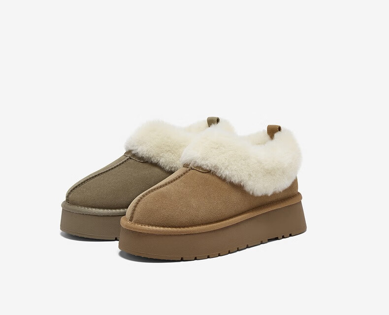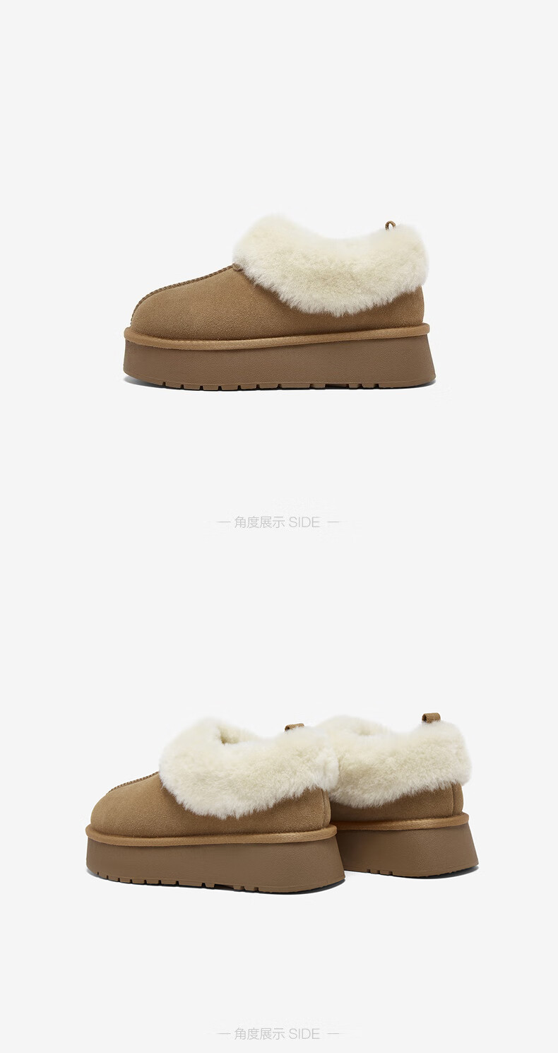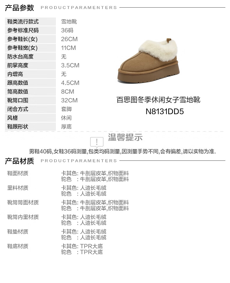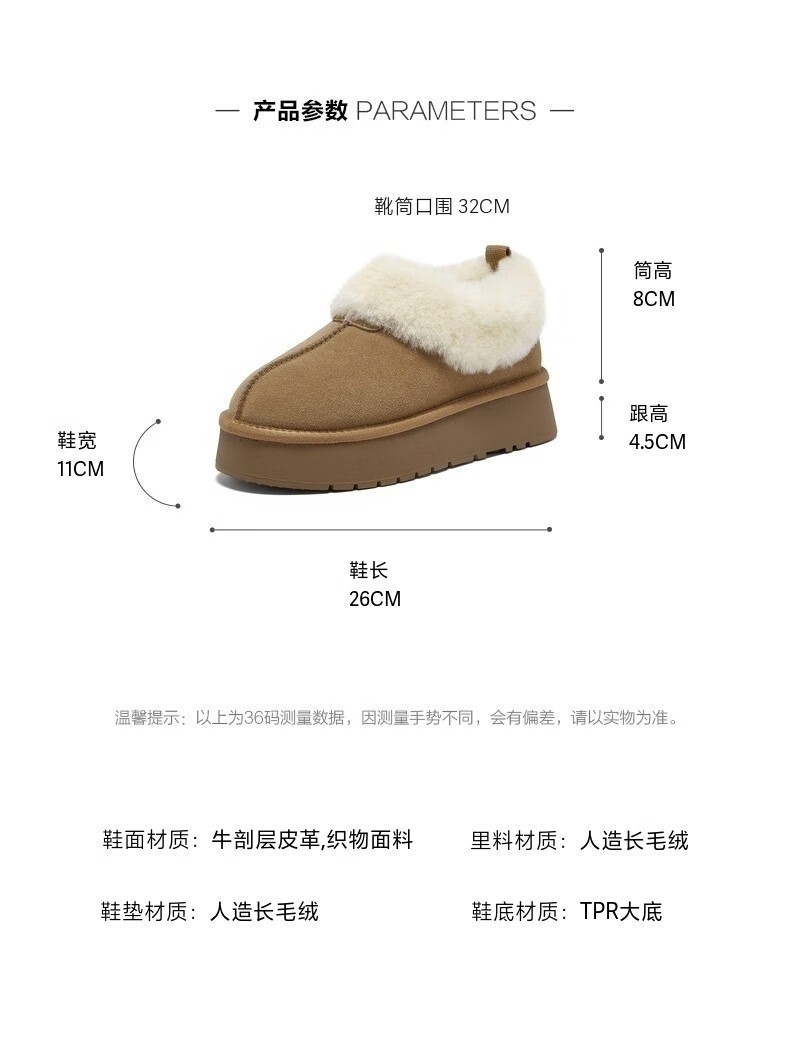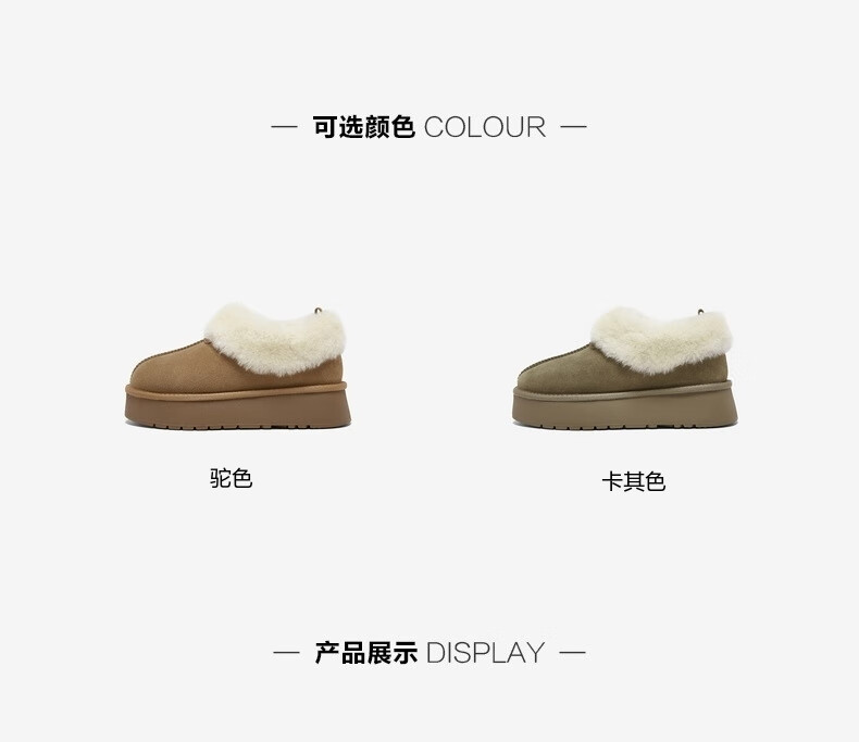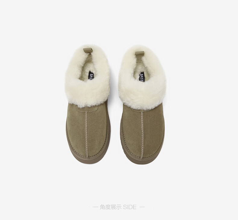 百思图2025冬季新款雪地靴时尚简约户外休闲厚底女短靴N8131DD5【预售】 卡其色 34