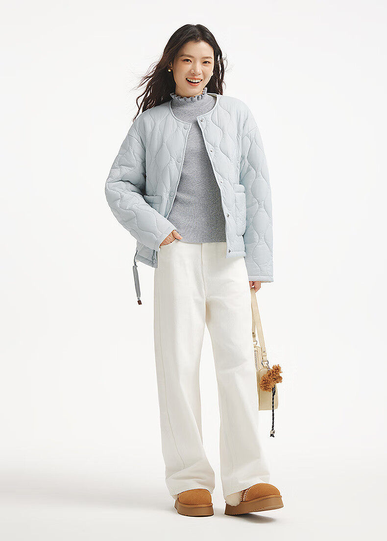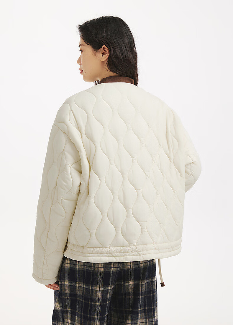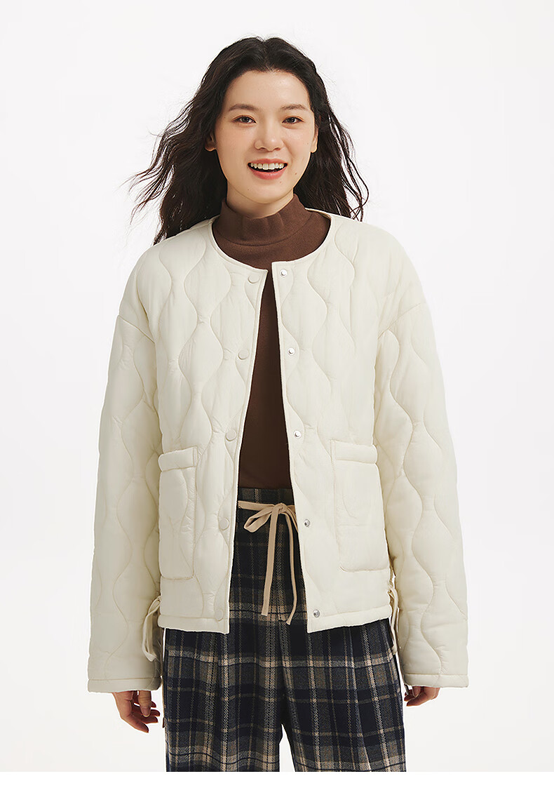 热风(Hotwind)女士棉服夹克外套上衣2025年冬季新款圆领小香风轻薄棉服外套 03米色 M