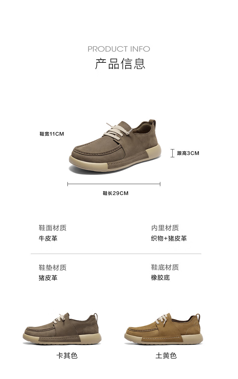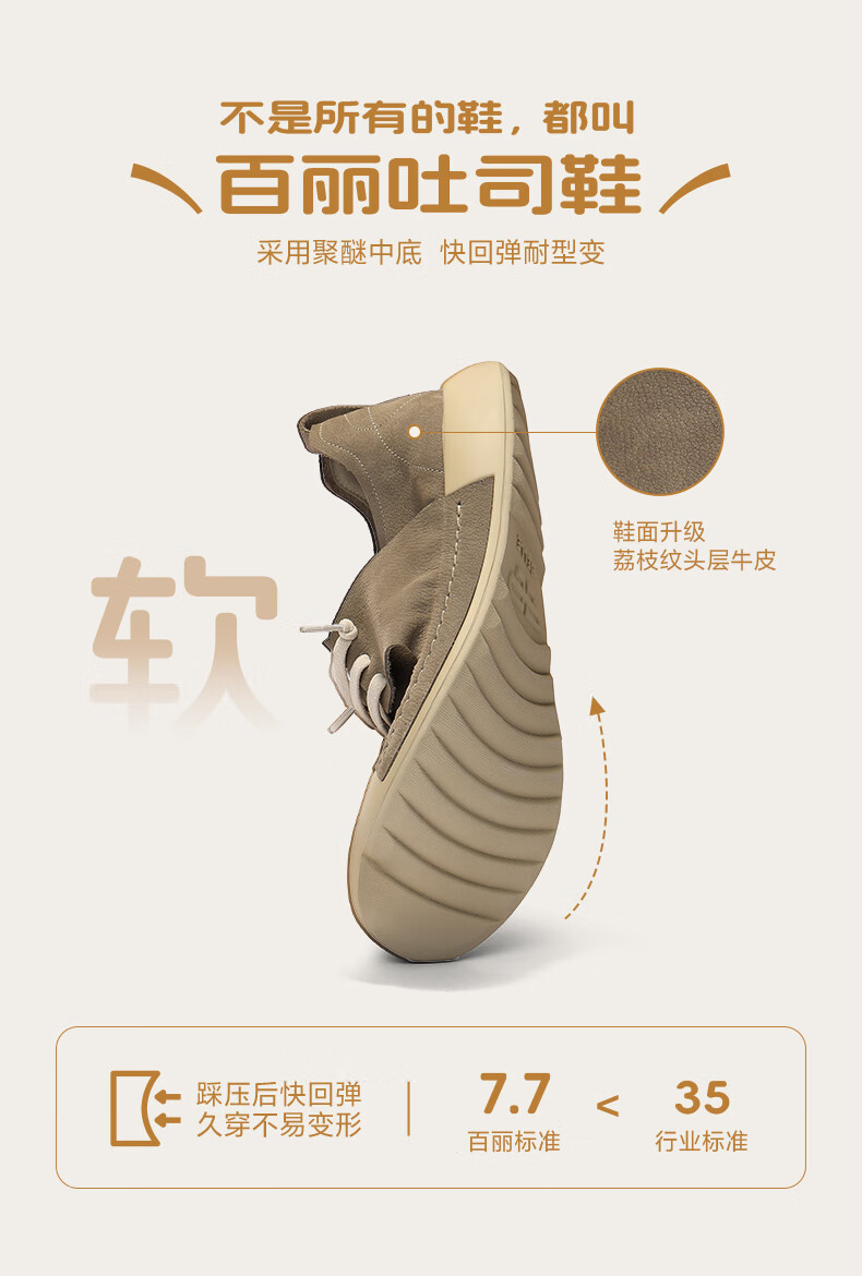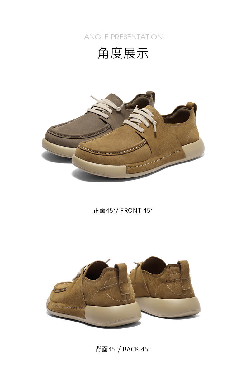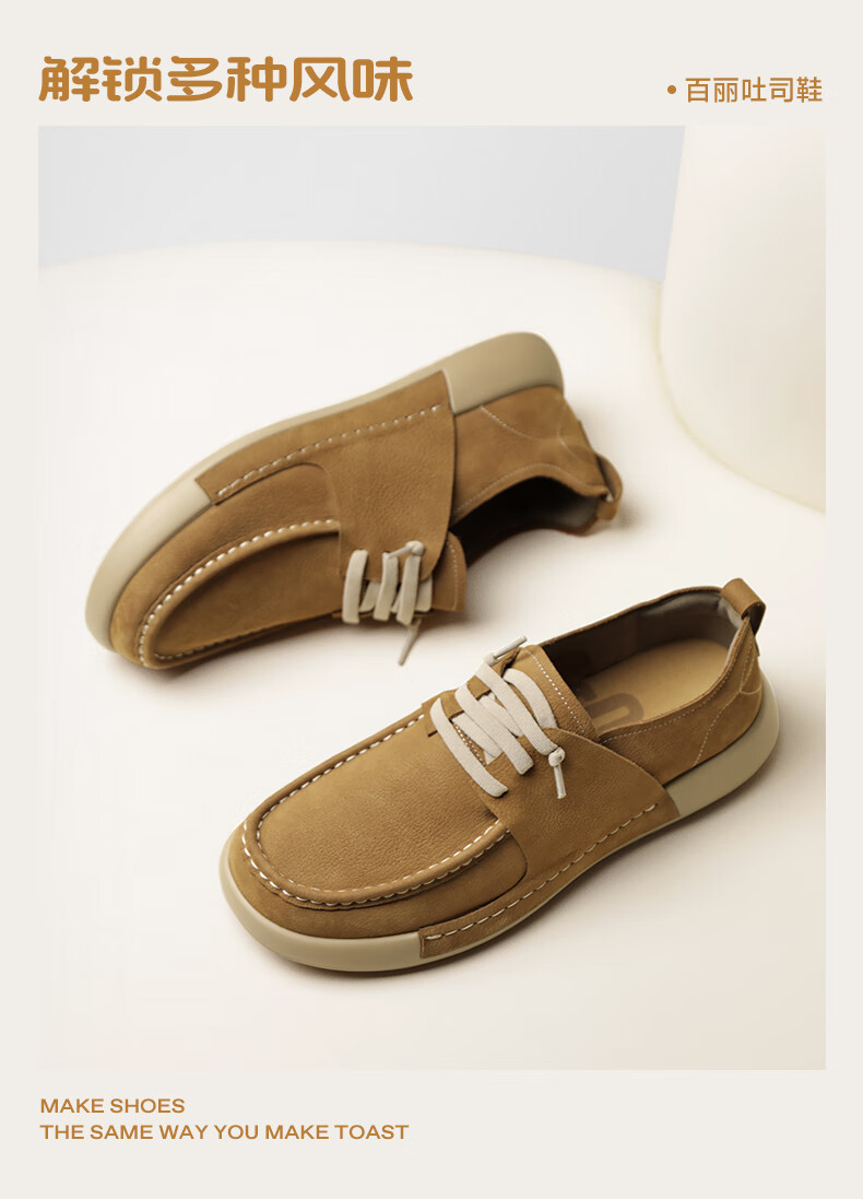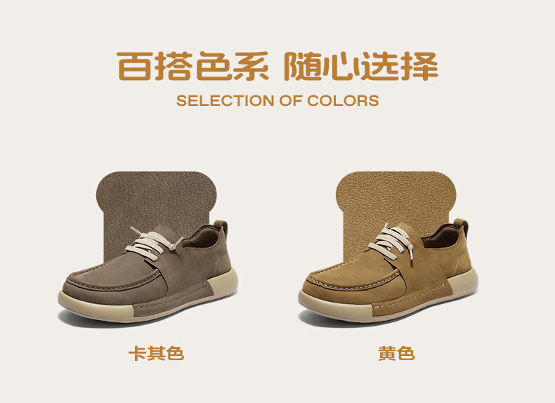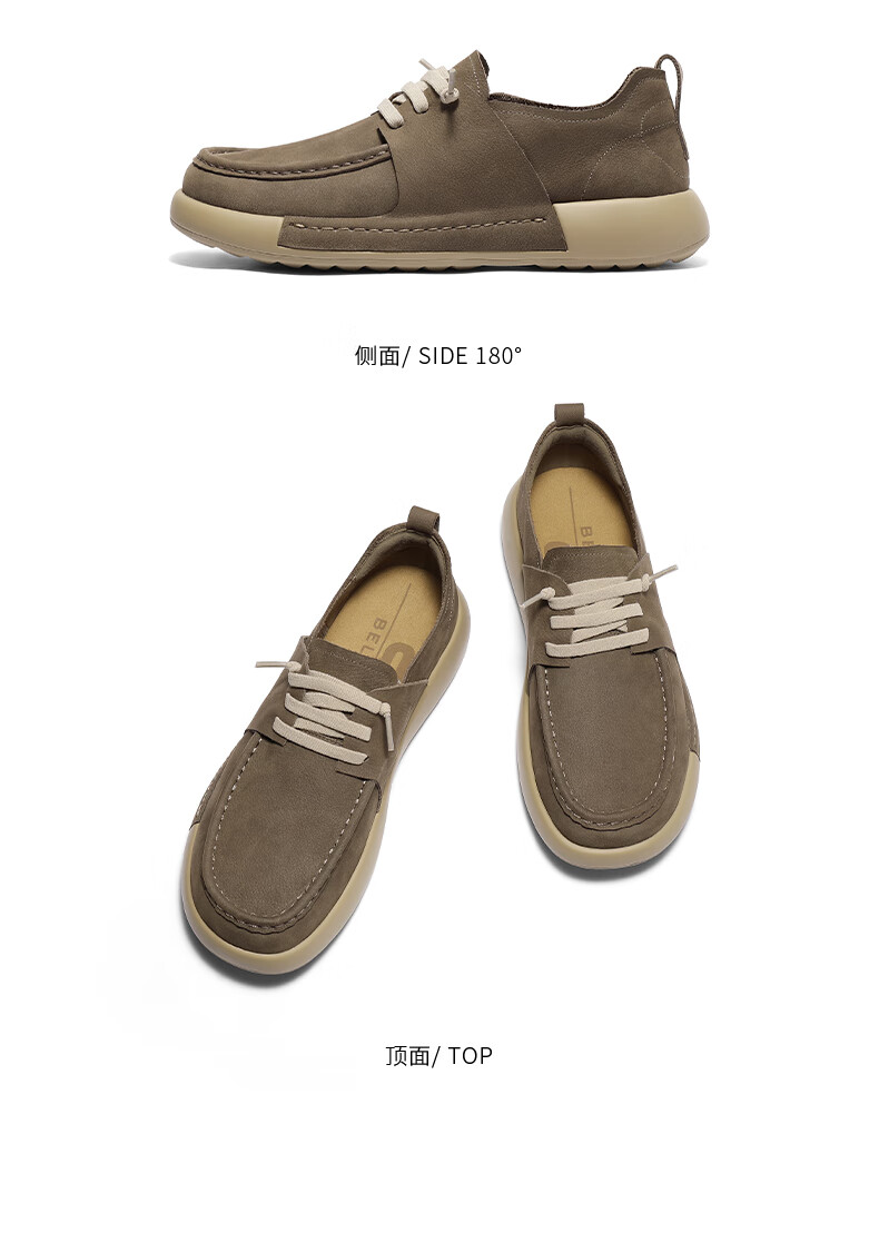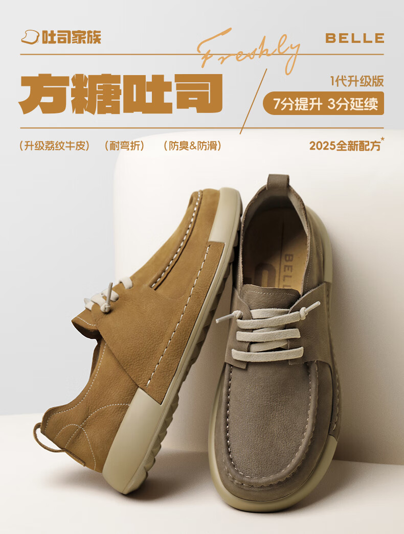 百丽简约舒适方糖吐司休闲鞋男25秋新牛皮革户外工装鞋8TZ01CM5 卡其色 38 (240mm)