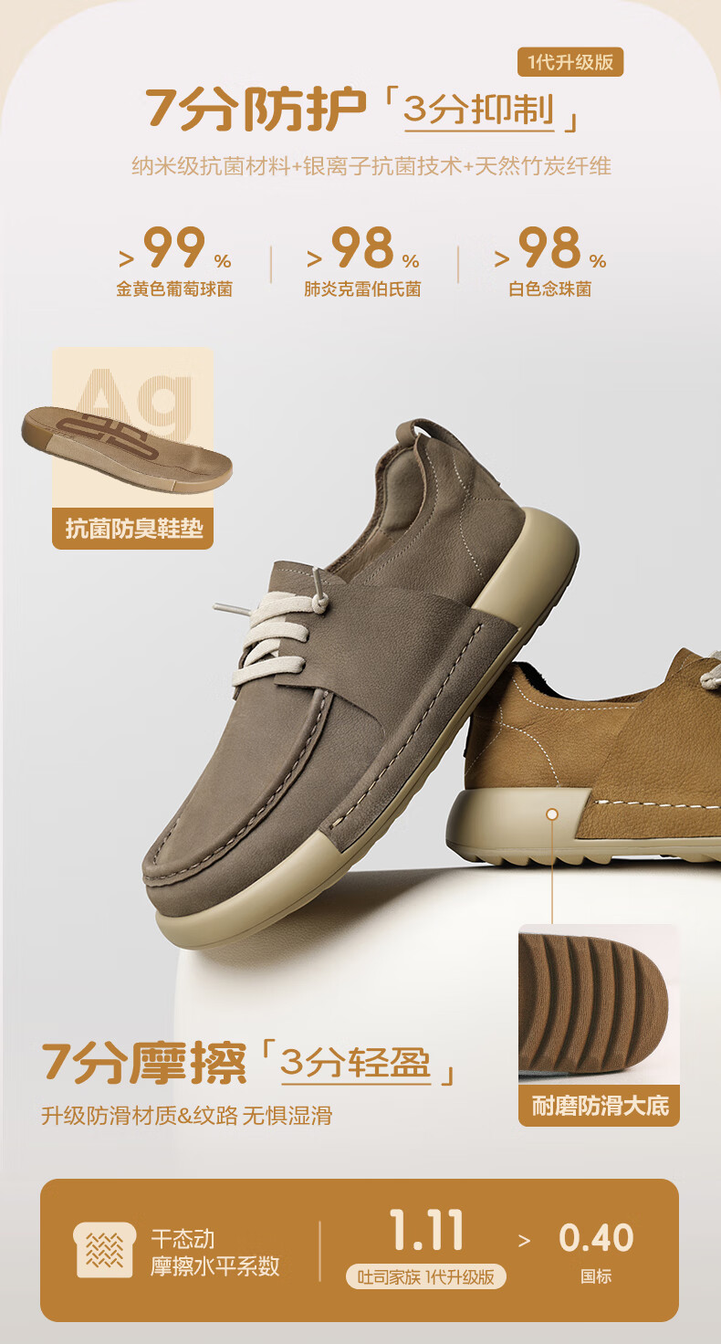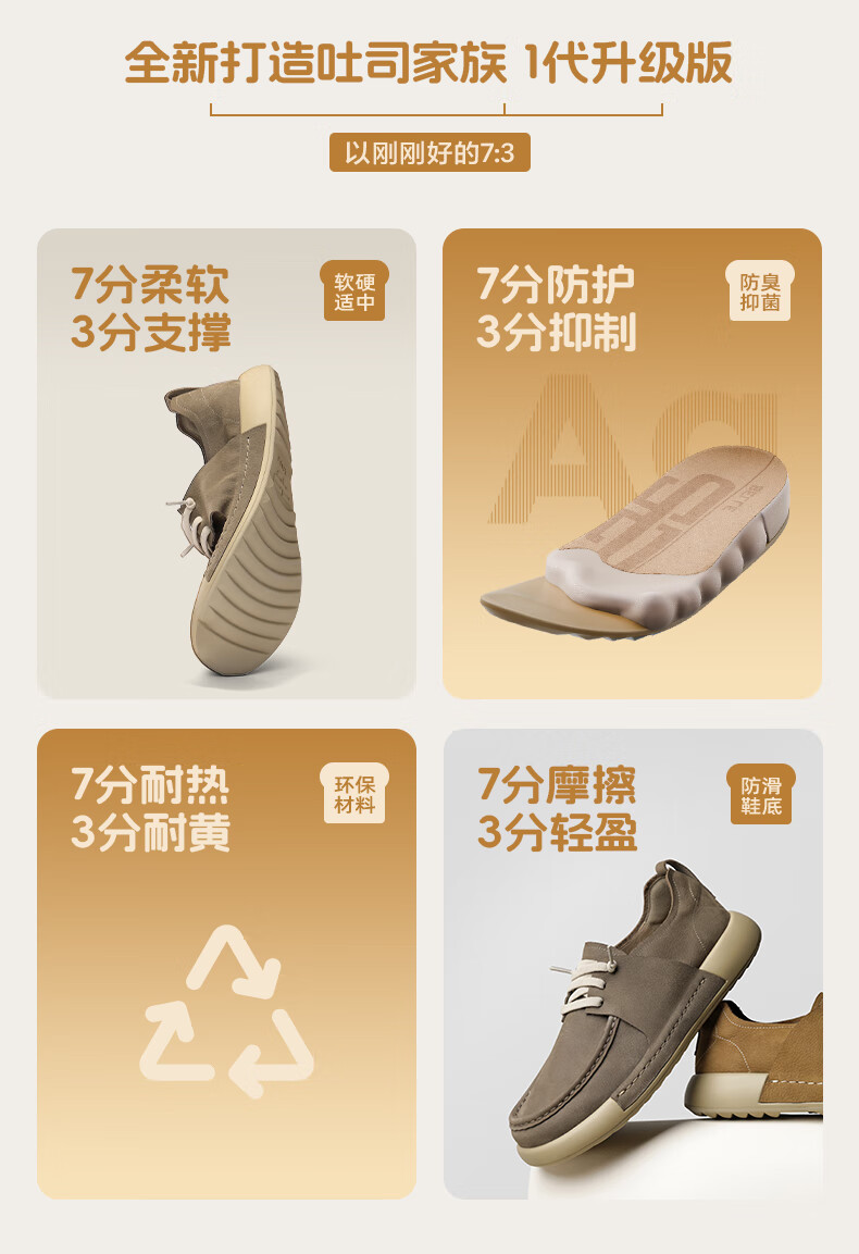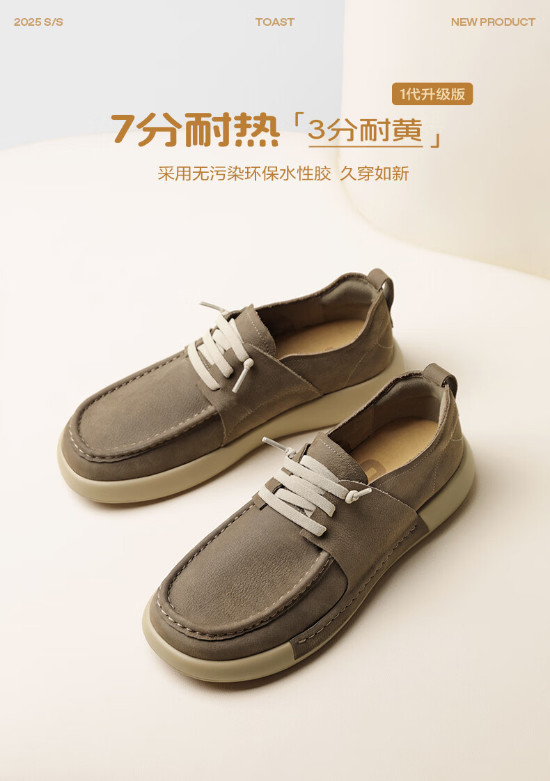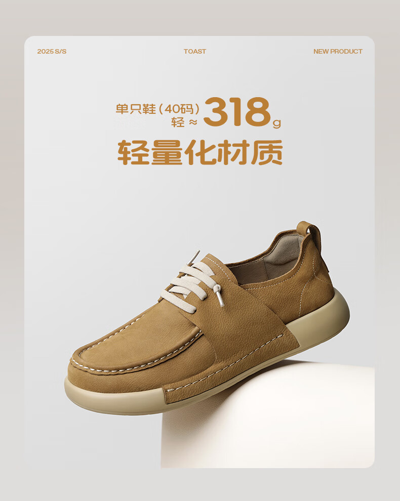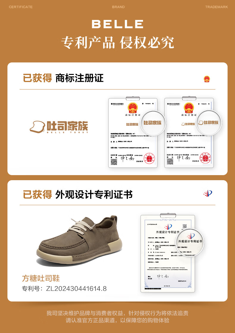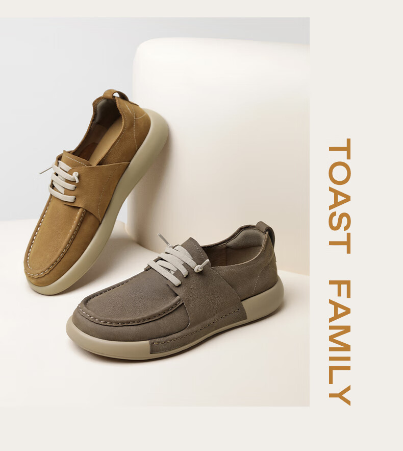 百丽简约舒适方糖吐司休闲鞋男25秋新牛皮革户外工装鞋8TZ01CM5 卡其色 38 (240mm)
