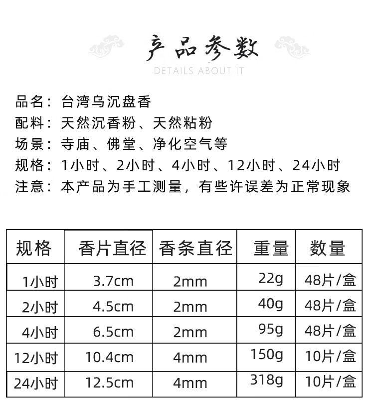 满堂香台湾乌沉香供佛檀香1-2小时盘香塔香水沉供佛香竹签香藏香 乌沉盘香(24小时) 其它