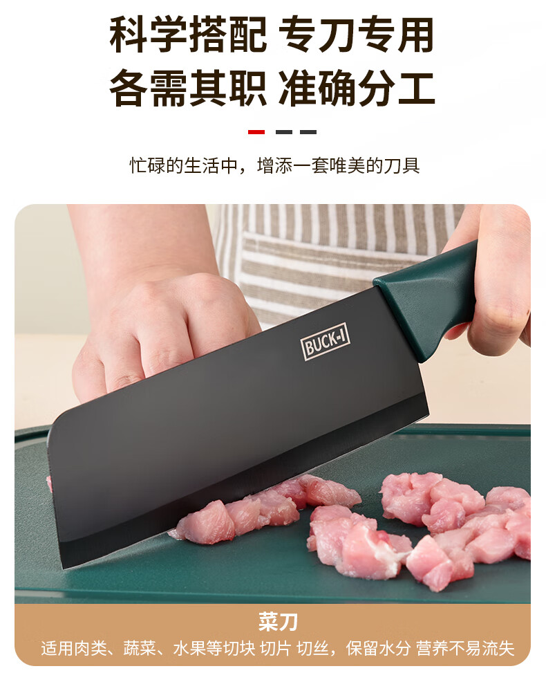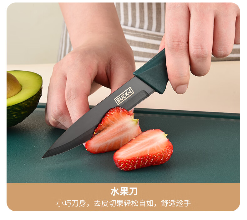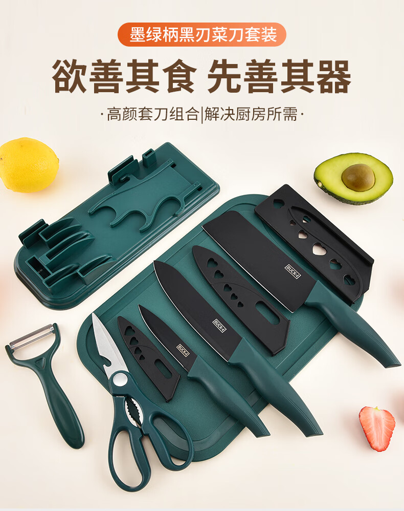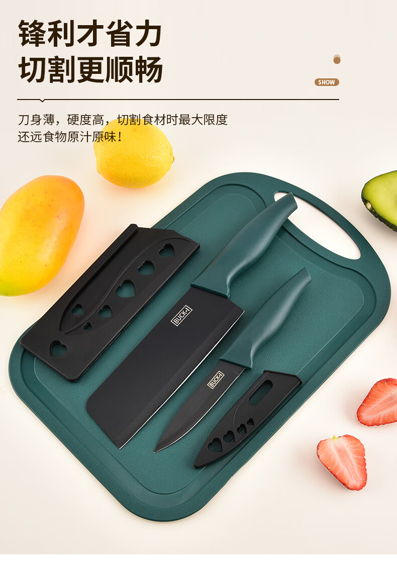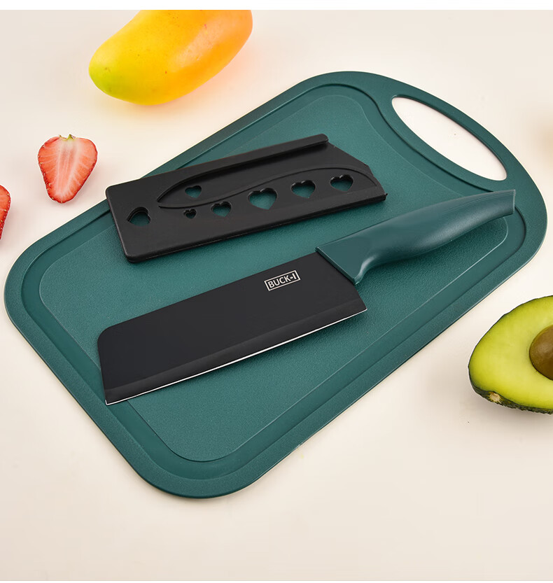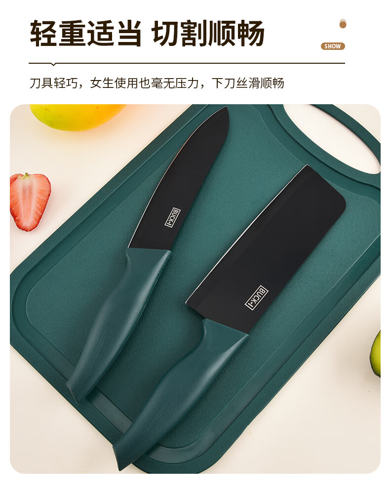 小菜刀家用厨房女士专用切菜刀切肉刀具小型水果刀菜板二合一套装 墨绿菜刀椭圆板3件套