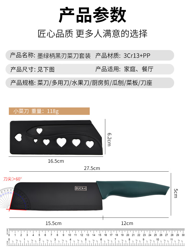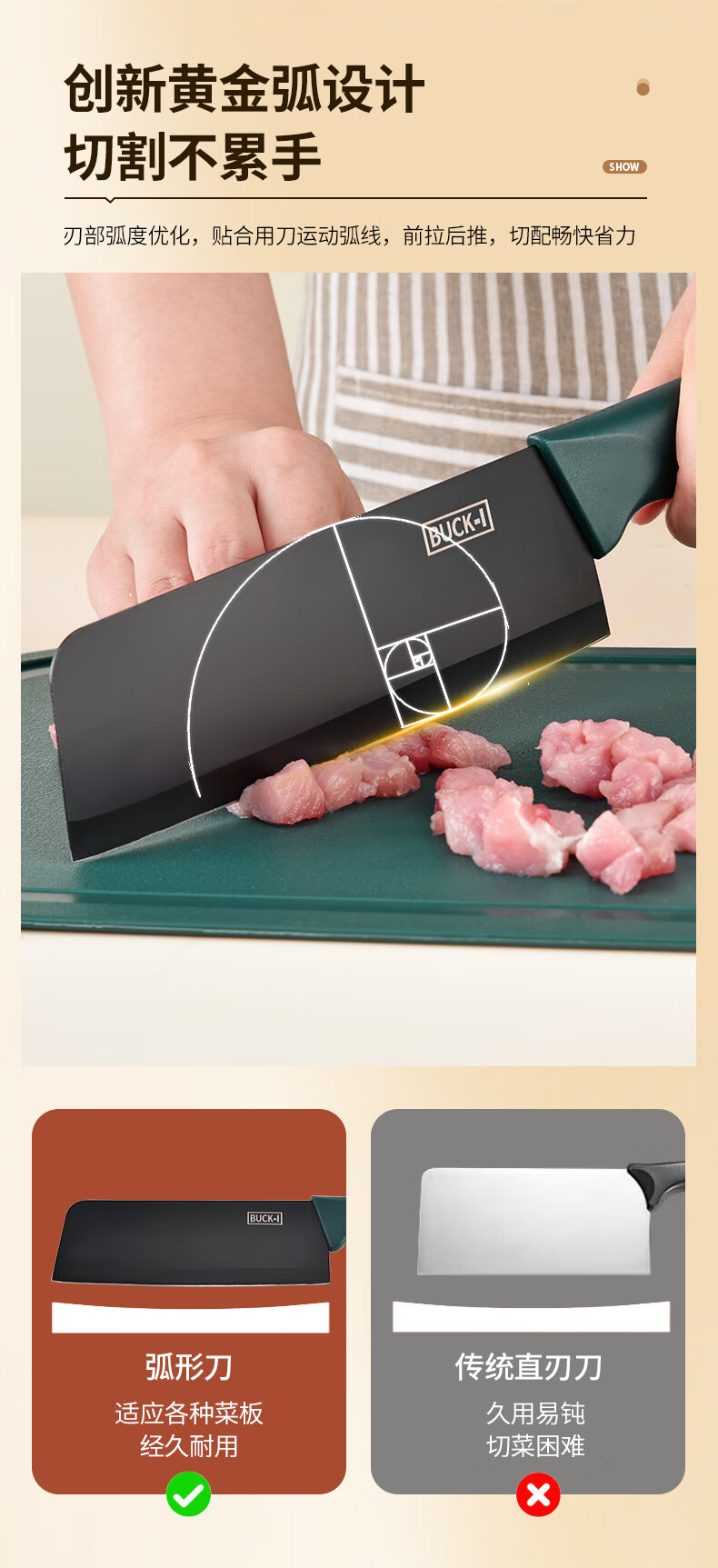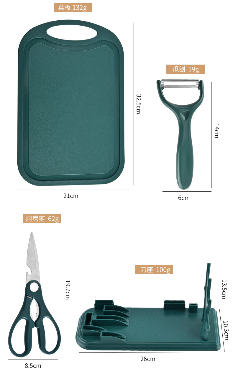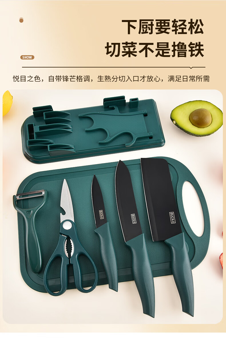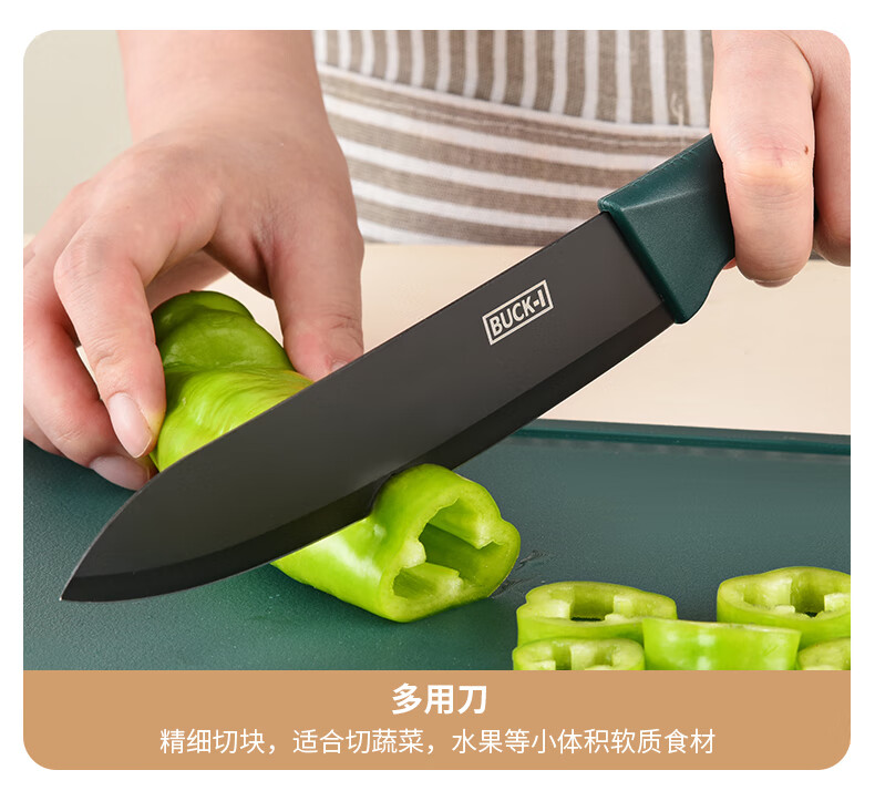小菜刀家用厨房女士专用切菜刀切肉刀具小型水果刀菜板二合一套装 墨绿菜刀椭圆板3件套
