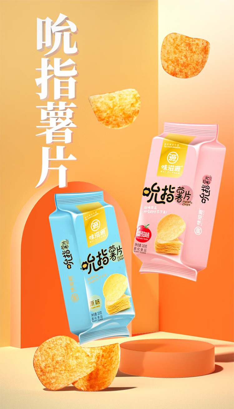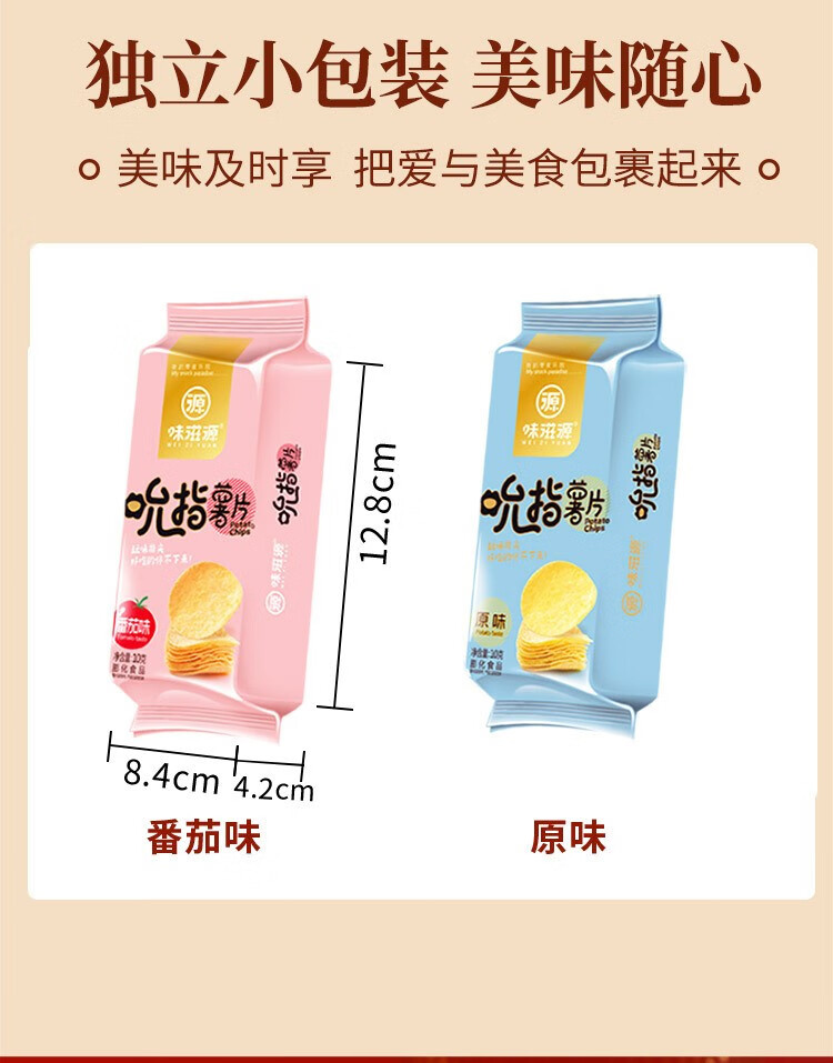 味滋源 吮指薯片山药薄片多口味薯片小包装办公室小吃休闲零食 吮指薯片10g -5袋 4件