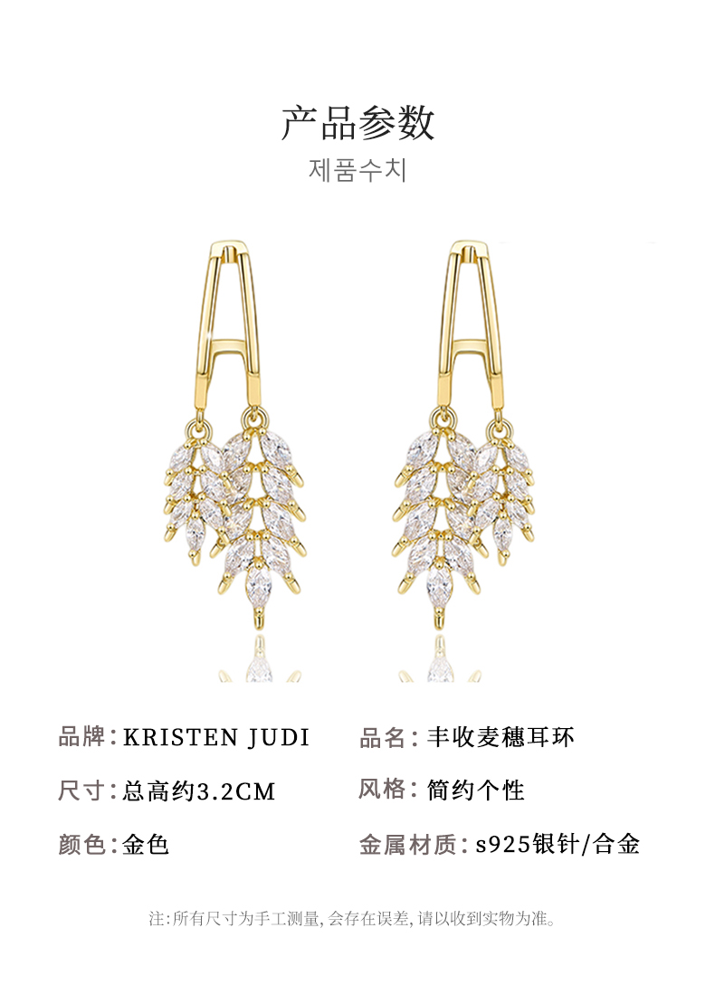 KRISTEN JUDI麦穗耳环女银针轻奢耳钉小众设计感潮精致耳饰送女友老婆生日礼物 金色耳环实用纪念日七夕礼物