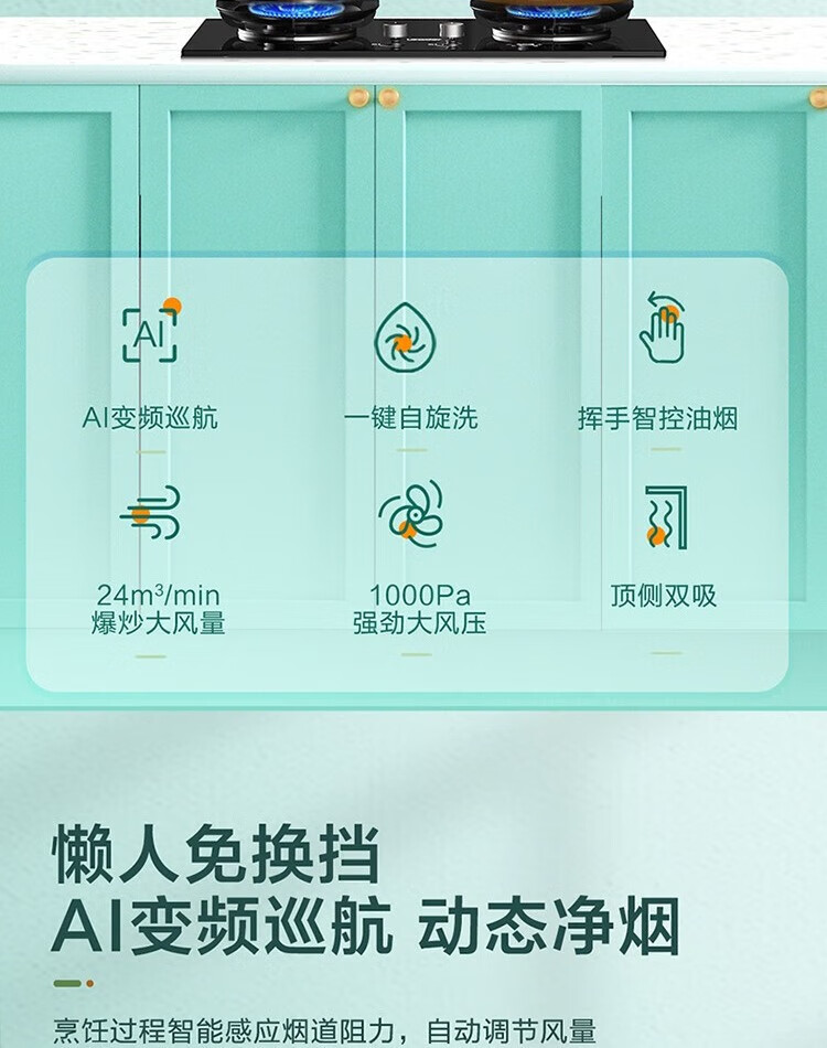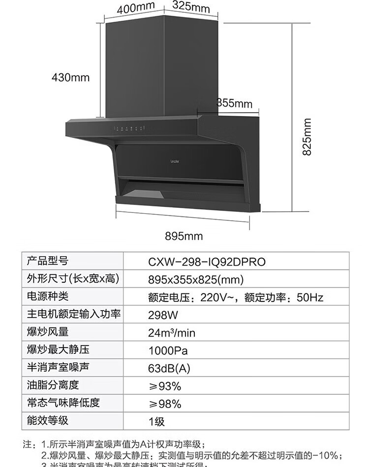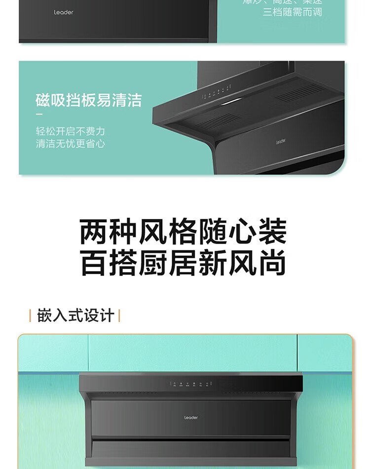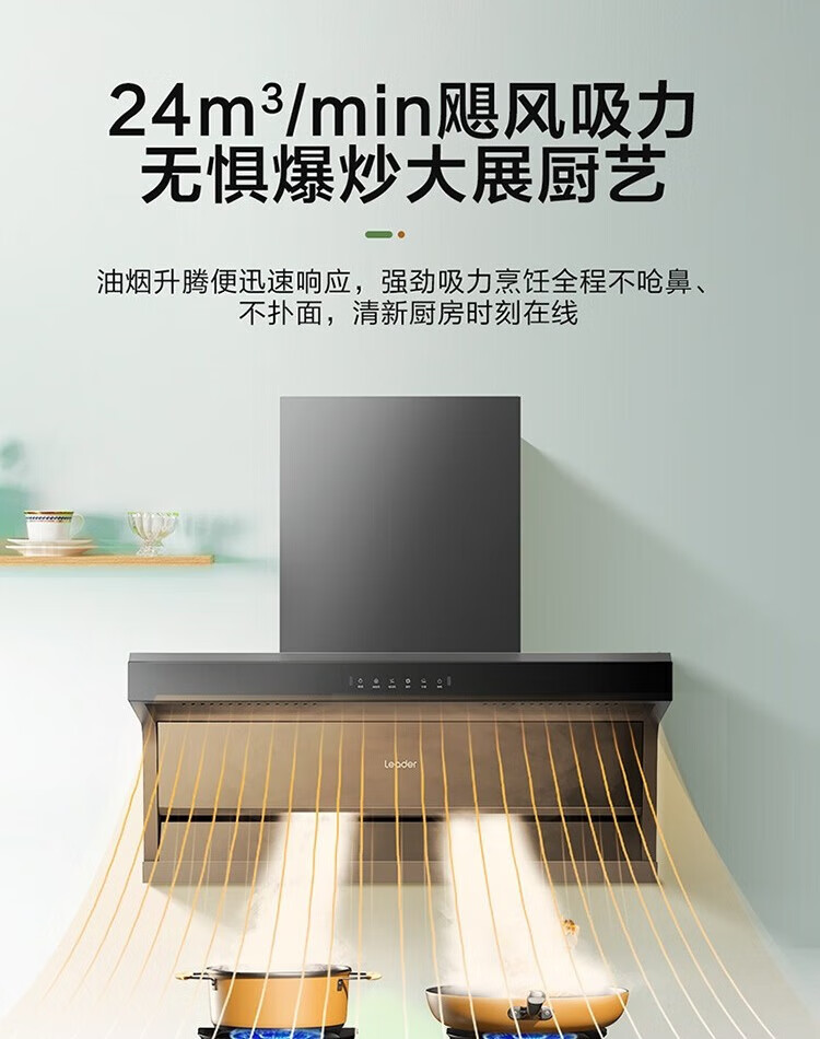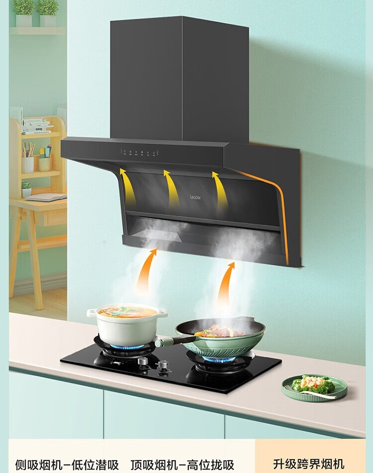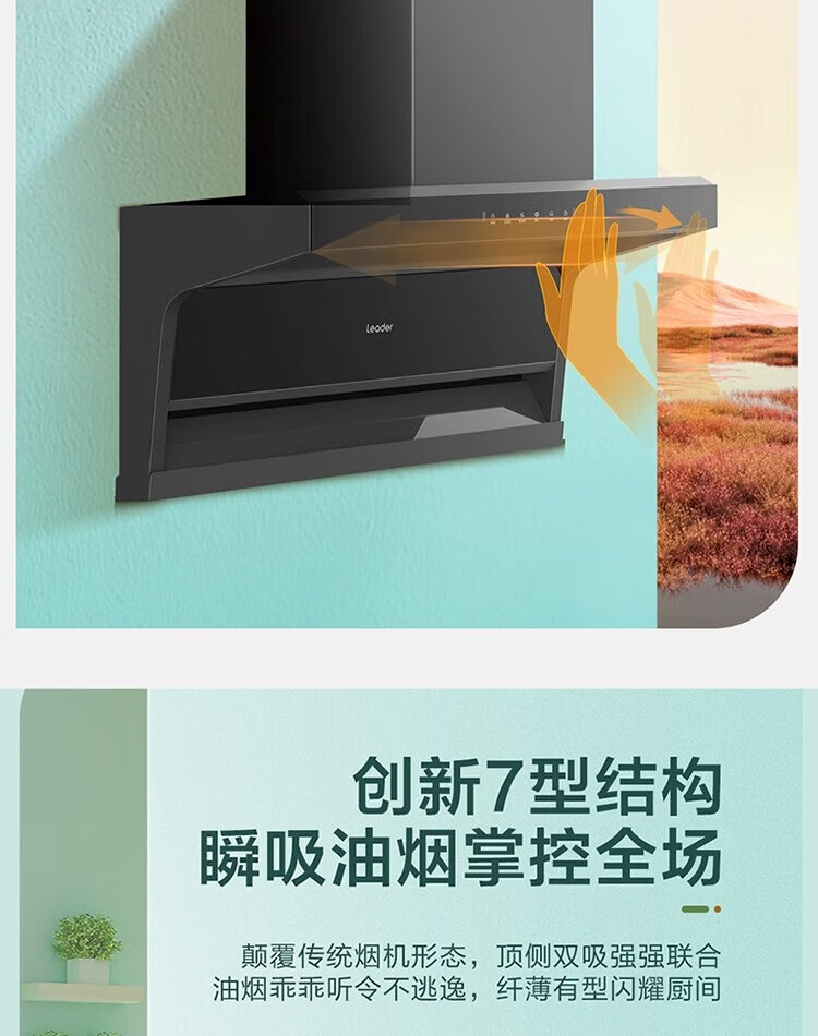 统帅(Leader)海尔智家出品【国补立减20%】抽油烟机懒人系列7字型顶侧双吸油烟机家用大吸力挥手智控一键自清洁 【92D单烟机】480PA风压+热熔高温自清洁