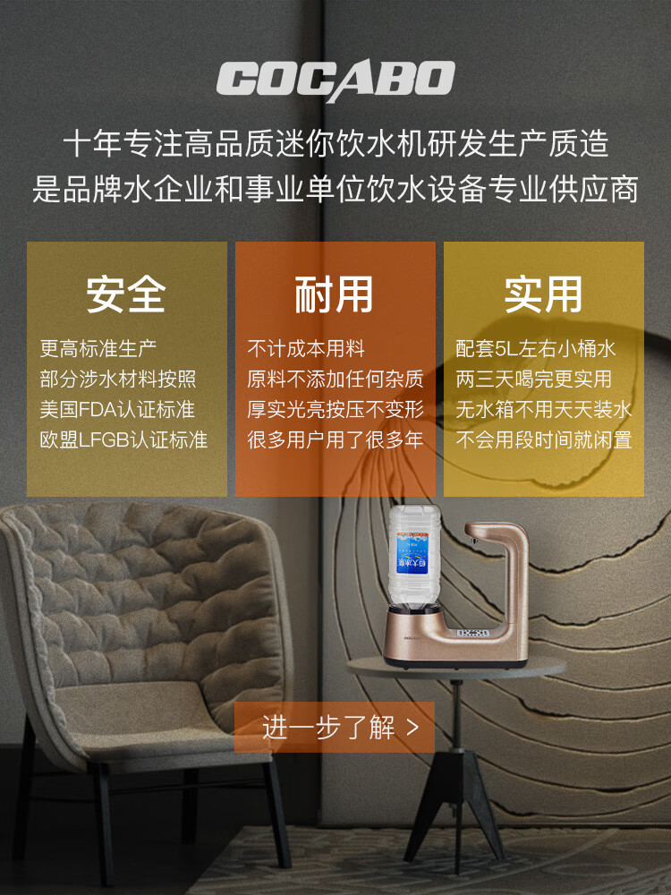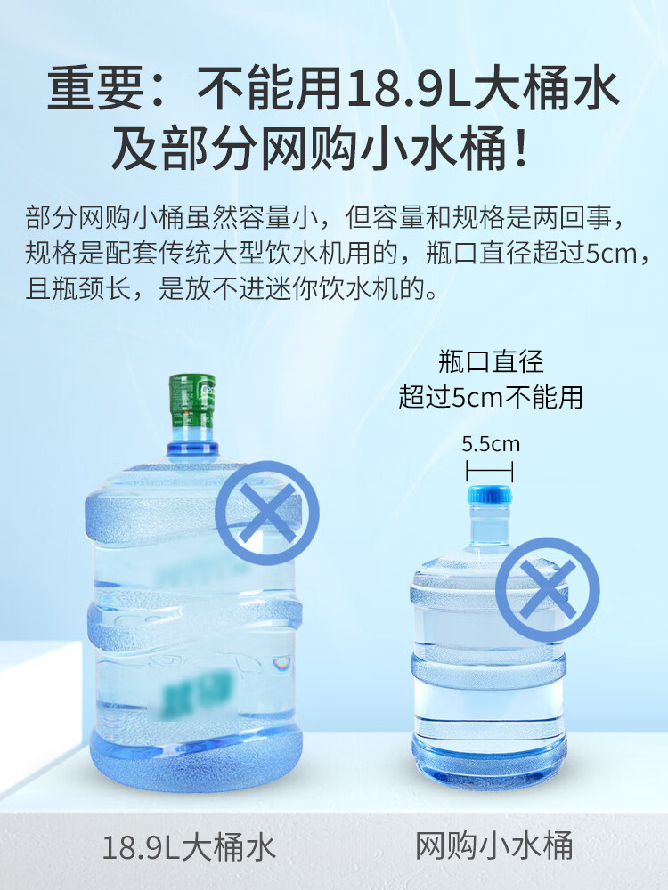 泉佳宝(COCABO)饮水机小型迷你家用办公室学生宿舍寝室儿童卡通台式桌面可加热烧开 5L左右小桶水专用 CYH-1203-A 蓝色(自动加热) 温热型