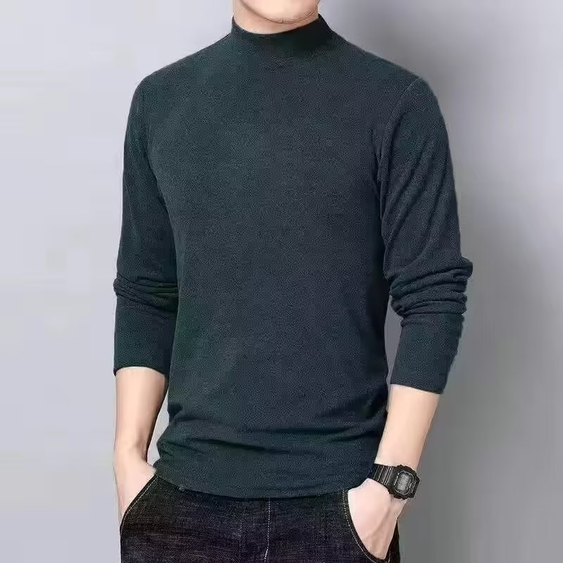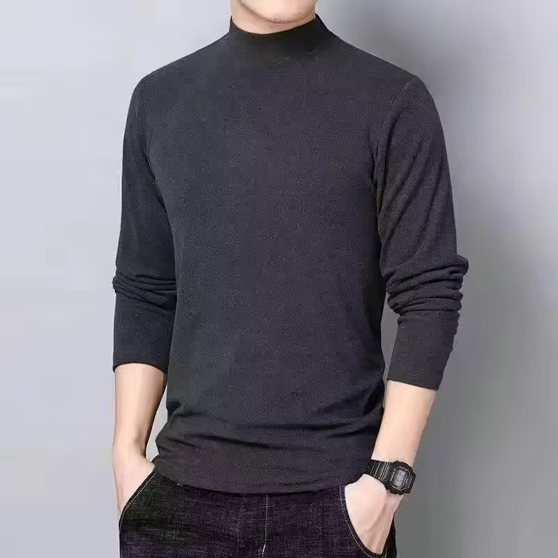 燠阳2025秋冬季德绒保暖长袖t恤男中青年休闲装半高领运动打底衫百搭 半高领黑色 2XL 【130-145斤】