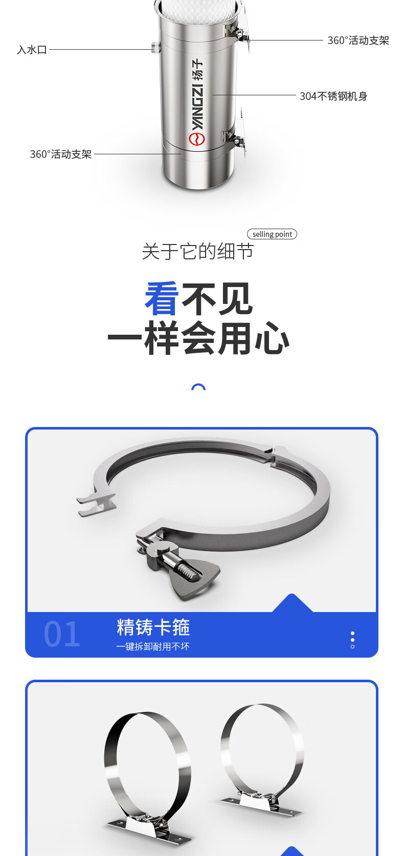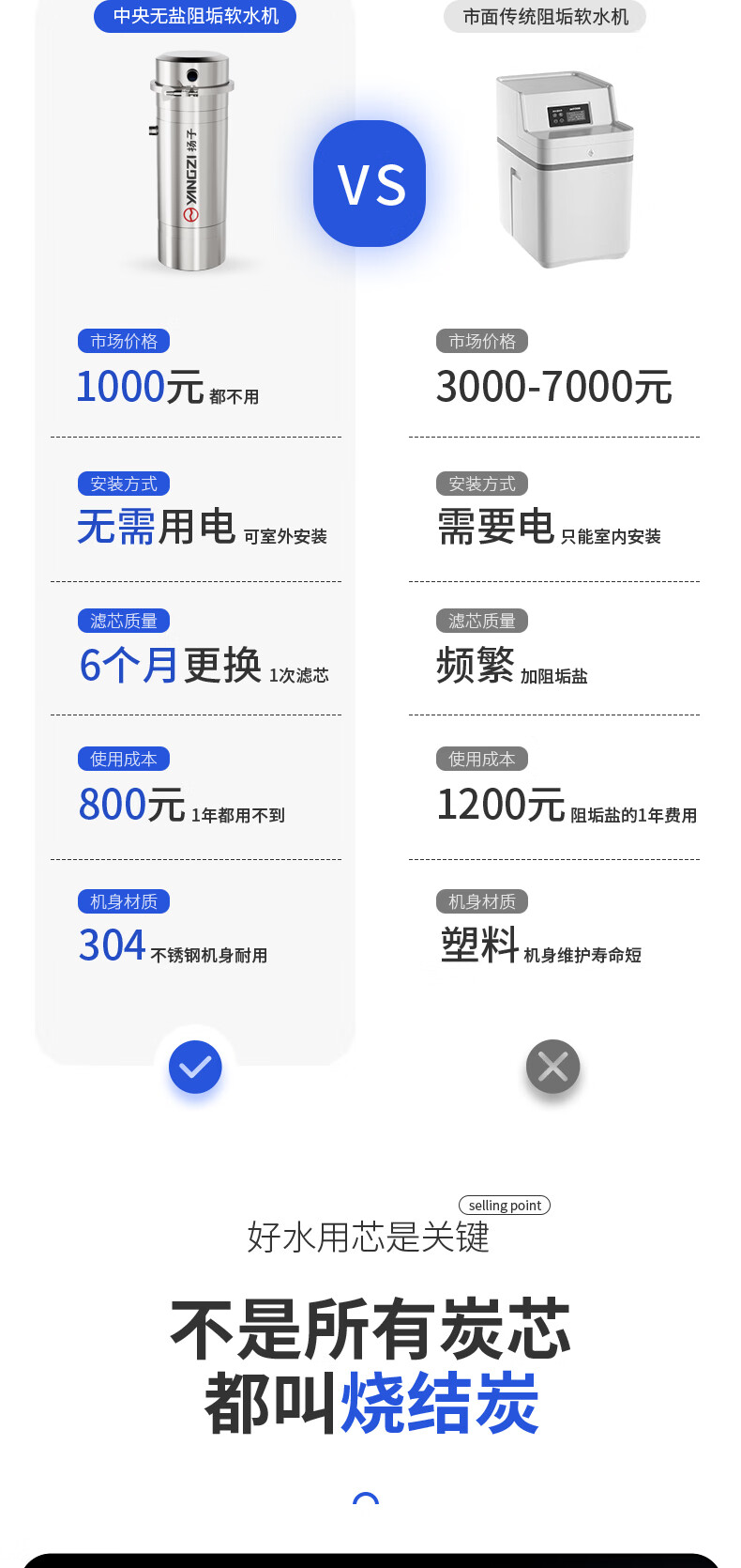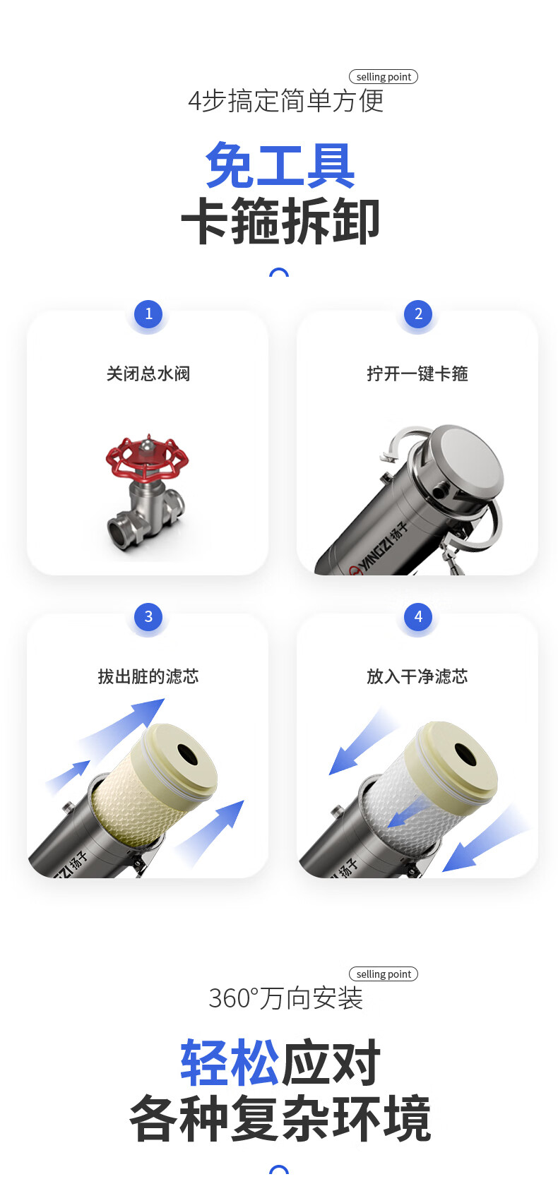 扬子大流量阻水垢水碱无盐软水机全屋中央净水器家用不锈钢直饮超滤净水机厨下式自来水前置过滤器 5吨/1寸万向【顶配特厚阻垢软水款】 304不锈钢 接口PPR版