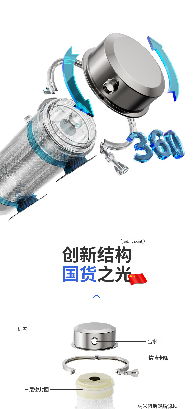 远大健科rurua水龙头净水器家用滤水器厨房卫生间两用可清洗滤芯前置净水机自来水过滤器 一机一芯
