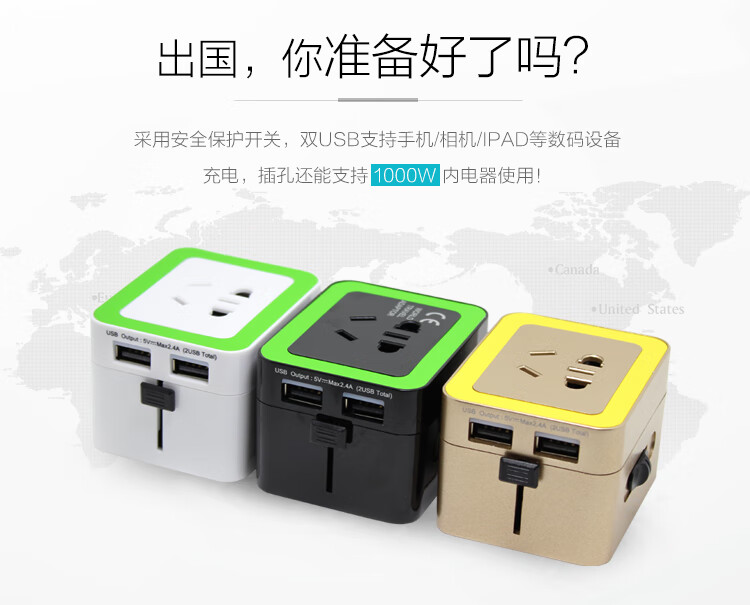 wonplug英标欧标转换插头出国旅行充电器全球通用转换插头出国旅行插座/国际万能旅行转换器/英标欧美澳标 白色