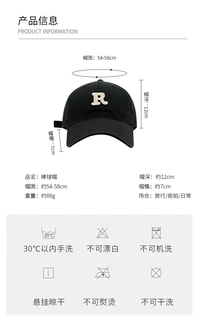【甄选好物】R标字母棒球帽韩版ins男女小众大头围运动防晒帽子百 605CHT米色1977棒球帽 均码