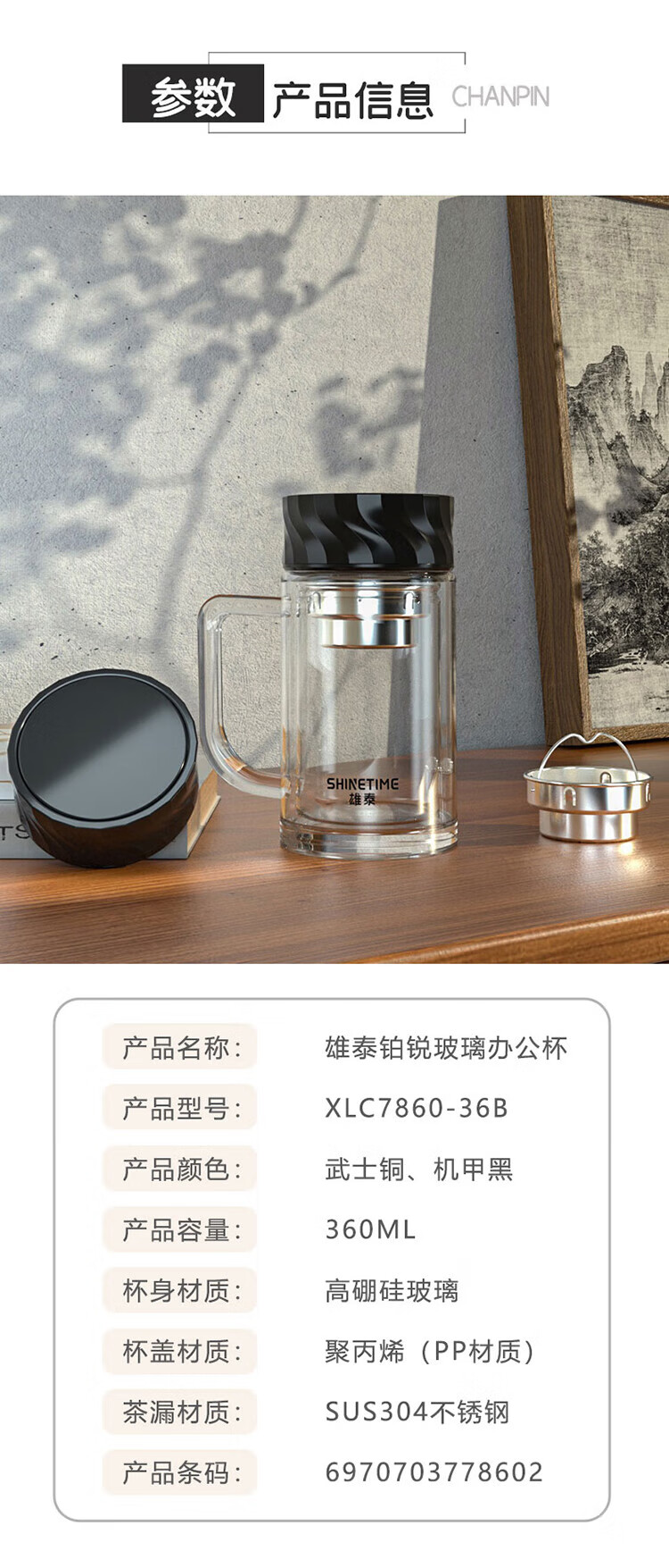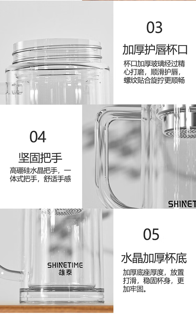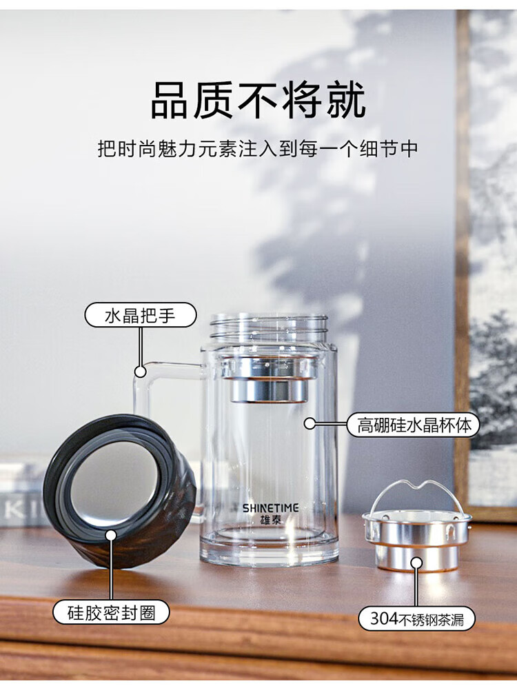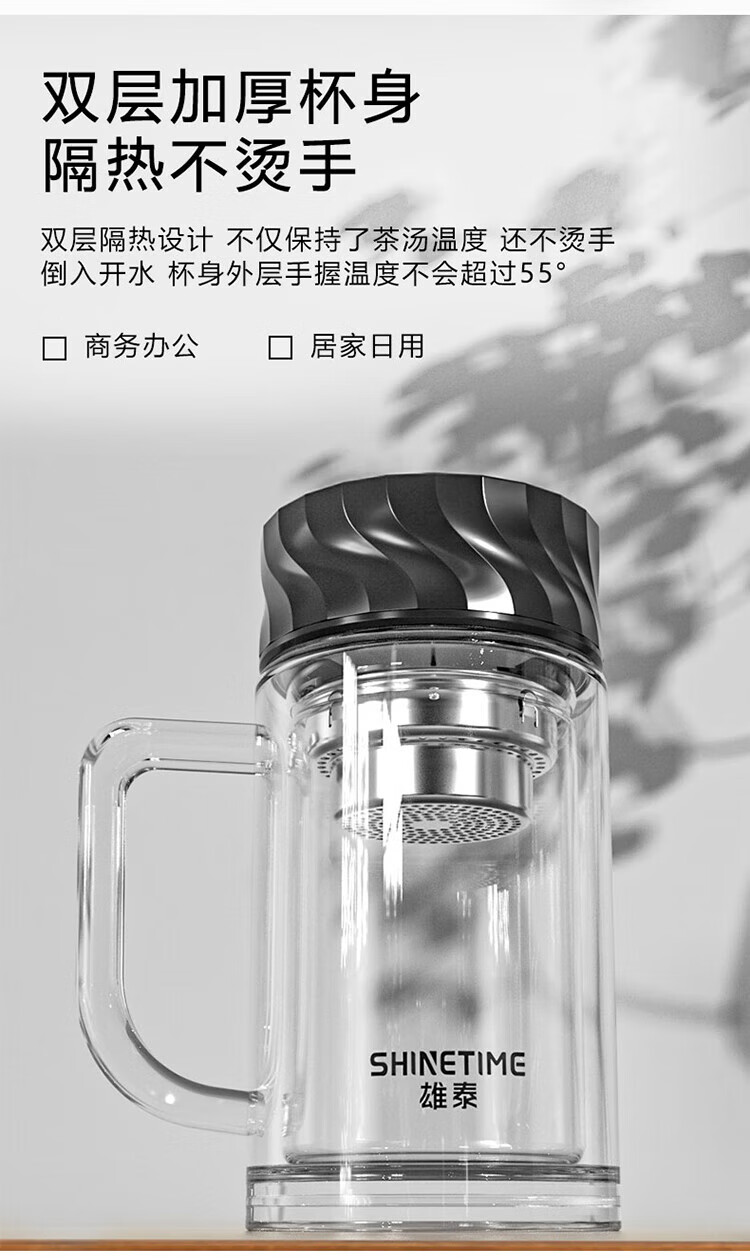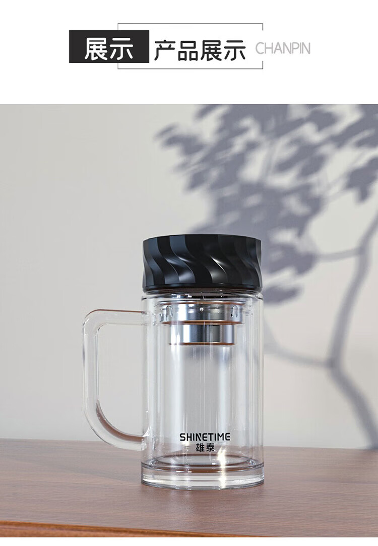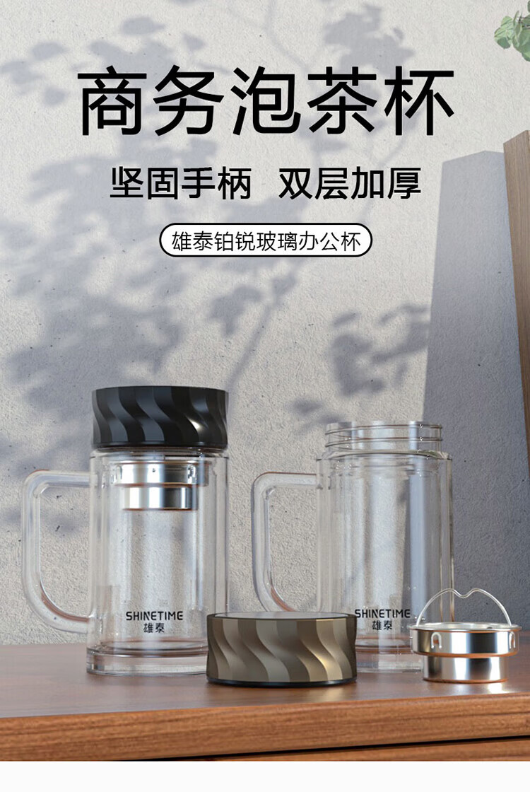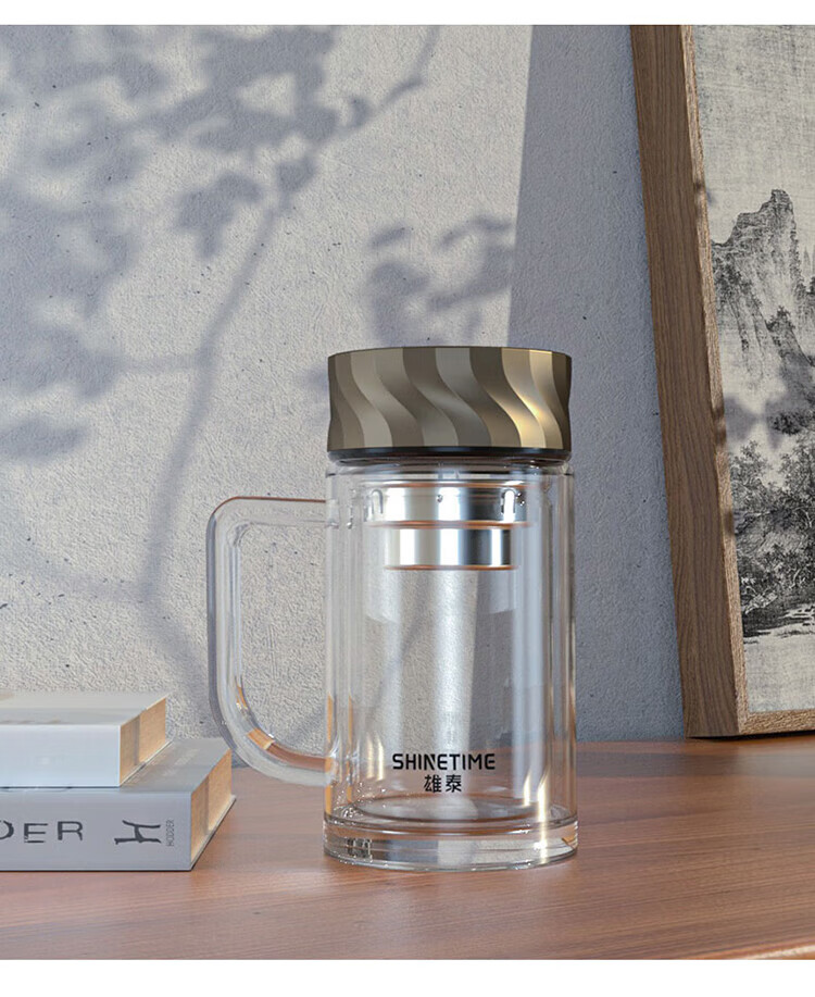 膳魔师(THERMOS)双层玻璃杯带把手茶水分离泡茶杯男士办公商务防爆防烫水杯360ml 金色 360ml