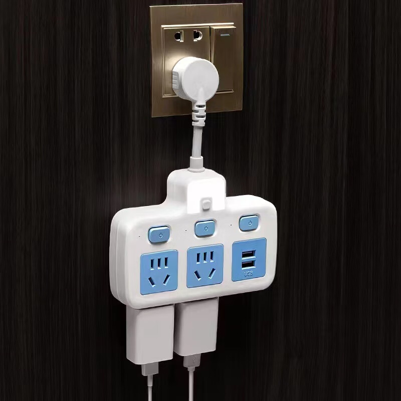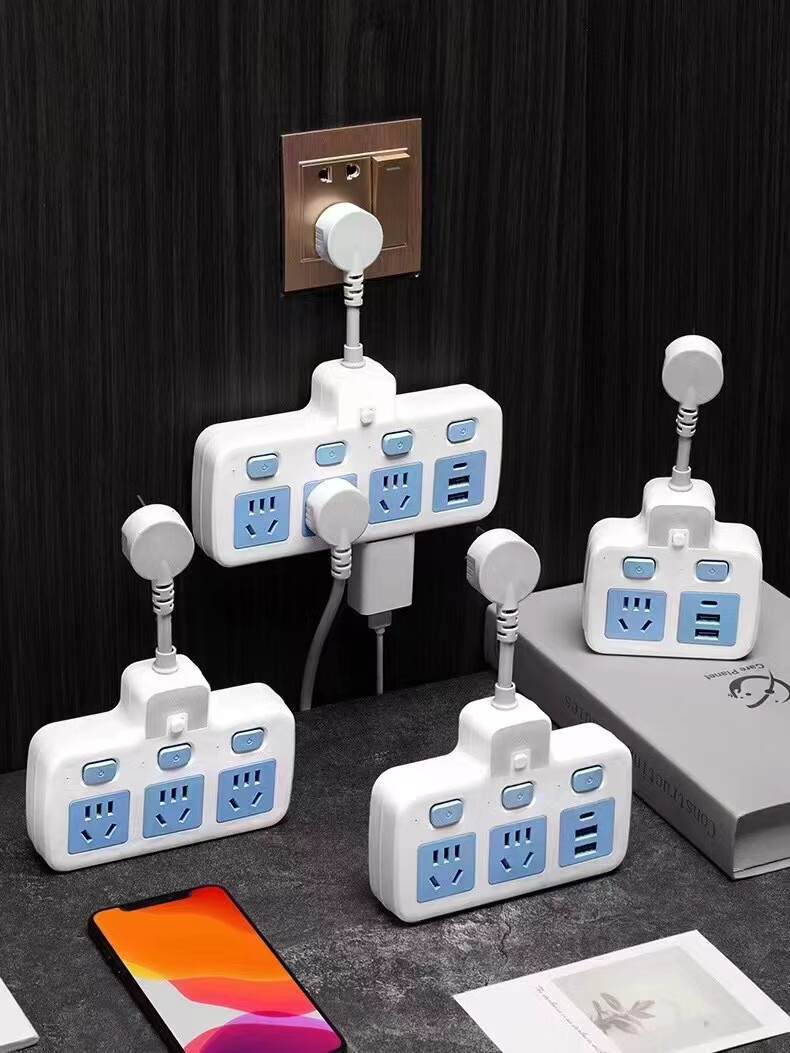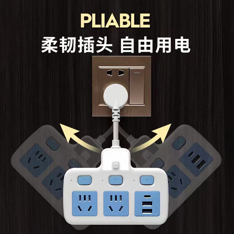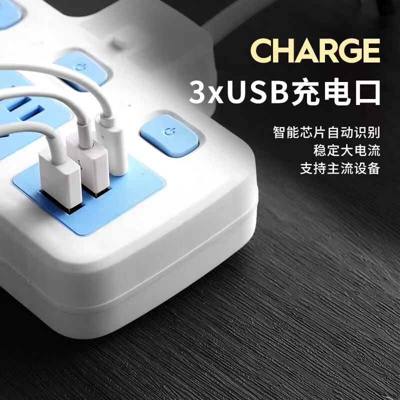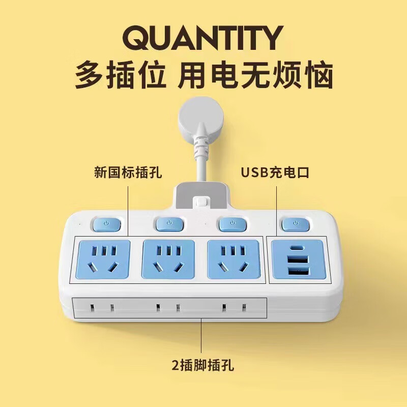 山头林村公牛(BULL)同款插座扩展转换器短线一转多用插头 带USB夜灯电源 D2一转2开关普通14孔