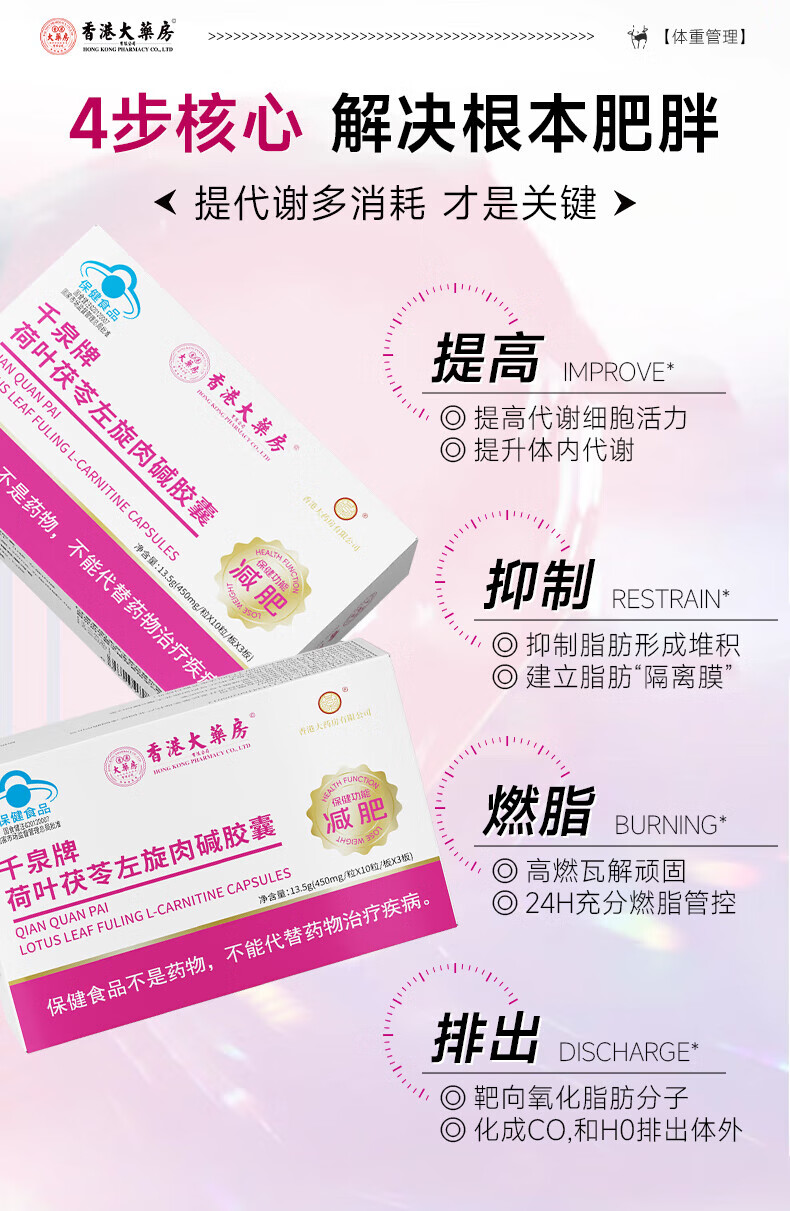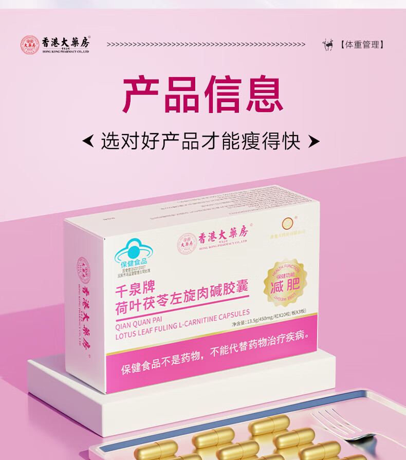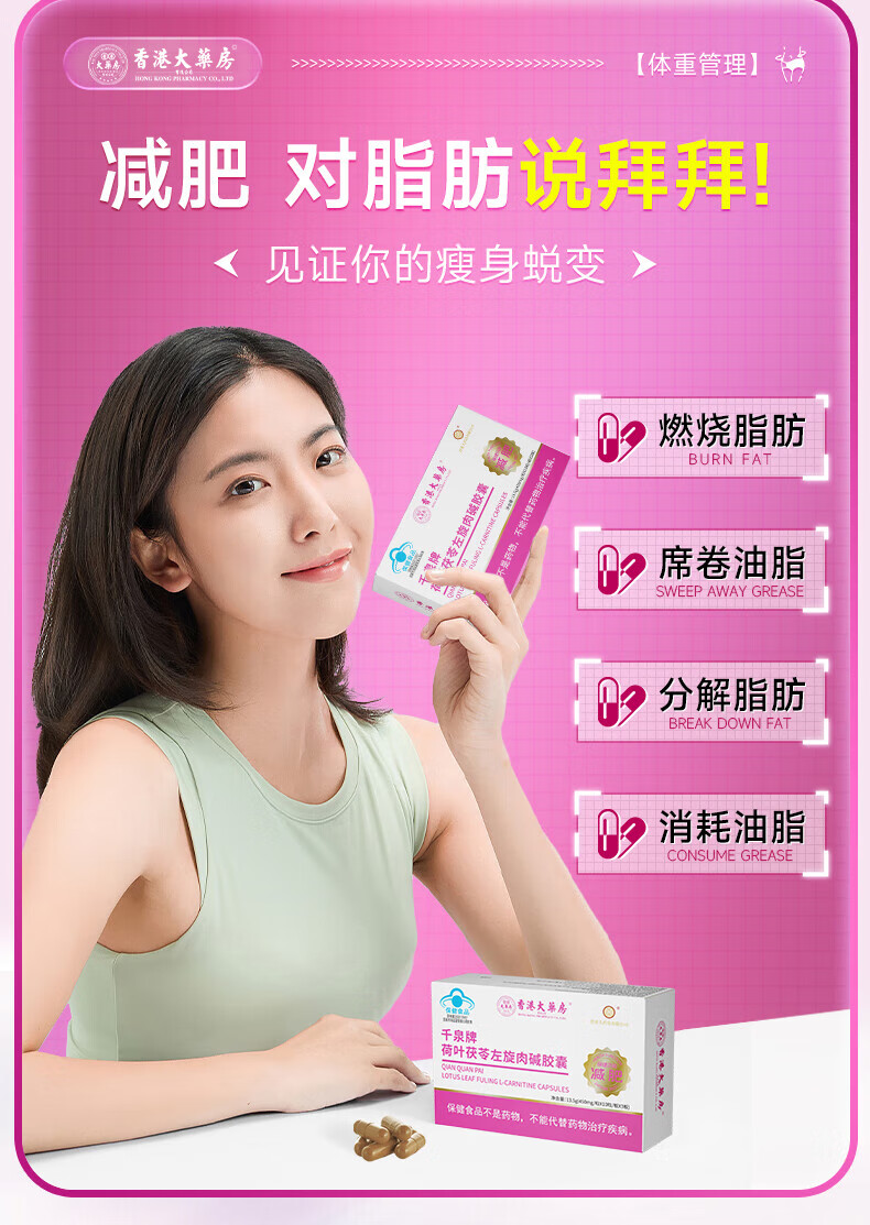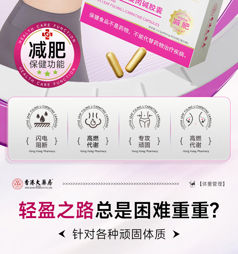 香港大药房左旋肉碱蓝帽减肥胶囊燃脂减脂塑身男女通用科学管理健康体脂控制 15盒超值家庭装【家庭分享,无减肥烦恼】