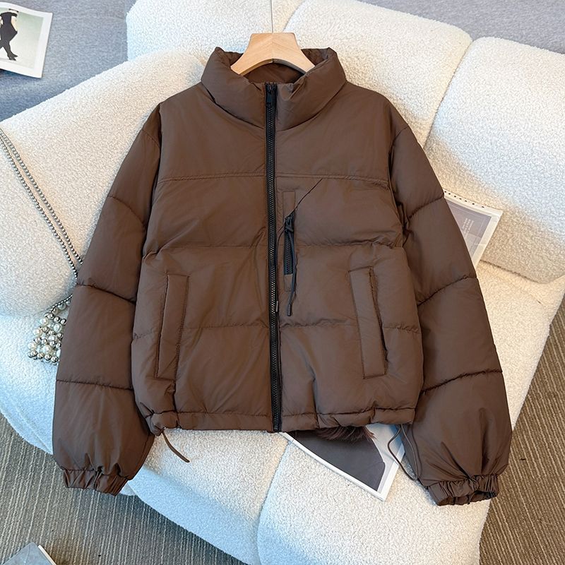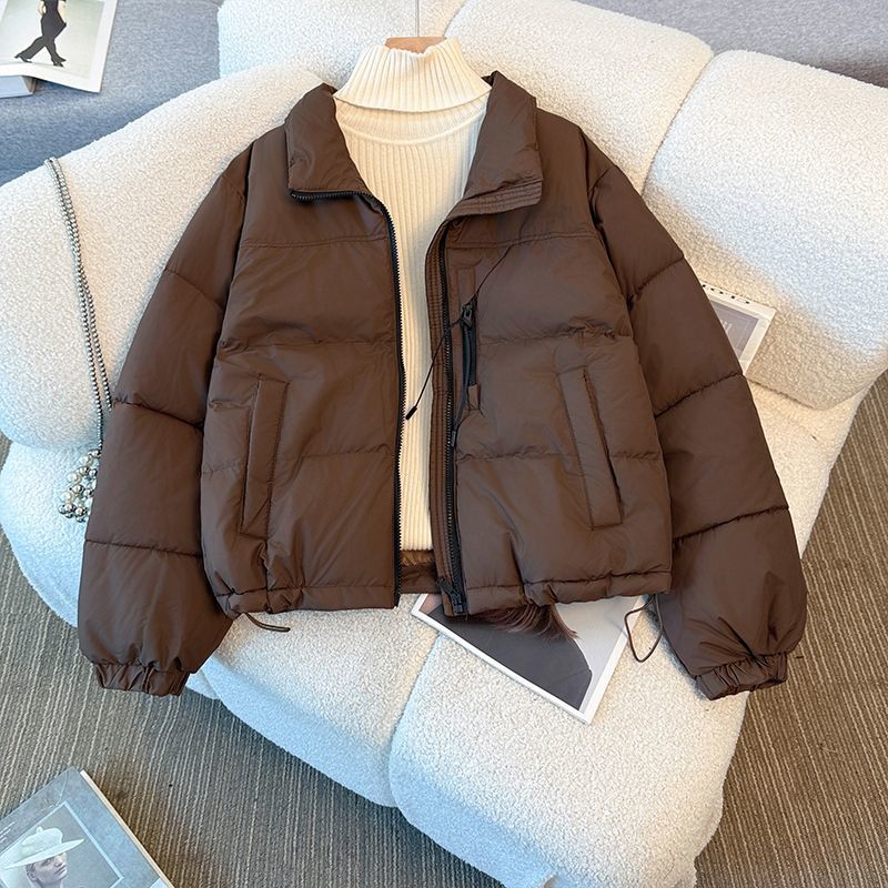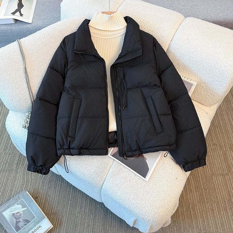 子牧棉麻2025冬装 女百搭立领棉袄棉衣短款加厚宽松显瘦棉服外套0507 黑色 L (建议115-125斤)