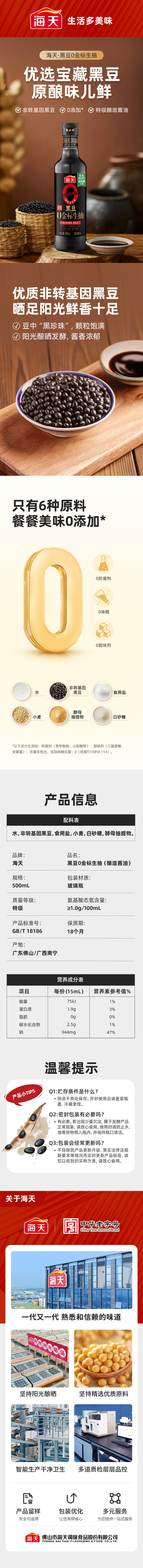 海天酱油 黑豆0添加金标生抽500mL 零添加酱油特级提鲜炒菜调味品 黑豆0金标生抽500mL*1