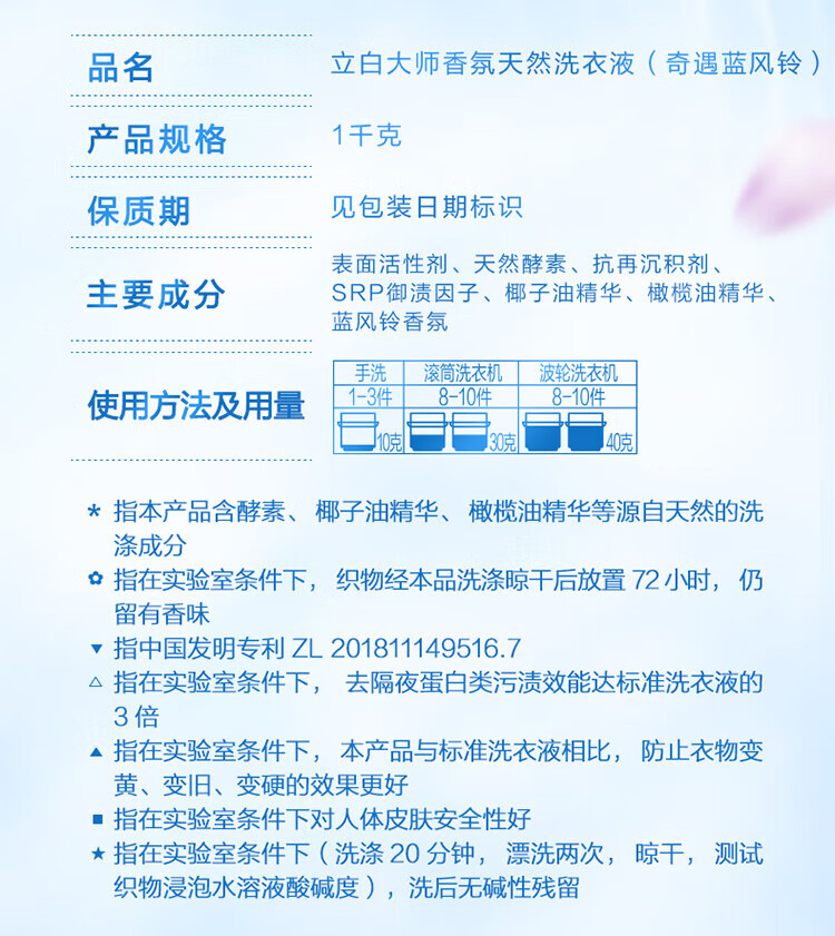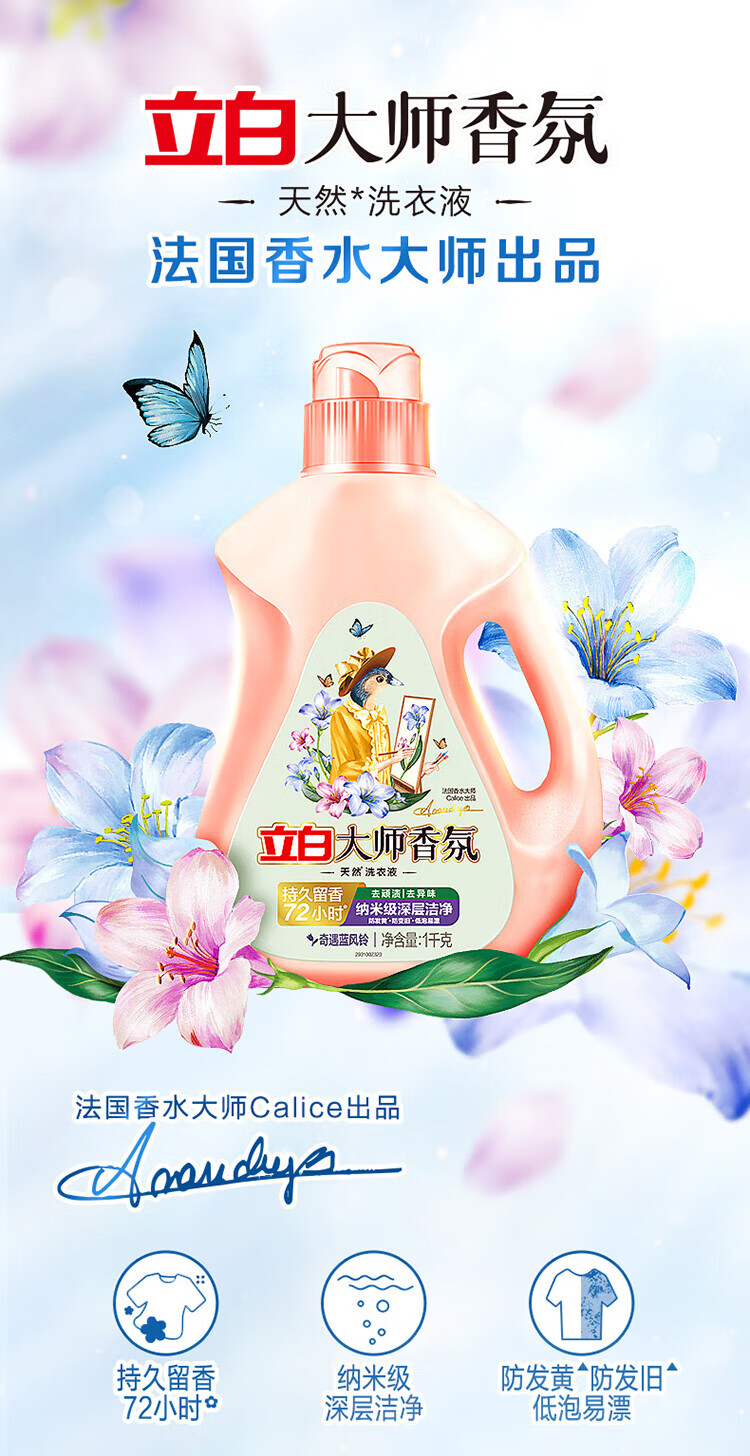 立白大师香氛洗衣液蓝风铃香水深层洁净家用持久留香72小时快洗速净 【16斤】立白洗衣液洗护组合