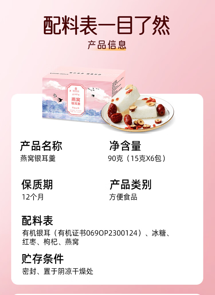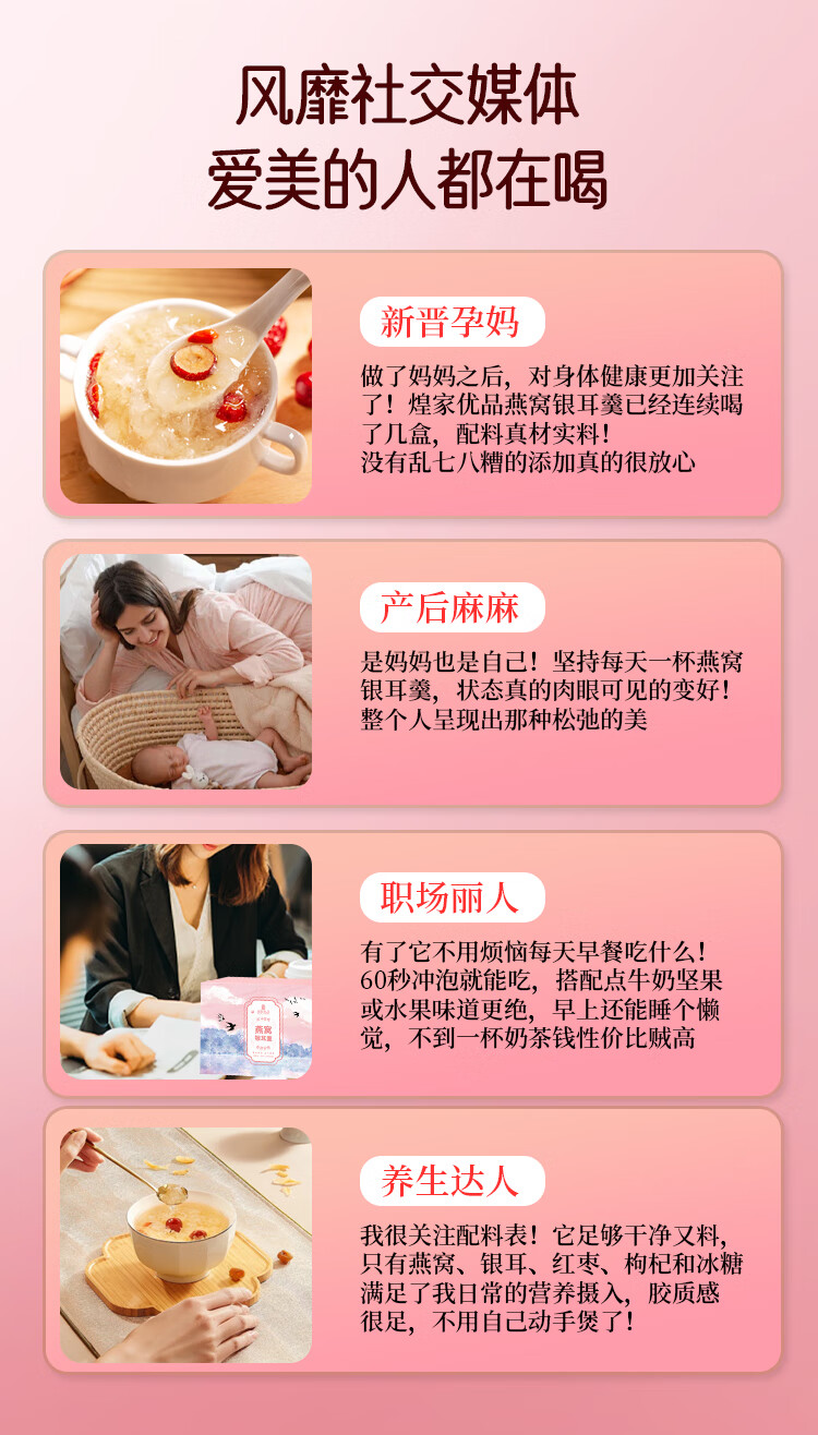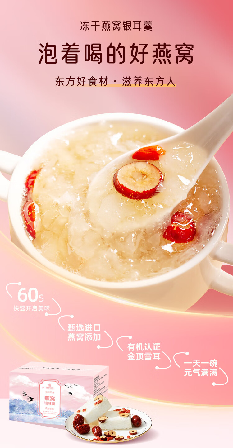 煌家优品 燕窝银耳羹90克有机银耳 早餐代餐冲泡即食燕窝饮独立装中秋礼品