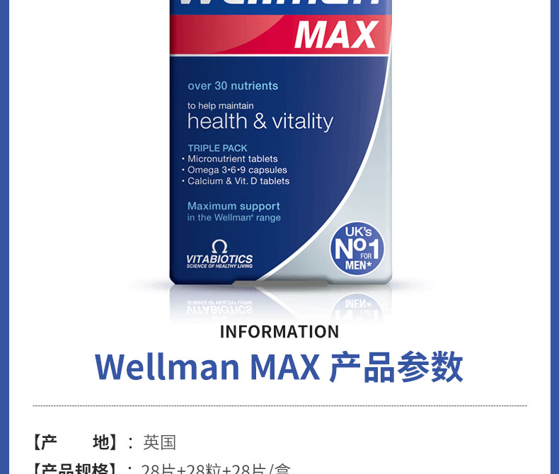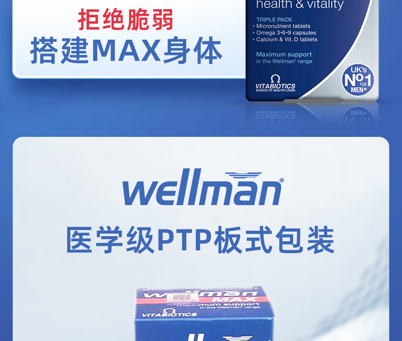 薇塔Vitabiotics男复合维生素B族VC人参增强精力免疫【26年2月到期】 鱼油369+27种男士营养素+D3钙片
