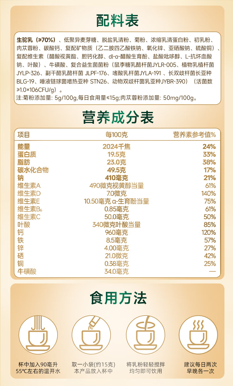 驼峰之巅益生菌驼奶正宗高钙驼奶粉中老年人驼奶粉营养品无蔗糖礼盒送长辈 【富硒高钙 新国标升级】330g*1罐