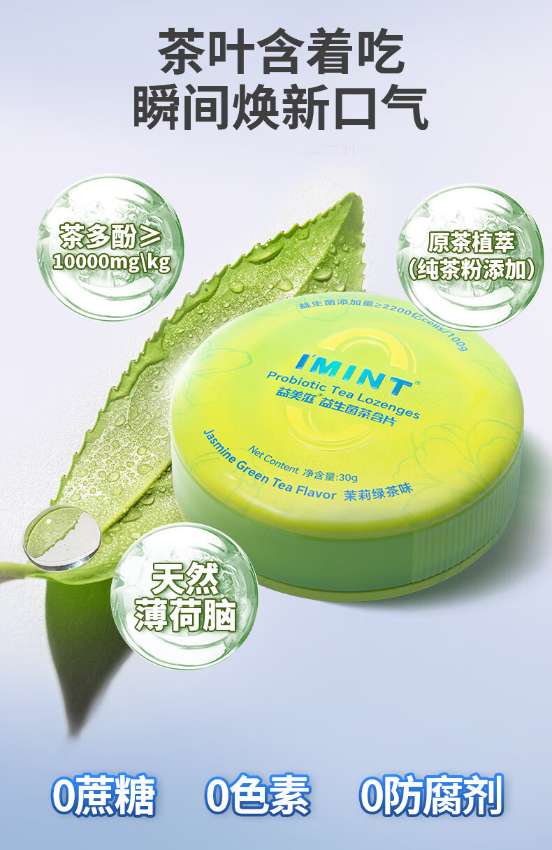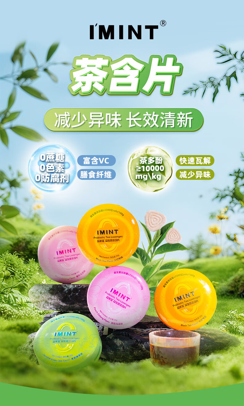I'MINT茶叶含片 口气清新糖 口香糖无糖含片 去口臭润喉薄荷含片乐 【3盒推荐】混合随机口味30g*3盒