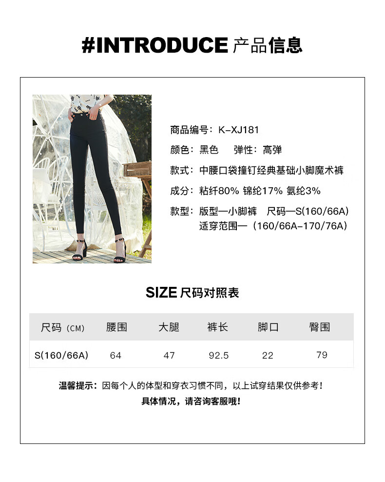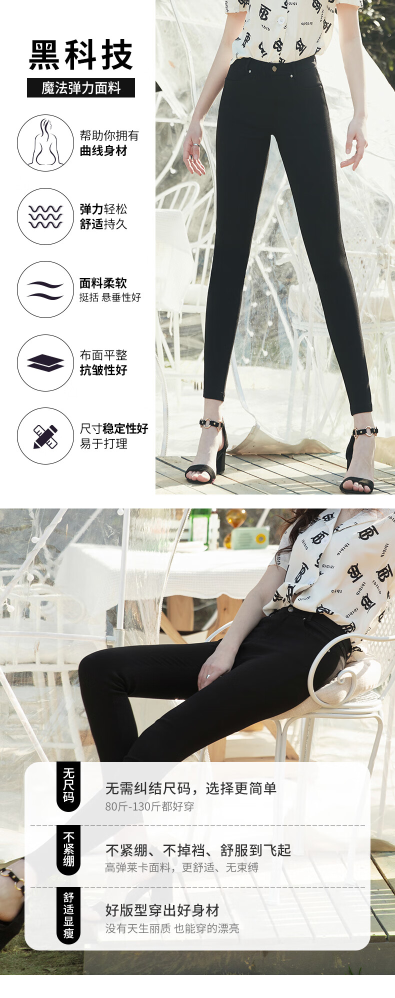 SP-68魔术裤高弹力休闲裤黑色打底裤高腰显瘦铅笔裤修身小脚裤子 经典一粒扣 均码 (160/66A-170/76A)